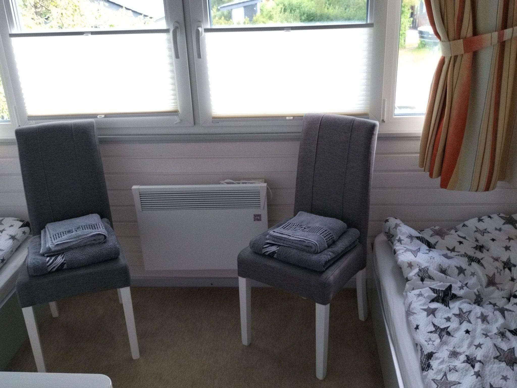 Das Haus wird ggf. über einen Elektrospeicher bzw. über einen Elektroheizlüfter beheizt.