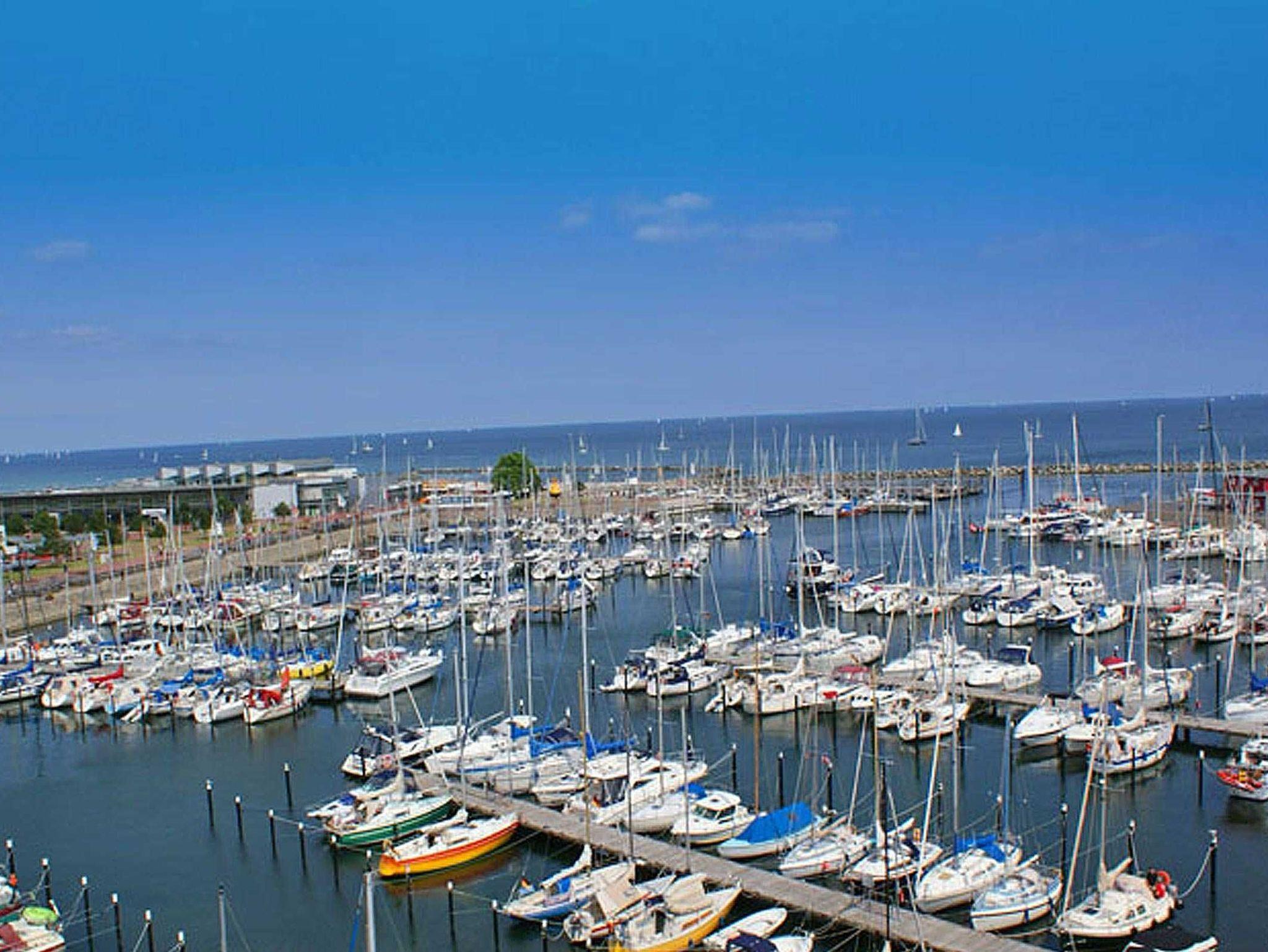 Moderne Ferienwohnung mit Hafen- und Ostseeblick, nur 200 m vom Strand in Damp entfernt.