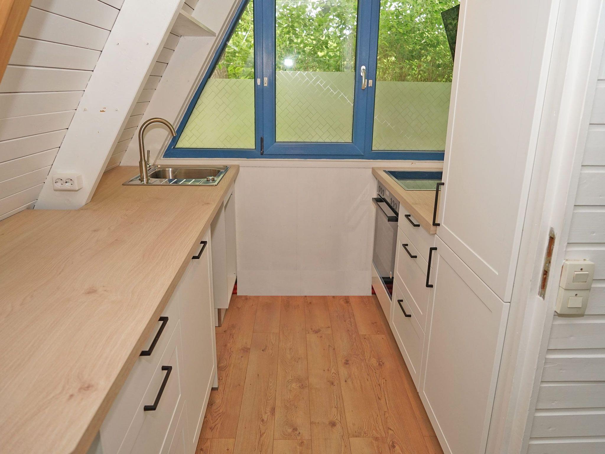 Unser Zeltdachhaus (mit W-LAN) verfügt über zwei getrennte Schlafräume (im oberen Bereich des Hauses), kombiniertes Wohn- und Esszimmer, vollwertige Küche und Terrasse. Ein Kinderreisebett und Kinderhochstuhl sind immer vorhanden und kostenlos nutzbar.