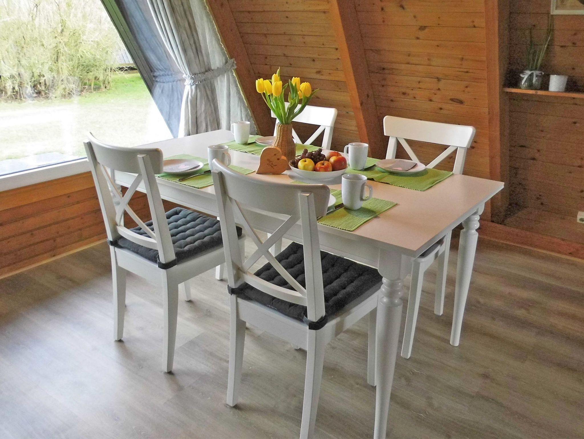 Unser Zeltdachhaus mit W-LAN verfügt über zwei getrennte Schlafräume (im oberen Bereich des Hauses), kombiniertes Wohn- und Esszimmer, vollwertige Küche und Terrasse. KInderreisebett und Kinderhochstuhl sind immer vorhanden und kostenlos nutzbar.