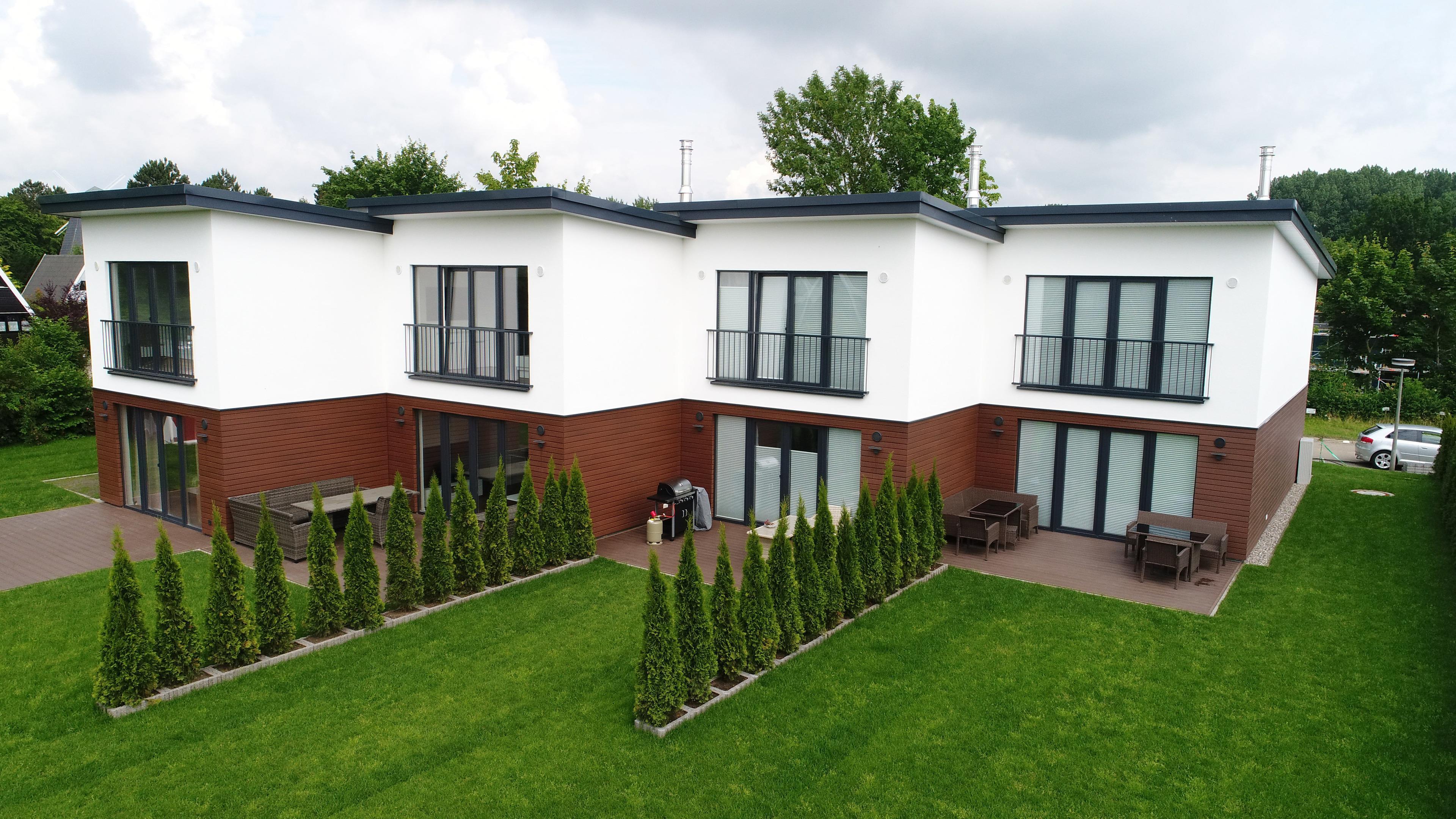 Die Premiumhäuser bieten auf zwei Etagen rund 83 Quadratmeter Wohnfläche. Es stehen für Dich ein Wohn- und Esszimmer, zwei Schlafzimmer, ein Wohlfühlbad sowie eine Sauna und ein Gäste-WC bereit. Das große Wohnzimmer mit Koch- und Essbereich im Erdgeschoss bildet die Basis des Hauses. Hier findest Du neben einer komplett eingerichteten Küche auch den großen Esstisch sowie gemütliche Sitzgelegenheiten für entspannte Abende am Ofen oder vor dem Fernseher. Im Obergeschoss ist der Schlaf- und Ruhebereich eingerichtet. In unseren ausgewählten Familienhäusern findest Du im zweiten Schlafzimmer ein Etagenbett für Kinder. Neben den Schlafräumen kannst Du Dich hier im Wohlfühlbad und in der Sauna entspannen. Rund um das Haus erwarten Dich ein weitläufiger Garten sowie eine Terrasse. Als ein Teil der erweiterten Ausstattung steht Dir in unseren Premiumhäusern zusätzlich ein Waschtrockner zur Verfügung.