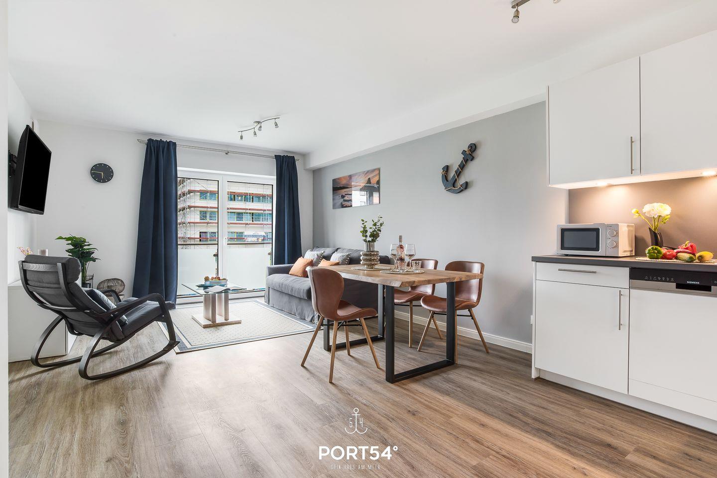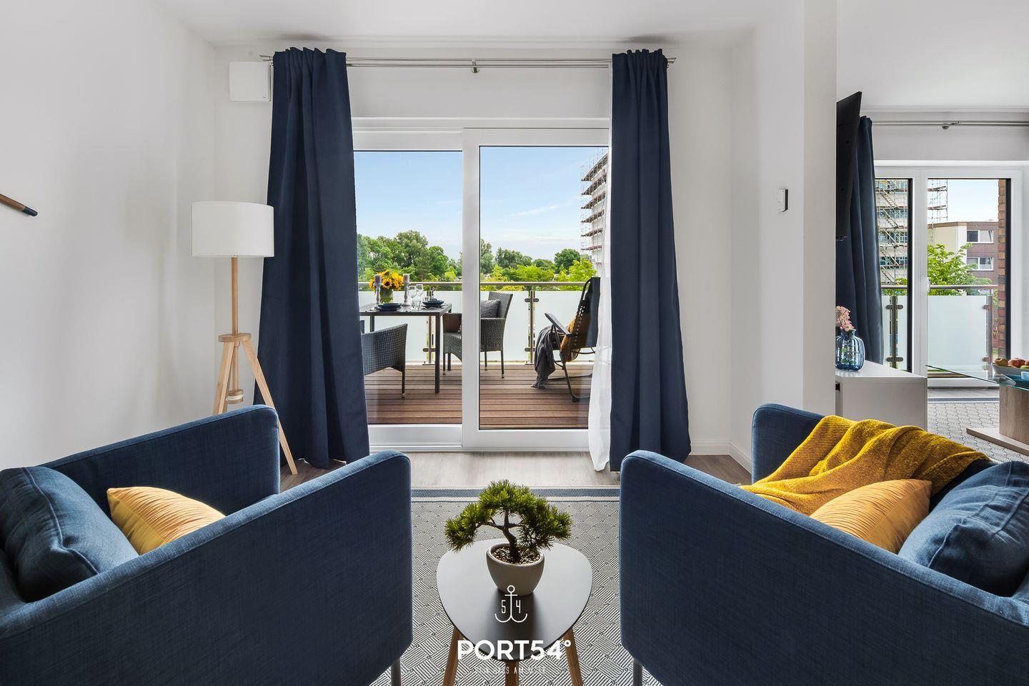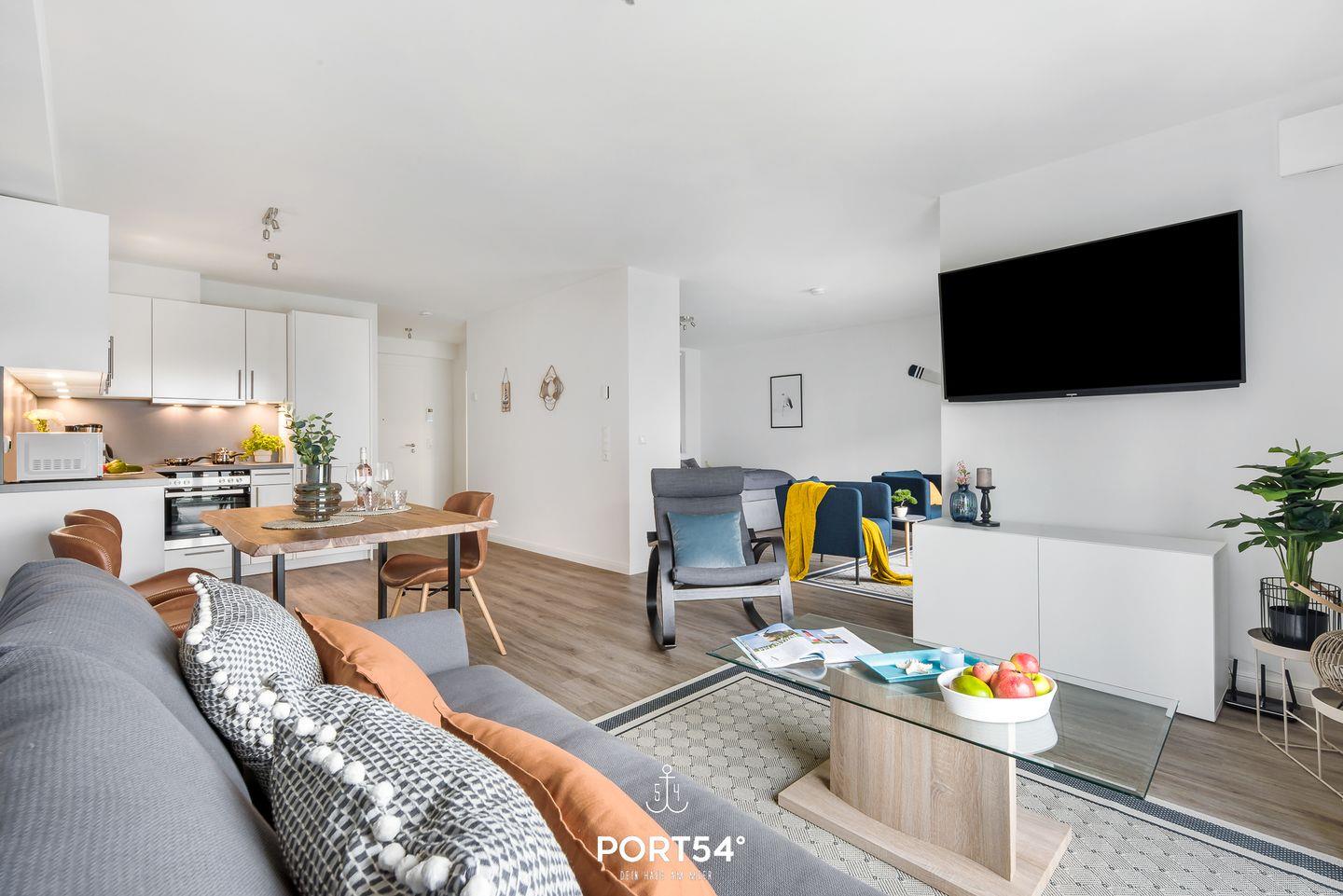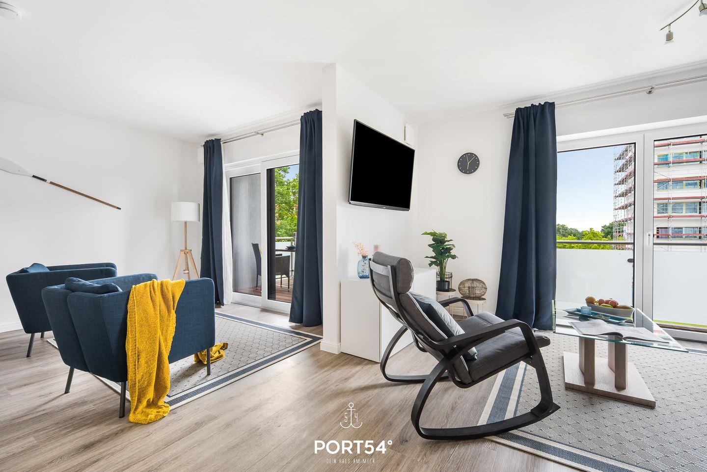 Moderne Ferienwohnung "Meerzeit" in Damp mit Balkon, Gartenmöbeln, TV und Waschmaschine für entspannte Urlaubstage.