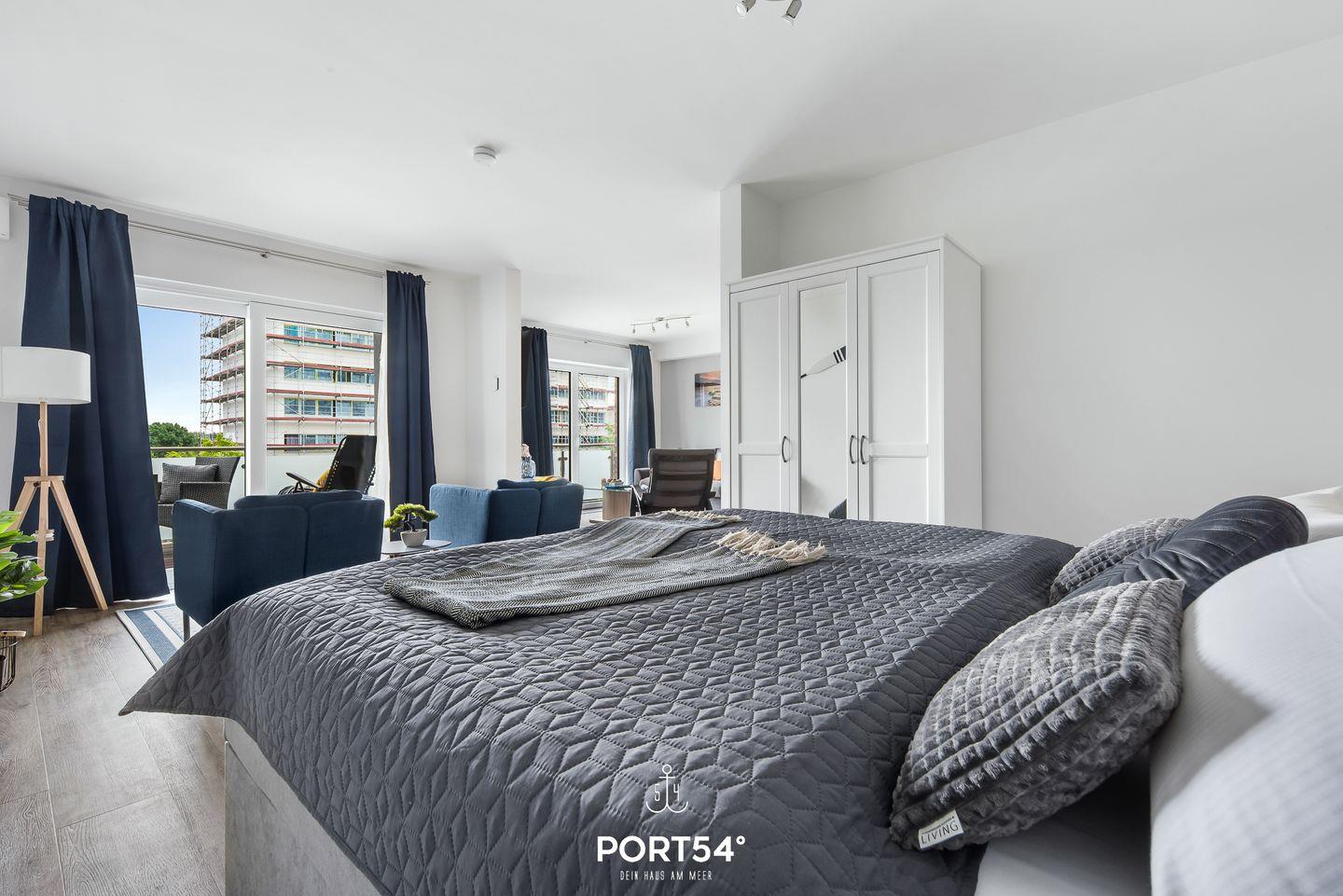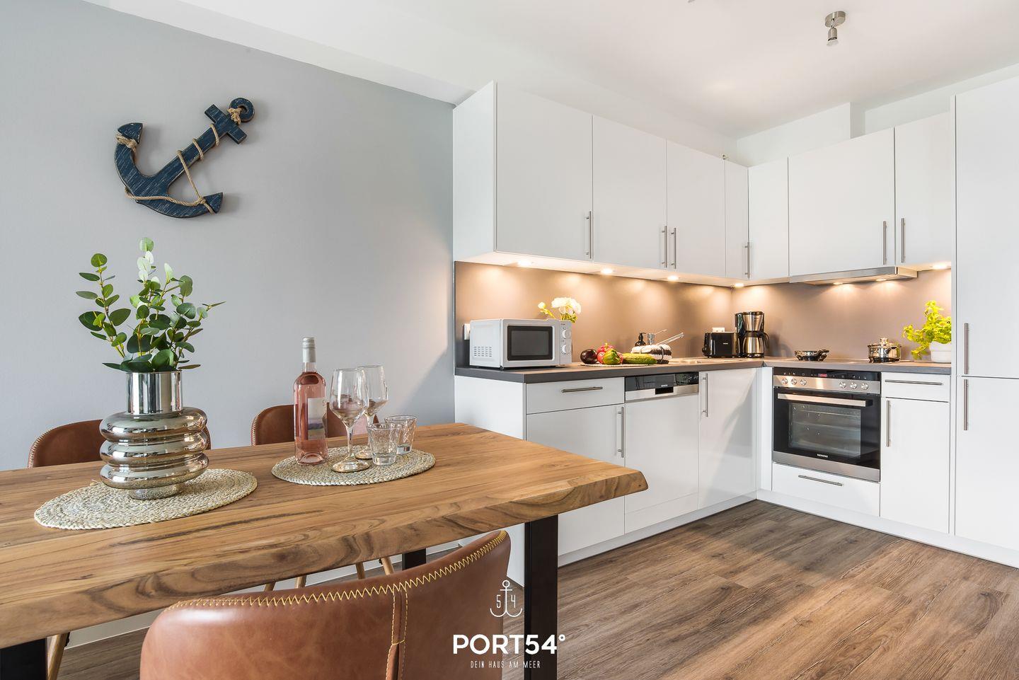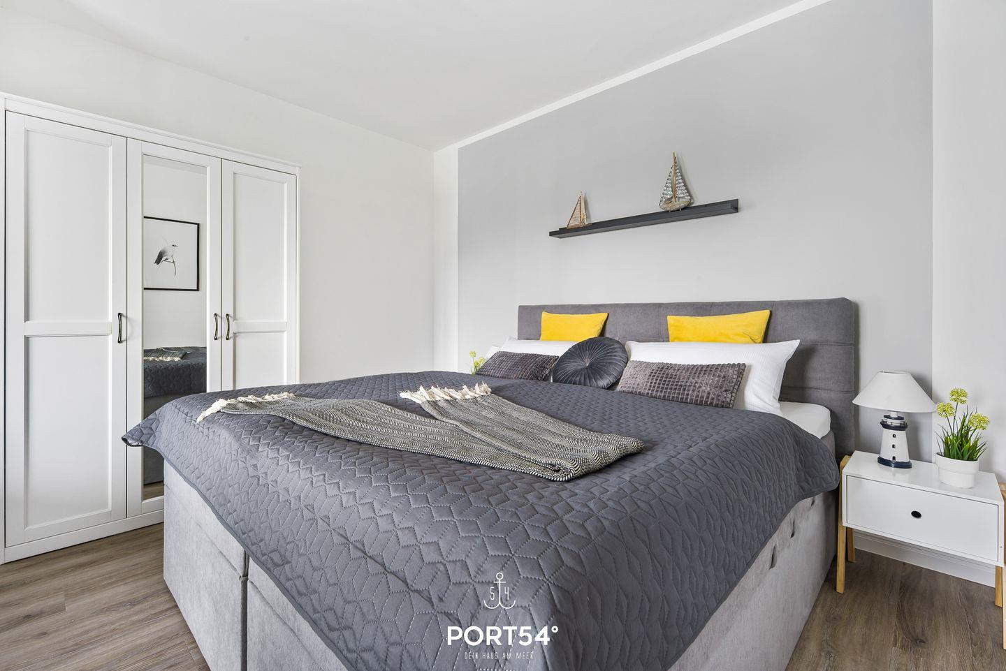 Herzlich willkommen in der modernen Ferienwohnung "Meerzeit"! Die im Neubau gelegene Wohnung bietet auf großzügigen 65m² Platz für 4 Personen und sogar einen vierbeinigen Freund (auf Anfrage). Der Schlafbereich erwartet Sie mit einem luxuriösen Boxspringbett (180x200cm), das Ihnen traumhafte Nächte verspricht. Zusätzlich stehen auf dem gemütlichen Schlafsofa (140x200cm) zwei weitere Schlafplätze bereit, damit Sie Ihren Urlaub mit Ihren Liebsten in vollen Zügen genießen können. Die vollausgestattete Küche lädt dazu ein, leckere Meisterwerke zu kreieren, die Sie entweder am großzügigen Esstisch oder auf dem Balkon mit Blick durch die Bäume auf das Wasser genießen können. Erleben Sie hier unvergessliche Mahlzeiten unter freiem Himmel, begleitet vom beruhigenden Rauschen der Wellen. Das Badezimmer überzeugt mit einer ebenerdigen Dusche, die für erfrischende Momente sorgt und den perfekten Start in den Tag bietet. Der Balkon, umgeben von Bäumen, gewährt Ihnen Privatsphäre und eine entspannte Atmosphäre, ideal für erholsame Stunden im Freien. Für zusätzlichen Komfort steht Ihnen ein Aufzug zur Verfügung, der Ihnen den Zugang zur Ferienwohnung erleichtert. Ein Stellplatz sichert Ihnen eine bequeme Anreise, und eine Fahrradabstellmöglichkeit ermöglicht es Ihnen, die Umgebung auf zwei Rädern zu erkunden.