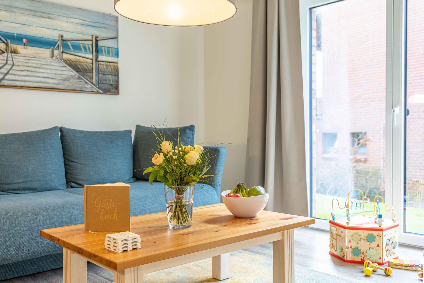 Im Wohnbereich steht Dir ein komfortables Sofa zur Verfügung, welches sich bei Bedarf zu einem dritten Schlafplatz ausziehen lässt. Ein moderner Fernseher mit digitalem Anschluss und Video-on-Demand sorgt für Unterhaltung an gemütlichen Abenden. Fernab der Hektik kannst Du hier in Ruhe die Zeit genießen oder spannende Spieleabende verbringen.