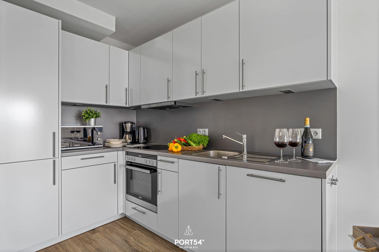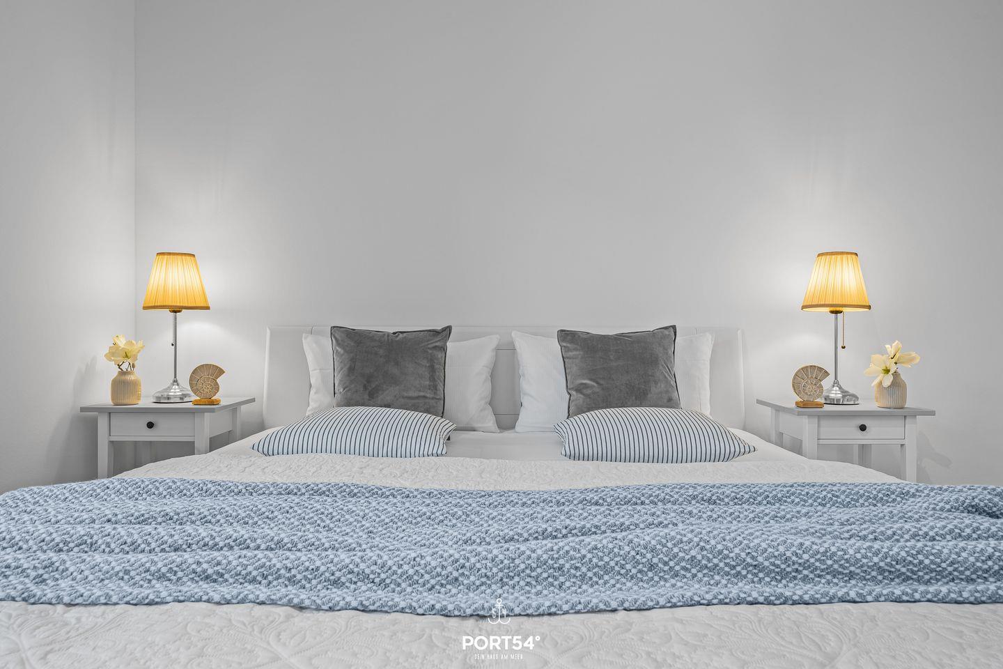 Die Wohnung verfügt über zwei separate Schlafzimmer, die Dir ruhige Rückzugsmöglichkeiten und angenehmen Schlafkomfort bieten. Im offenen Wohn- und Essbereich lädt ein gemütliches Sofa zum Entspannen ein. Der Esstisch ist ideal für gemeinsame Mahlzeiten, die Du in der voll ausgestatteten Küche zubereiten kannst. Hier stehen Dir neben Backofen, Ceranfeld und Geschirrspülmaschine auch eine Kaffeemaschine, eine Mikrowelle, ein Wasserkocher, ein Toaster und ein extra Gefrierschrank zur Verfügung. Küchenutensilien, Geschirr und Besteck sind selbstverständlich in ausreichender Zahl vorhanden.