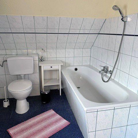 Das Tageslichtbad hat ein WC und eine Badewanne mit Duschmöglichkeit.