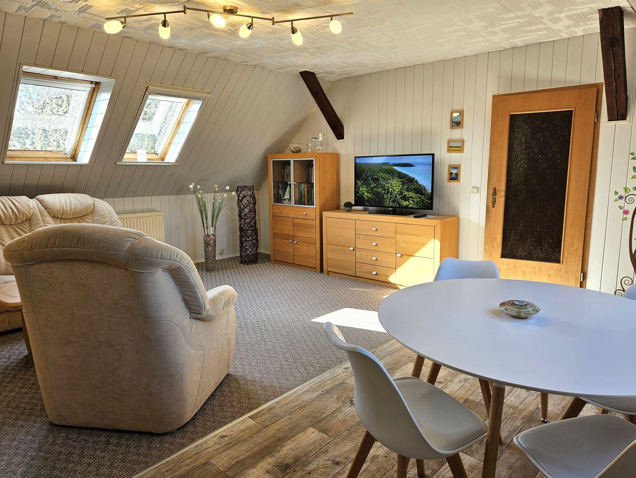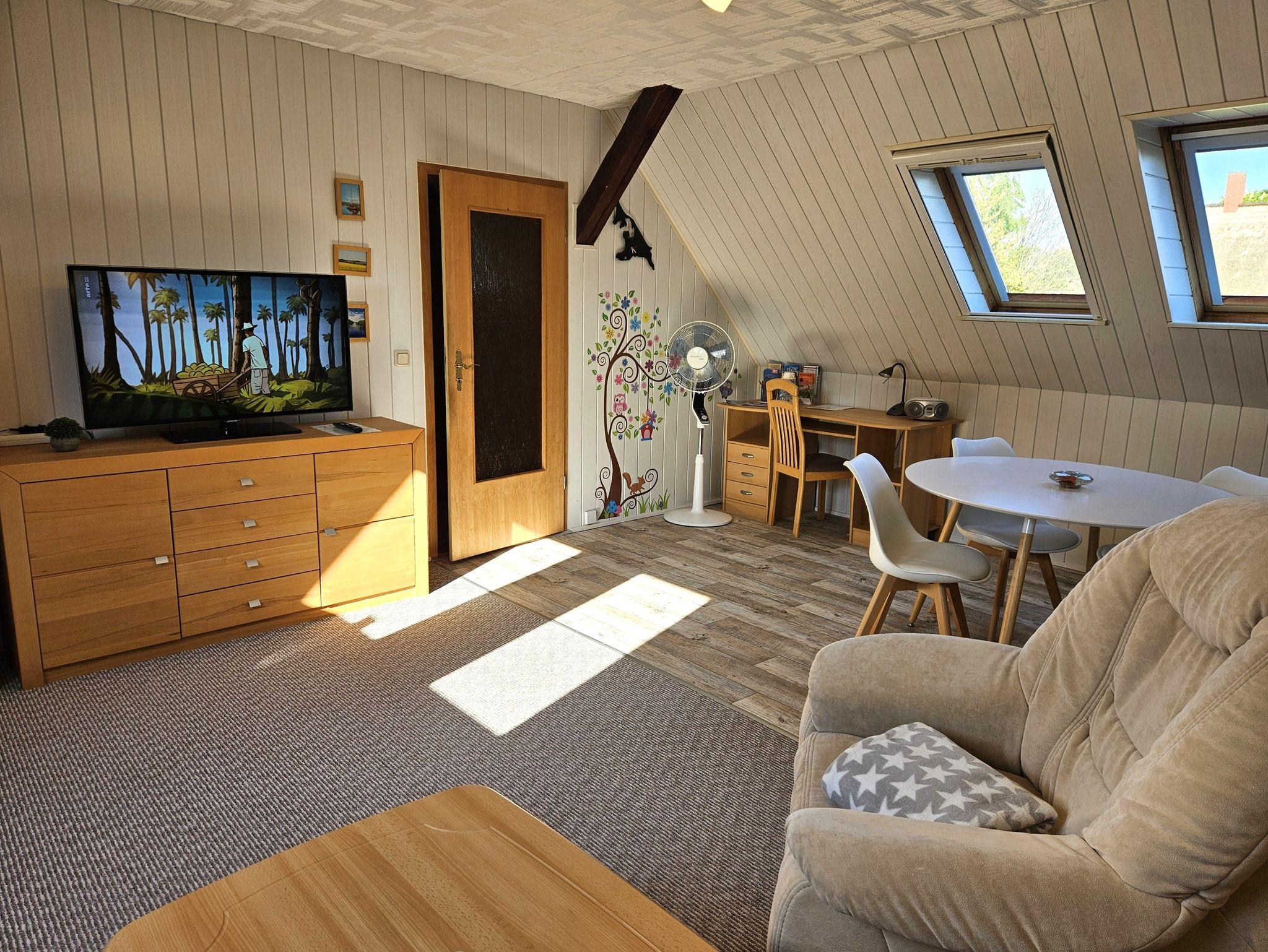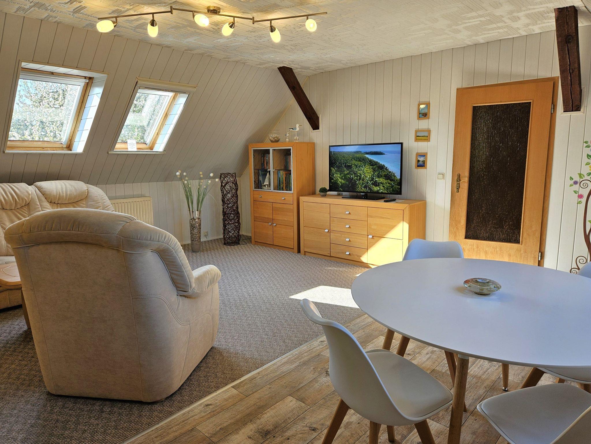 Unsere Ferienwohnung, befindet sich im Dachgeschoss eines 100 Jahre alten Bauernhauses und bietet Platz für bis zu 5 Personen.