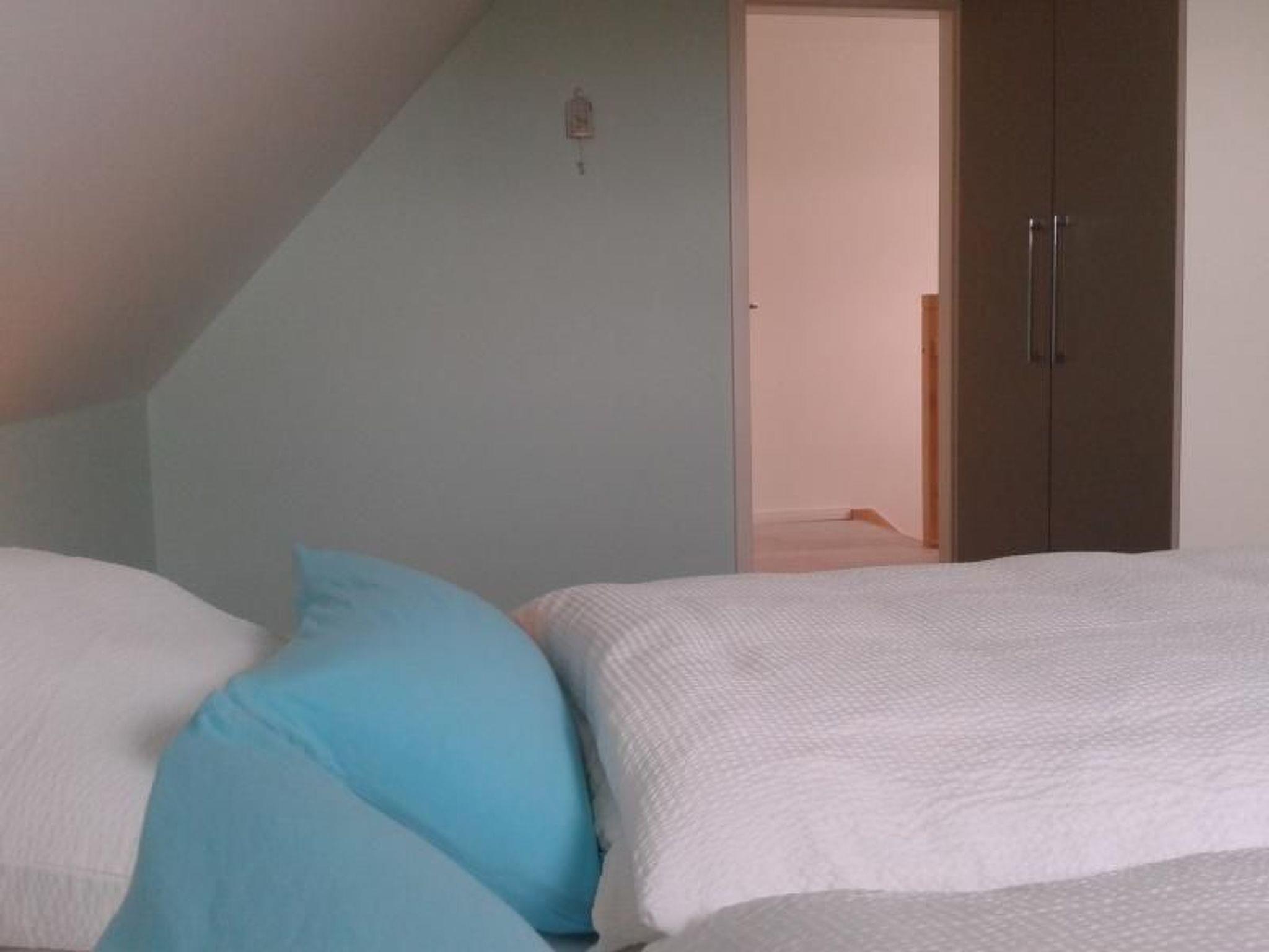 Im Obergeschoss gibt es zwei Schlafzimmer und ein Gäste-WC. In den Schlafzimmern gibt es jeweils ein Doppelbett (1,80m breit) mit Schlafzimmerschrank. Die Wohnküche und das Bad sind ausgestattet mit einer Fußbodenheizung.