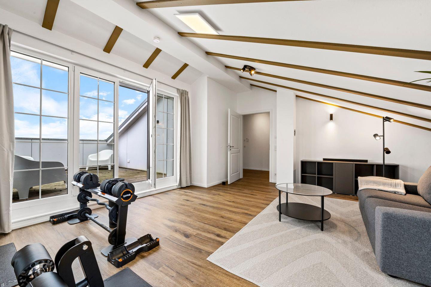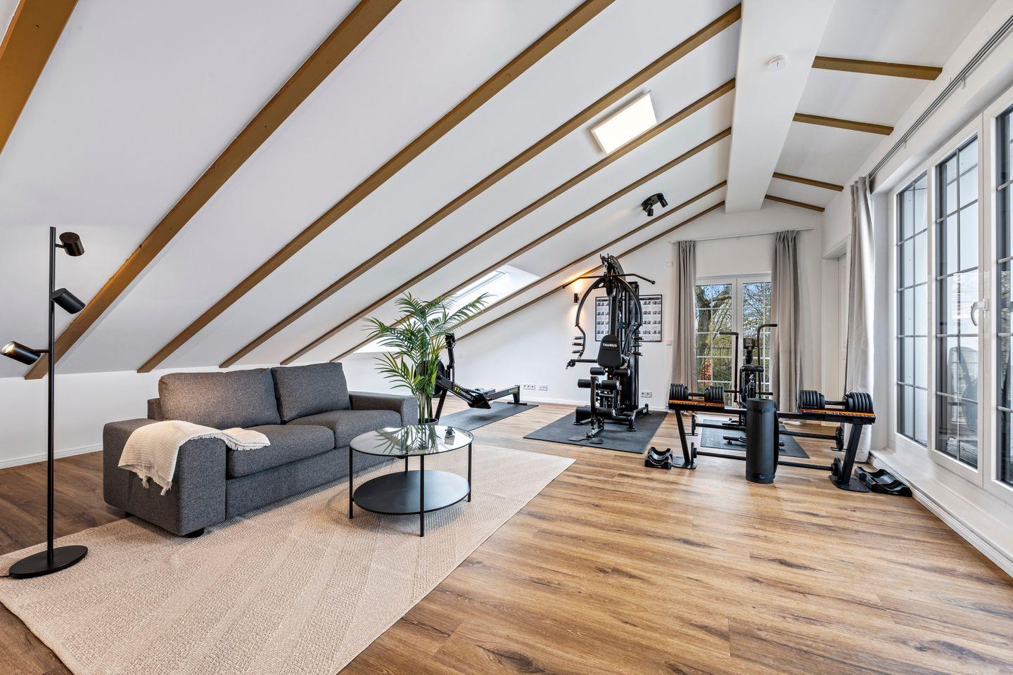Ein sehr gut ausgestatteter Fitnessraum ist ein weiteres Highlight dieser exklusiven Maisonettewohnung. Direkt in der Wohnung integriert, bietet dieser private Raum alles, was Sie für ein effektives und angenehmes Workout benötigen – moderne Geräte, ausreichend Platz und eine Atmosphäre, die Sie motiviert, Ihre Fitnessziele zu erreichen. Der besondere Clou: Der Fitnessraum verfügt über einen direkten Zugang zur Dachloggia, sodass Sie nach einer intensiven Trainingseinheit direkt an der frischen Luft entspannen können.