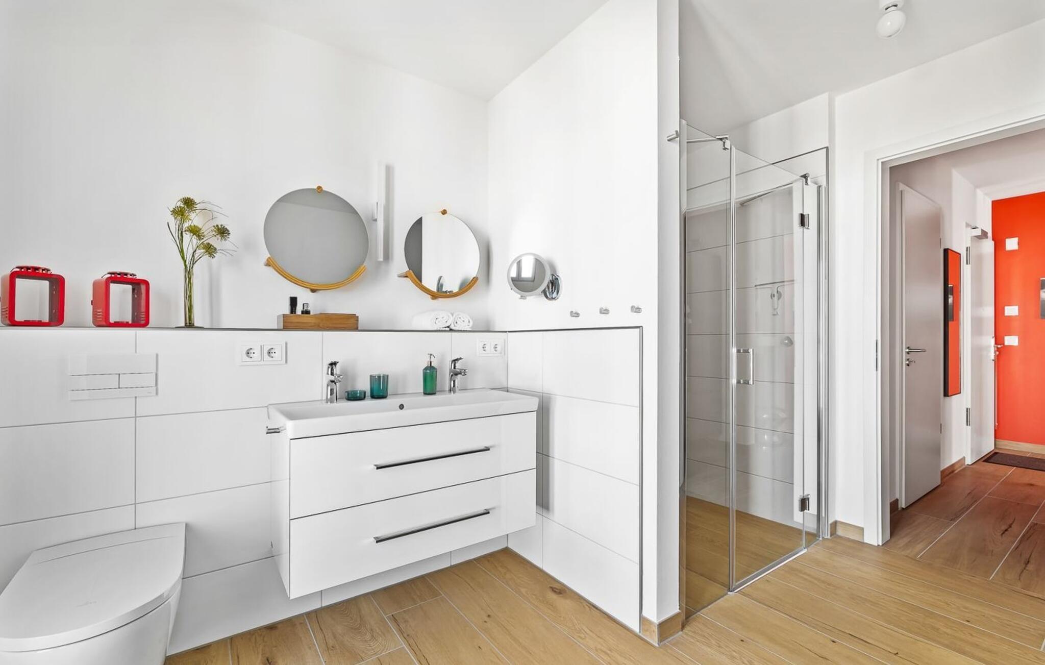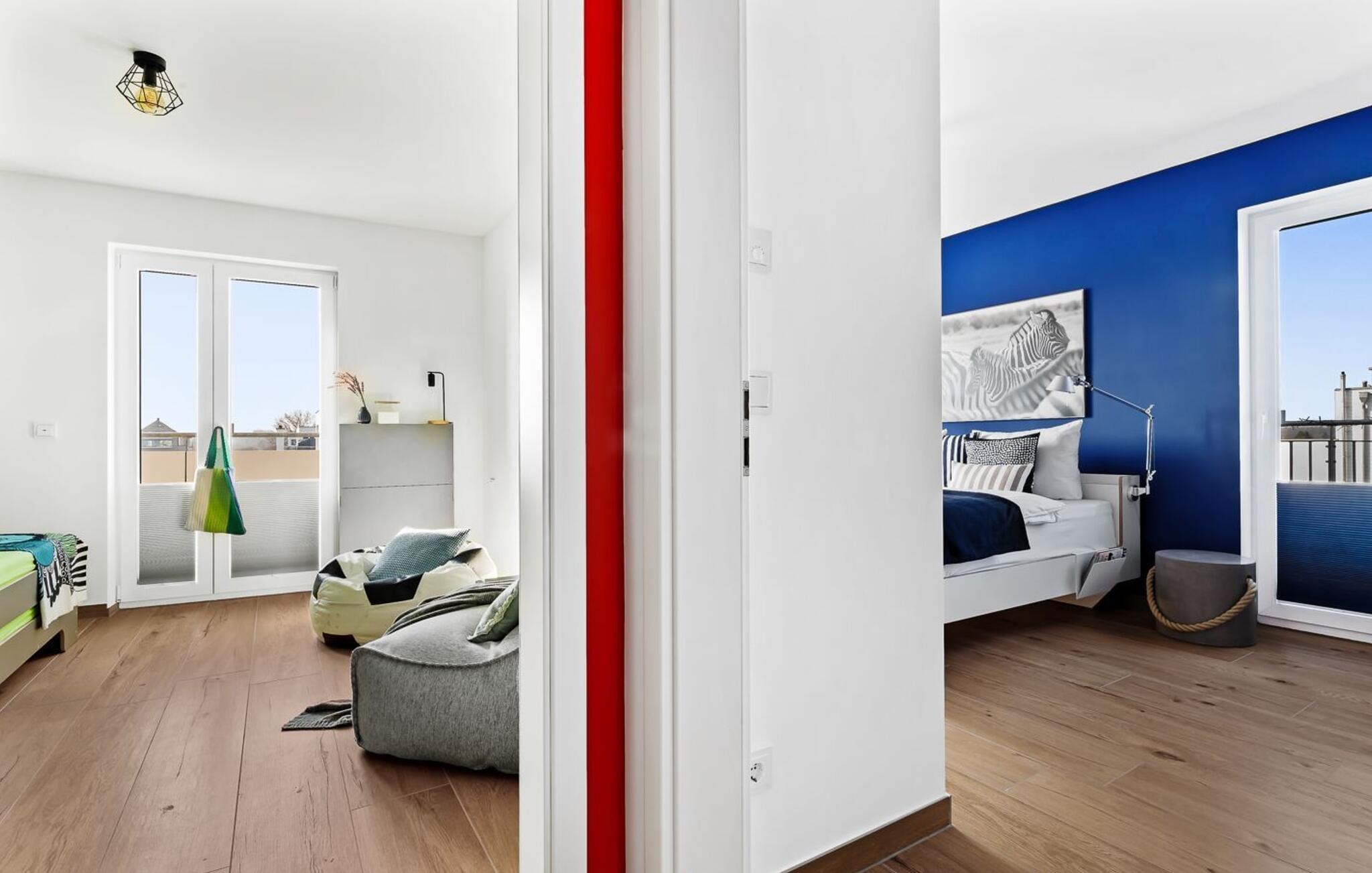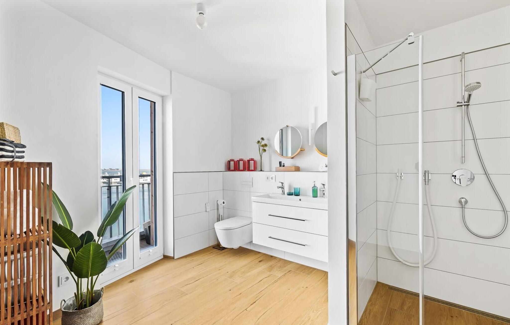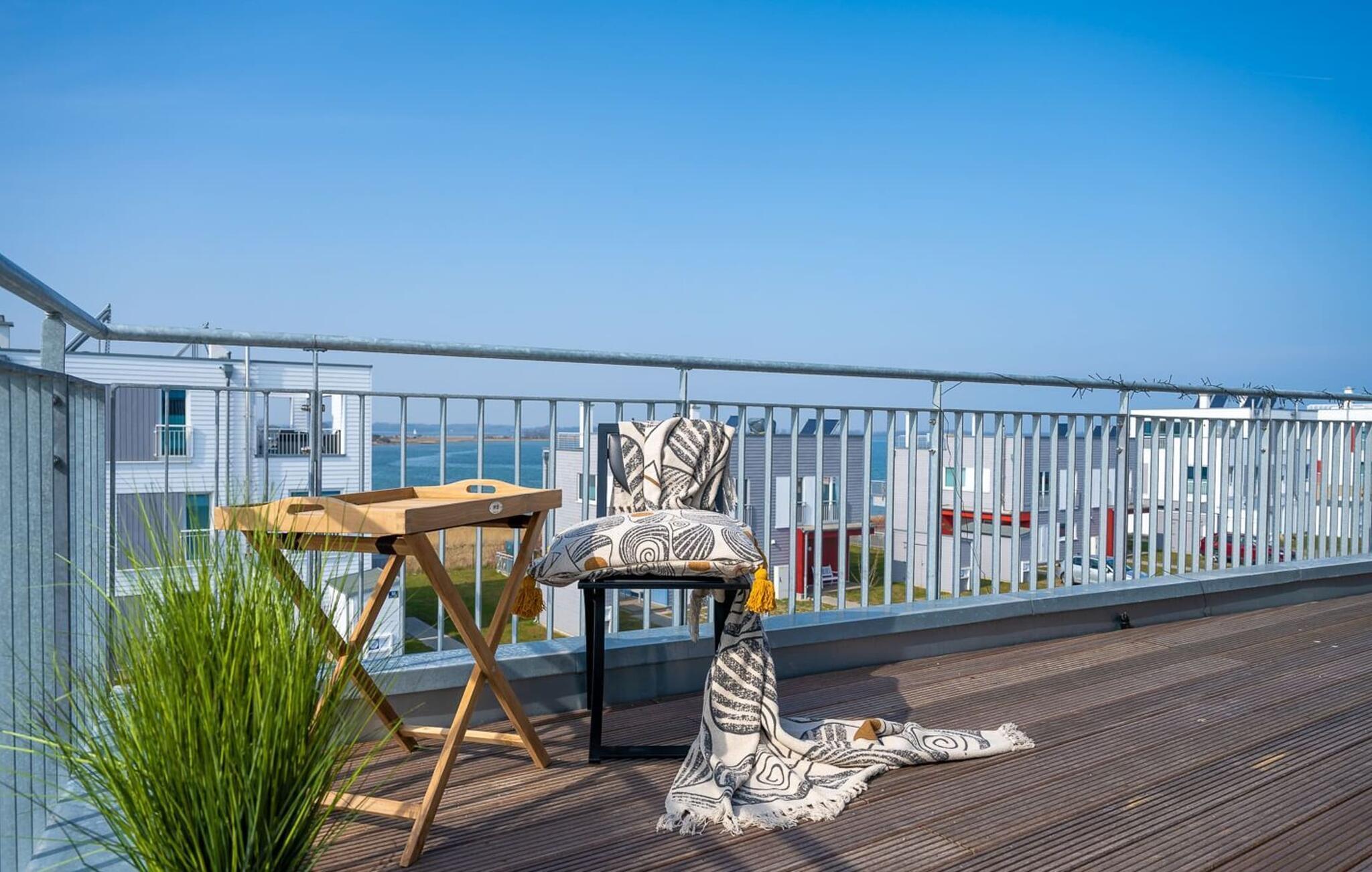 Deck 2 verfügt über 2 Schlafzimmer und ein Badezimmer mit Saunaeine wahre Wellness-Oase für erholsame Stunden. Der Höhepunkt der Wohnung ist zweifelsohne der umlaufende Balkon, der einen atemberaubenden Blick auf die Schlei und die Ostsee bietet. Hier, in eurem persönlichen Refugium, könnt ihr den Tag im Strandkorb ausklingen lassen und die malerischen Farben des Sonnenuntergangs über dem Wasser erleben.