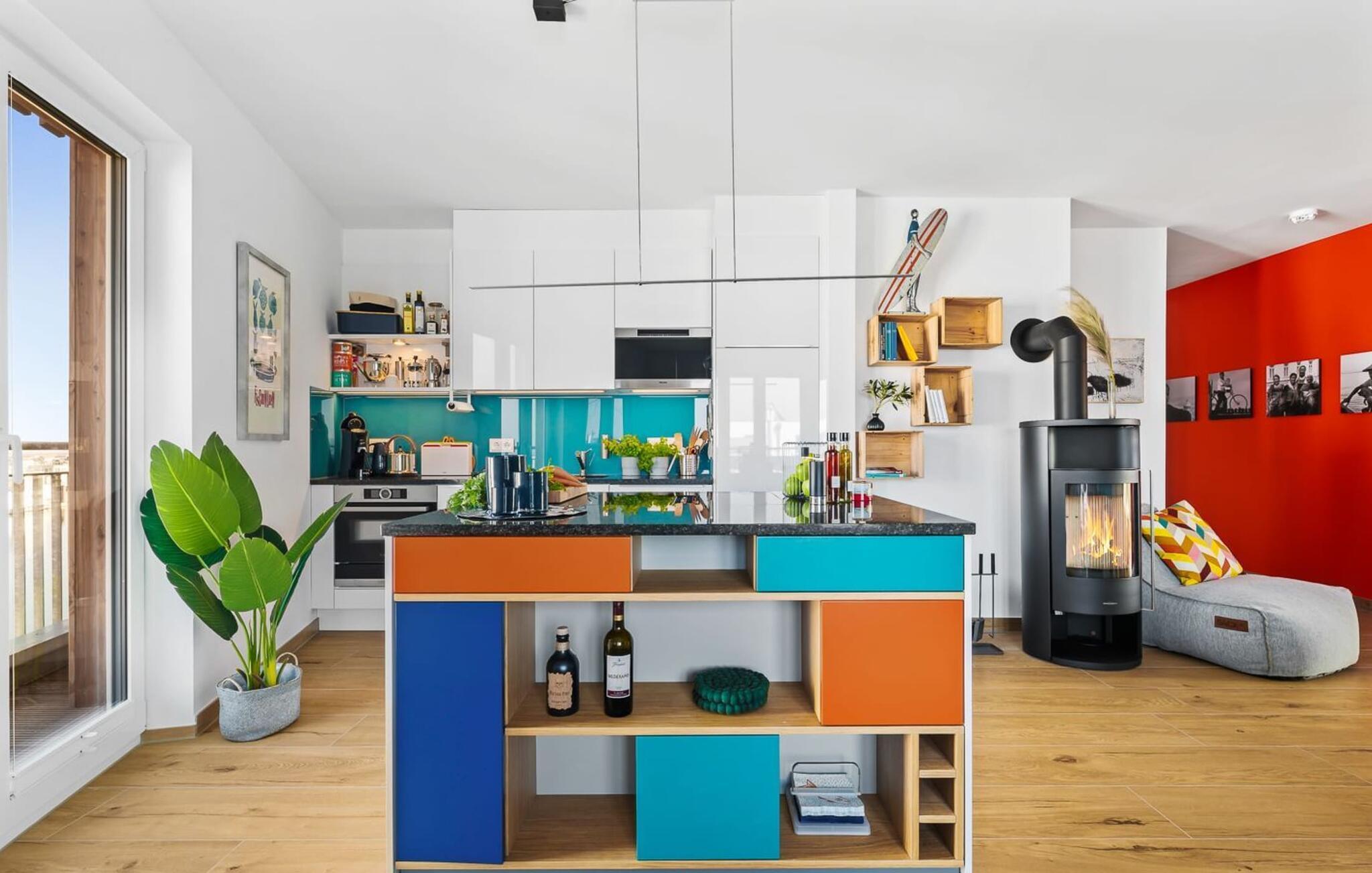 Die großzügige Ferienwohnung bietet Platz für bis zu 4 Personen. Hier finden Familien und Freunde den idealen Rückzugsort, um die Schönheit der Ostsee in vollen Zügen zu erleben. Tretet ein durch bodentiefe Fenster und lasst euch von einem lichtdurchfluteten Wohnbereich empfangen. Die Fußbodenheizung sorgt für wohlige Wärme, während der offene Wohn-/Essbereich mit einem einladenden Kamin zum Verweilen einlädt.