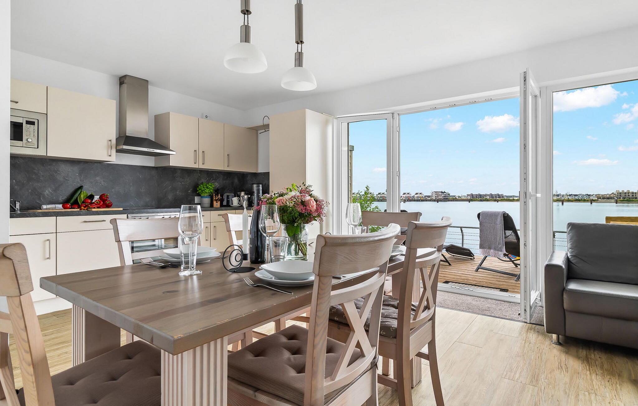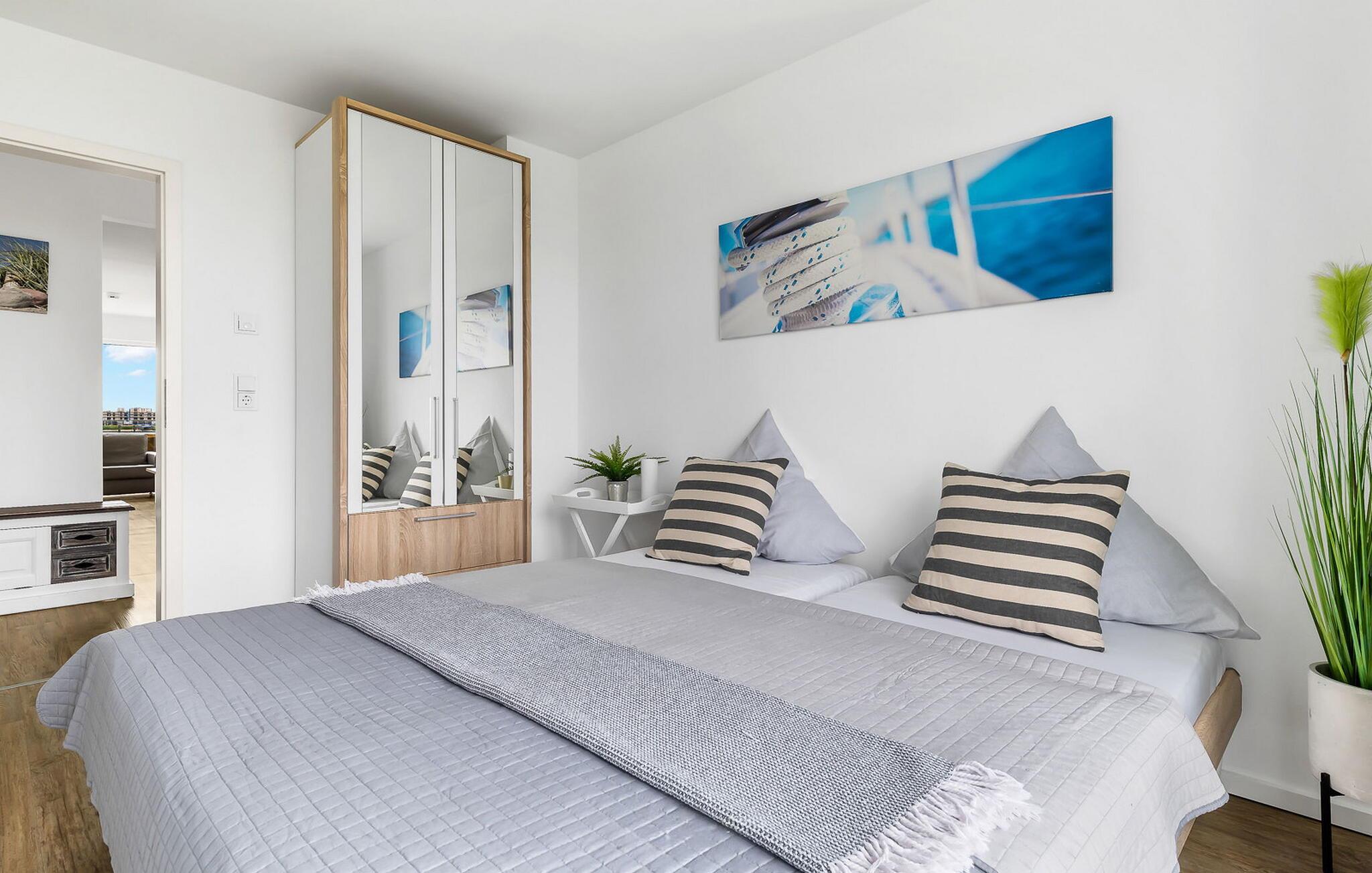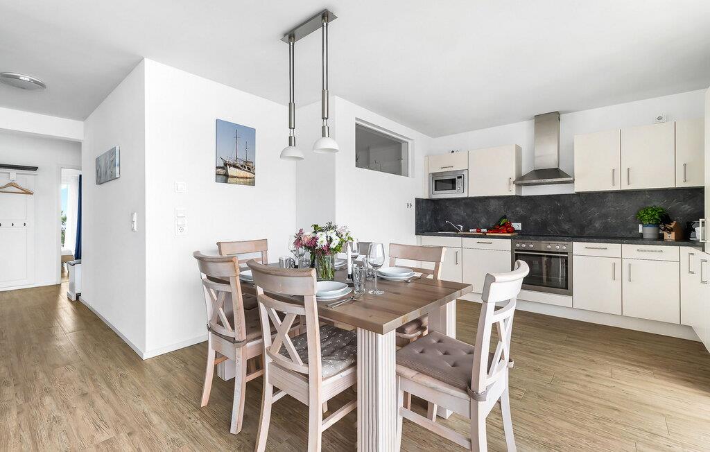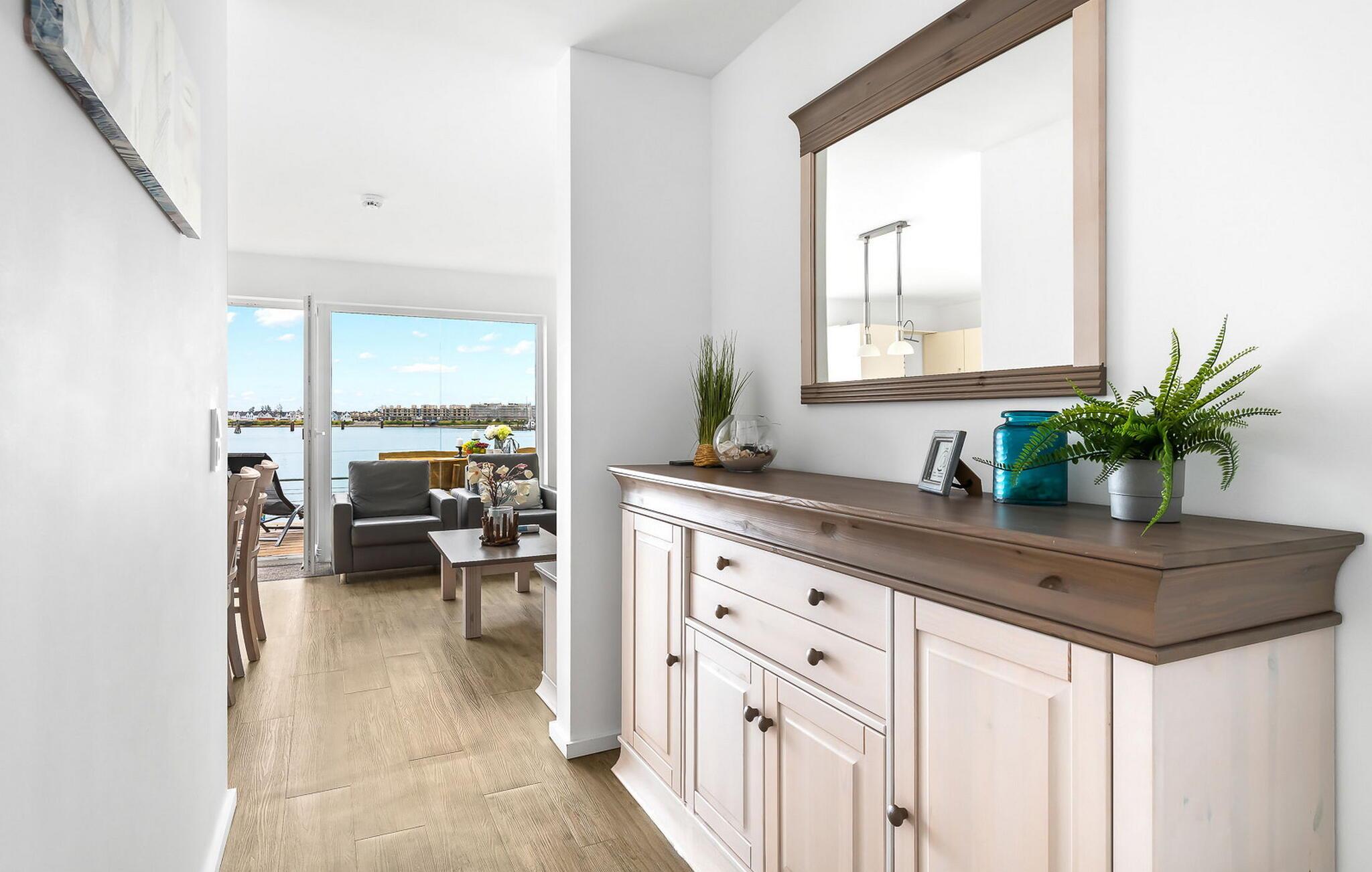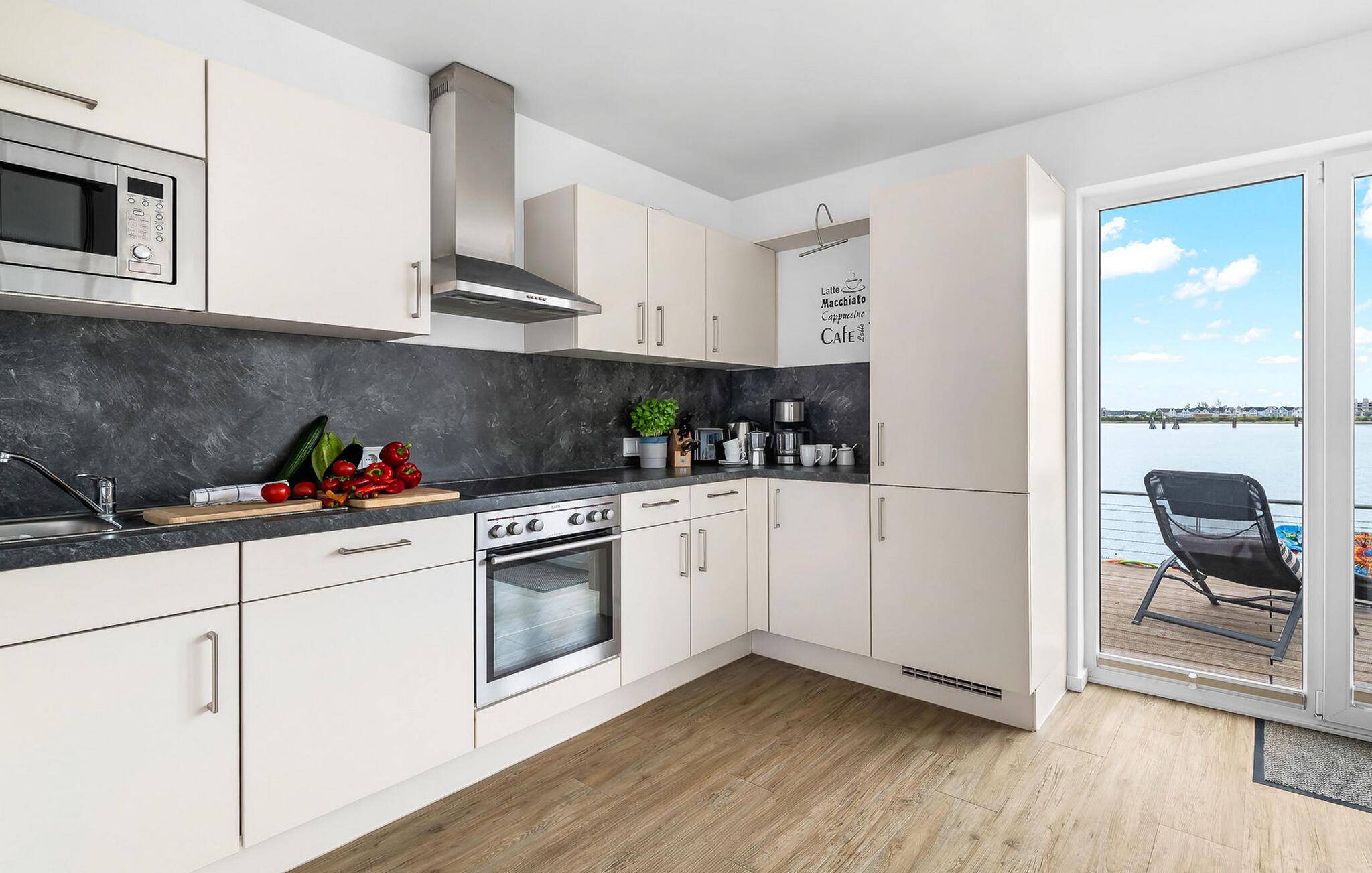 Die Wohnung besticht durch ihren offenen Wohnbereich mit bodentiefen Fenstern, die viel Tageslicht hereinlassen und eine wunderbare Aussicht auf den Hafen bieten. Zur Ausstattung gehören ein Smart-TV, WLAN und ein Blu-ray-Player, sodass es an Unterhaltungsmöglichkeiten nicht mangelt. Die Fußbodenheizung sorgt auch in der kalten Jahreszeit in der gesamten Wohnung für behagliche Wärme.