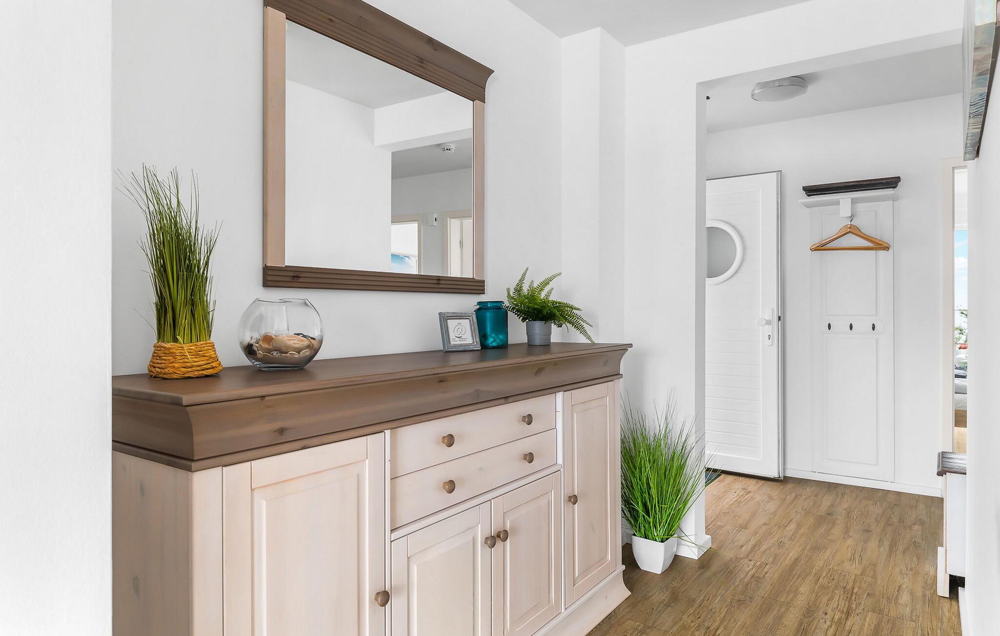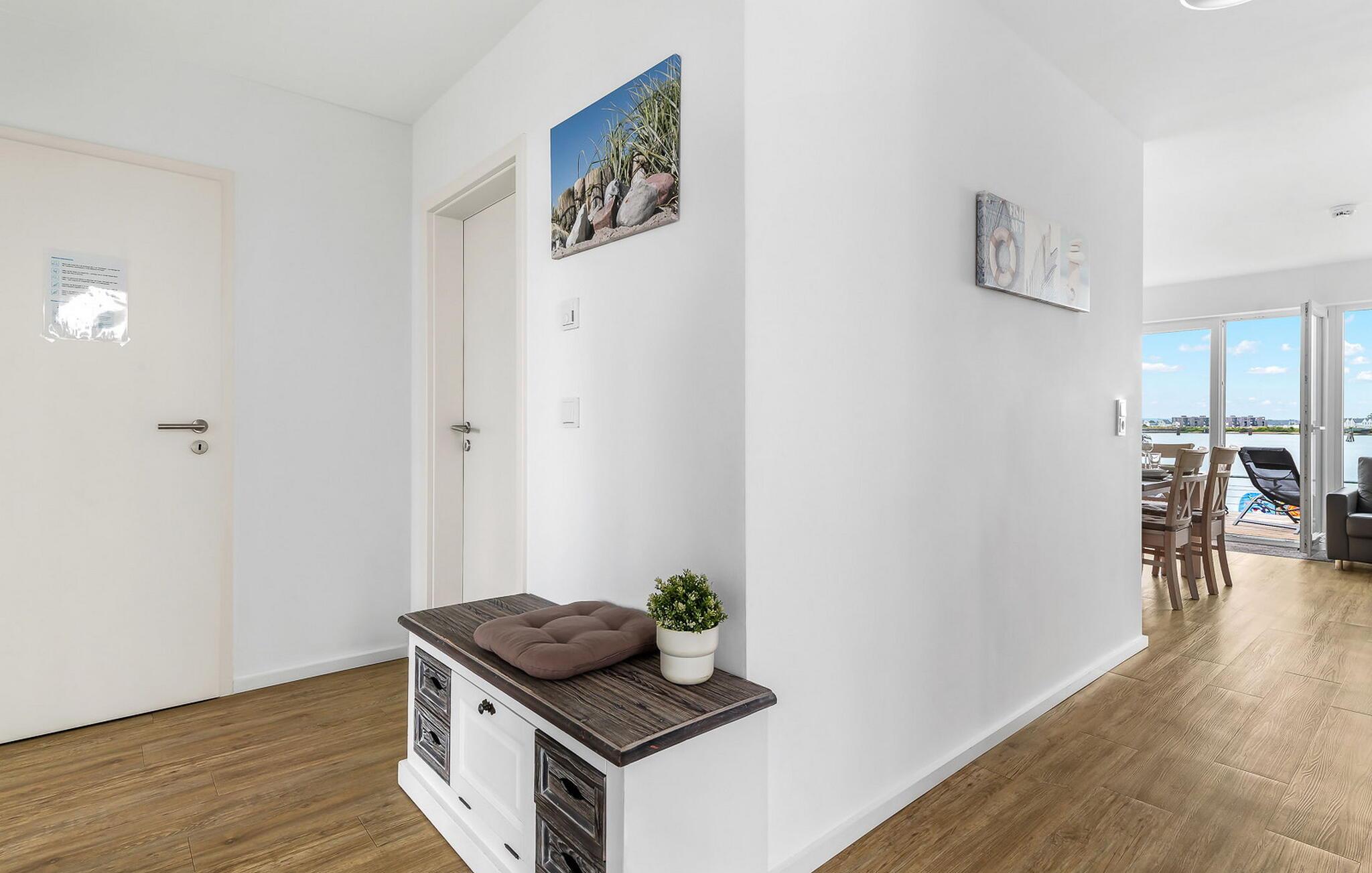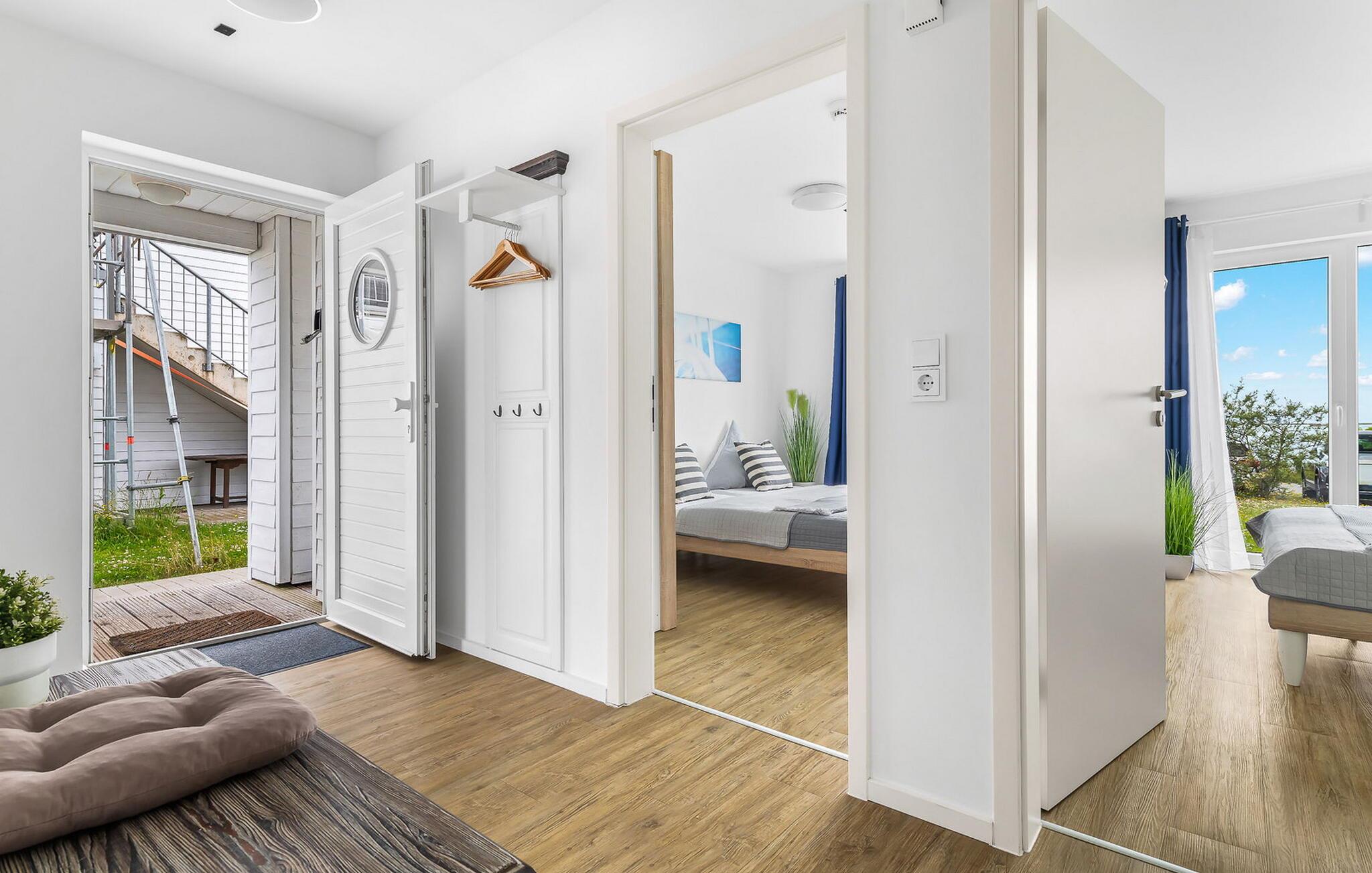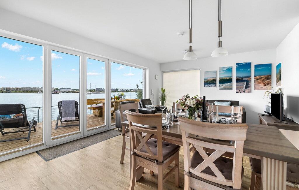 Moderne Ferienwohnung im OstseeResort Olpenitz mit Hafenblick, Terrasse, Wellnessbad und direkter Strandnähe.