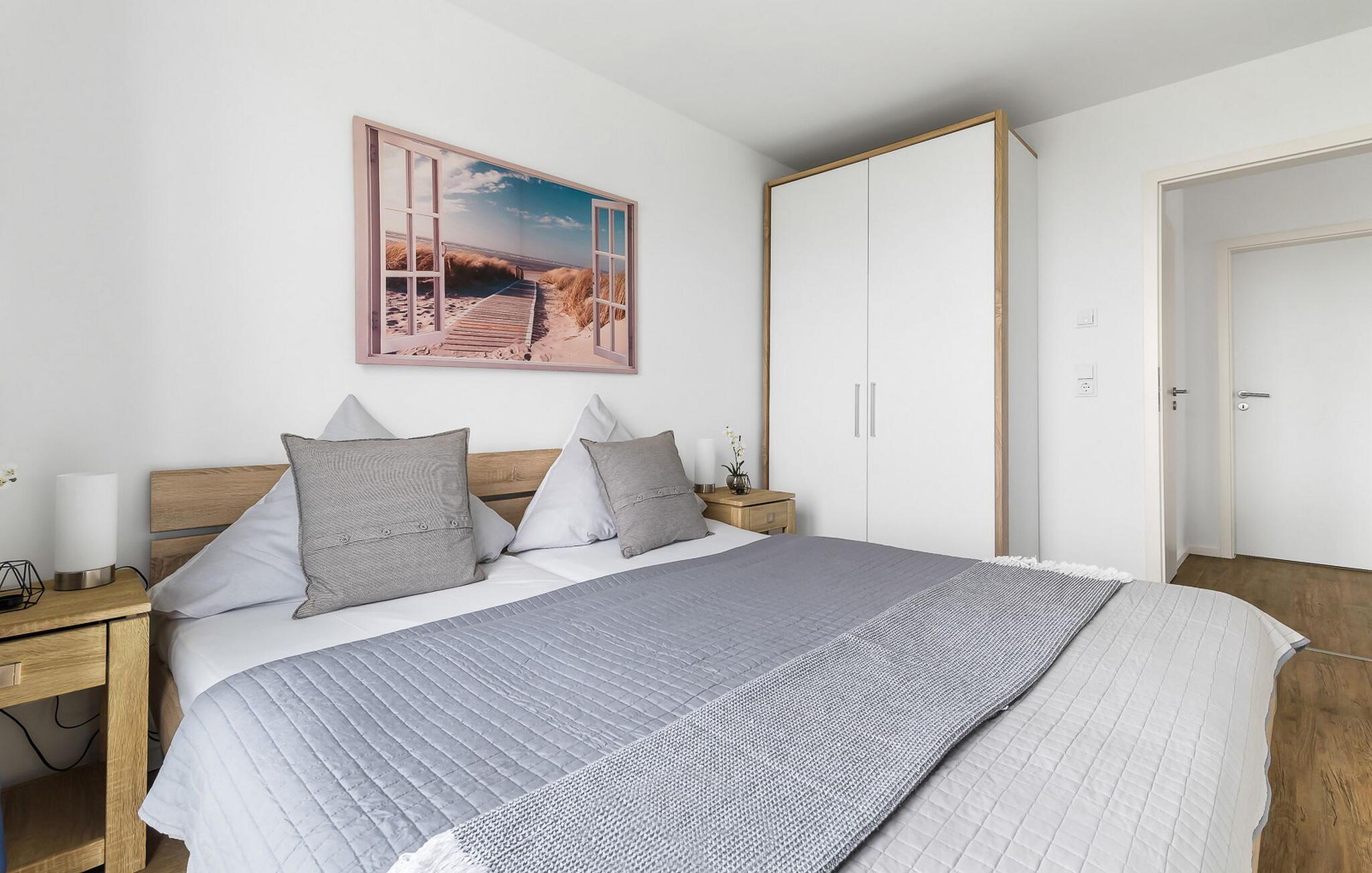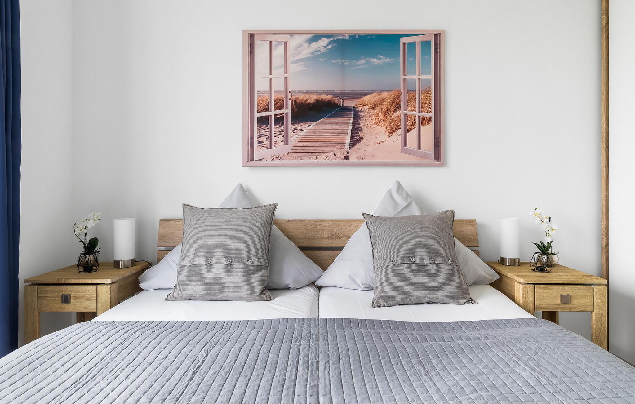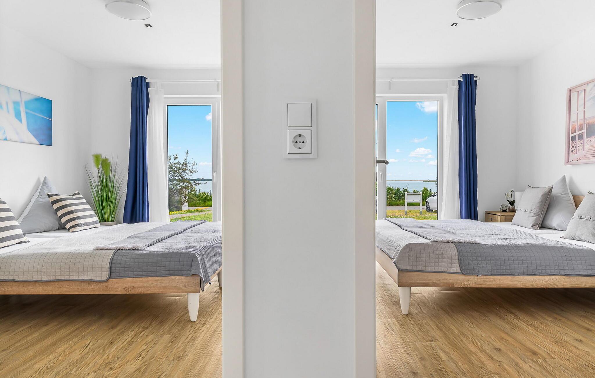 Die Wohnung verfügt über zwei Schlafzimmer, beide mit einem herrlichen Blick auf die Schlei und einem Fernseher. Zwei weitere Schlafplätze können auf Wunsch im Wohnzimmer mit einer Auszieh-Couch (160x193cm) bereitgestellt werden (das Zimmer ist nicht komplett verdunkelbar).