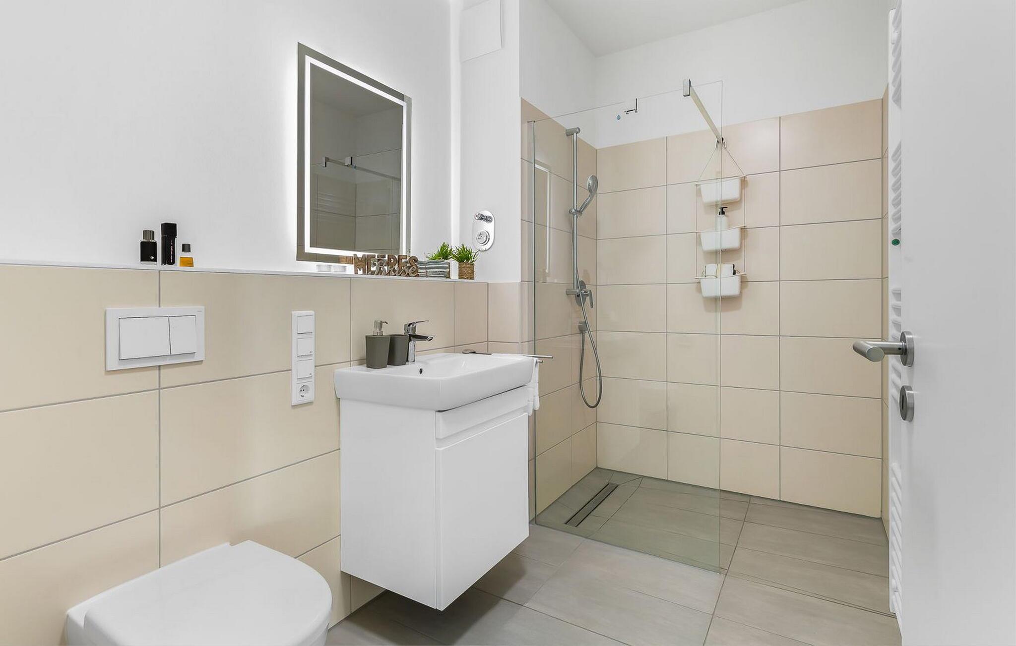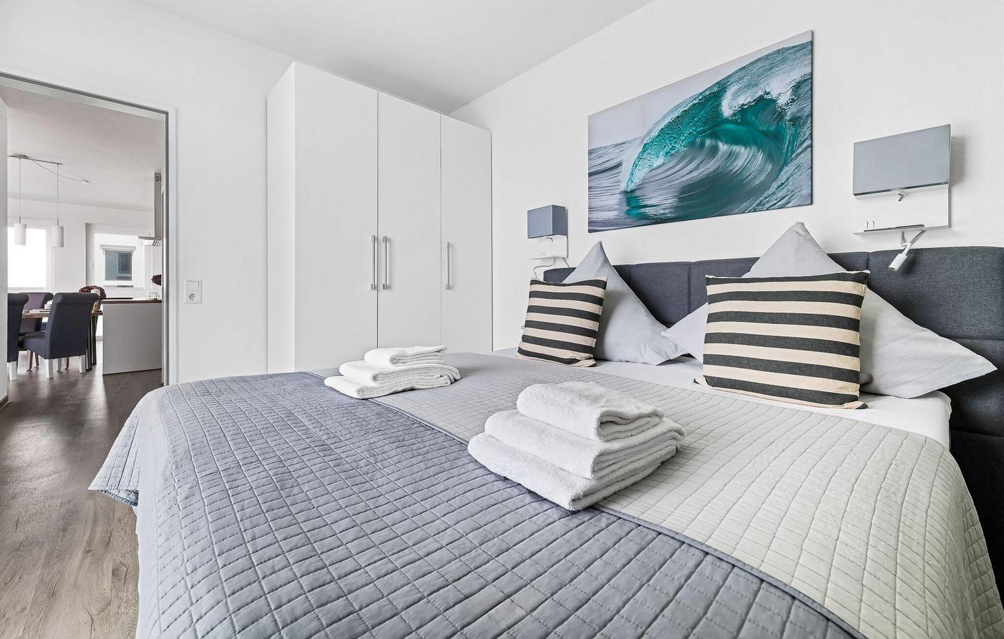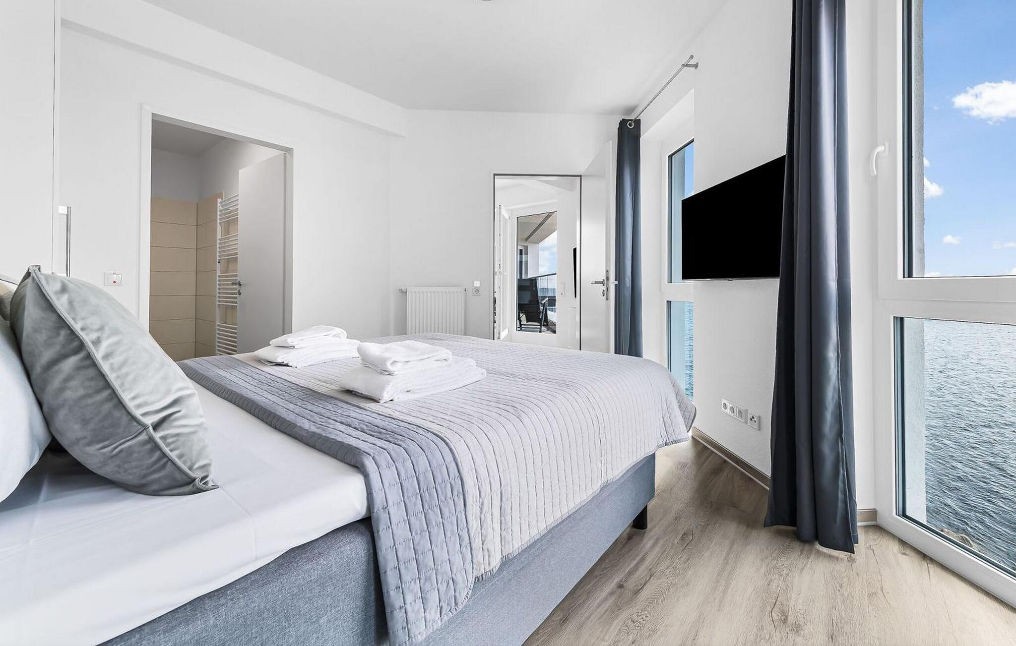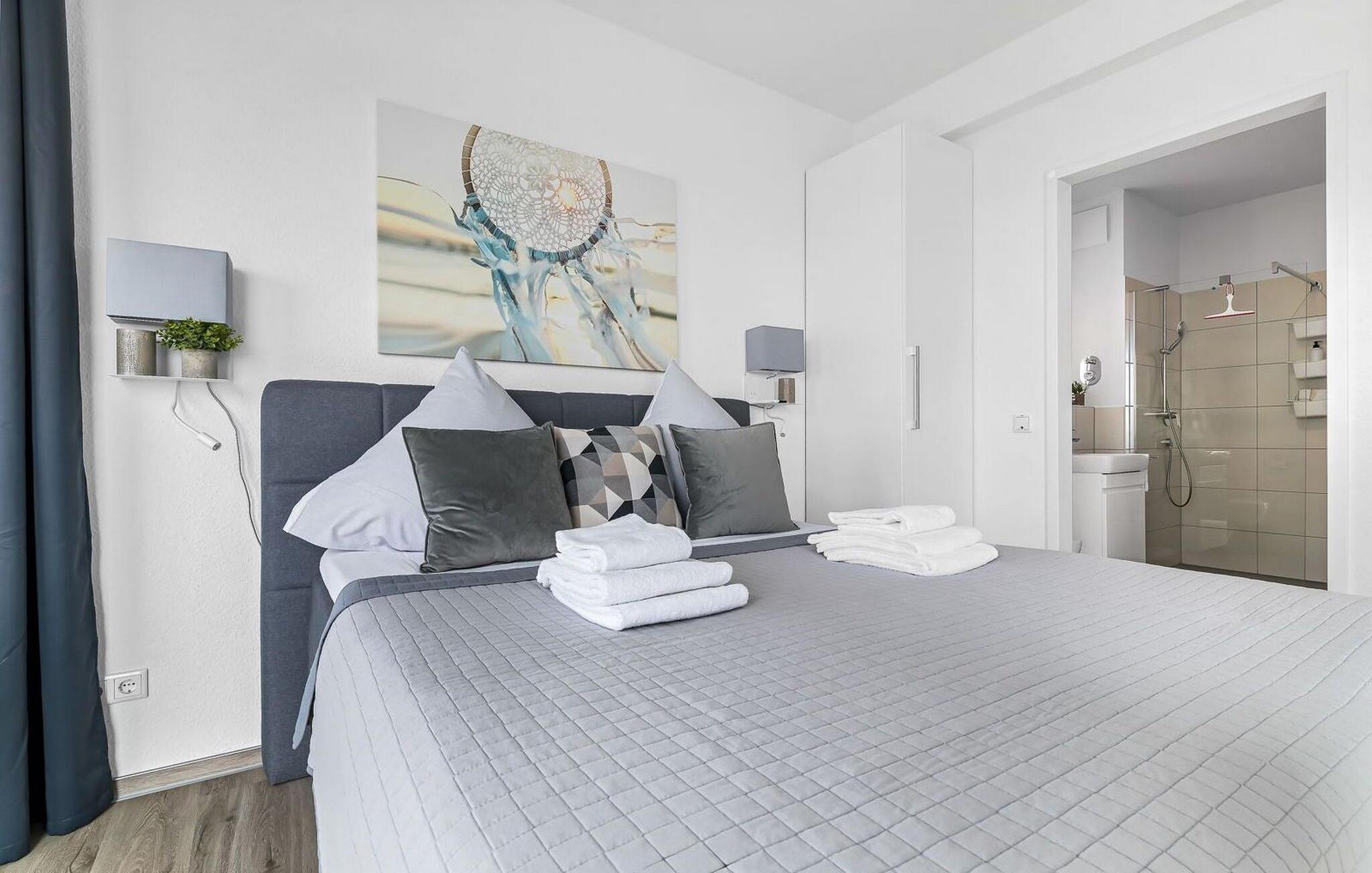 Die beiden Schlafzimmer sind mit je einem Doppelbett und einem Smart-TV ausgestattet, eines der Schlafzimmer verfügt zusätzlich über ein En-Suite-Badezimmer inkl. bodengleicher Dusche.
