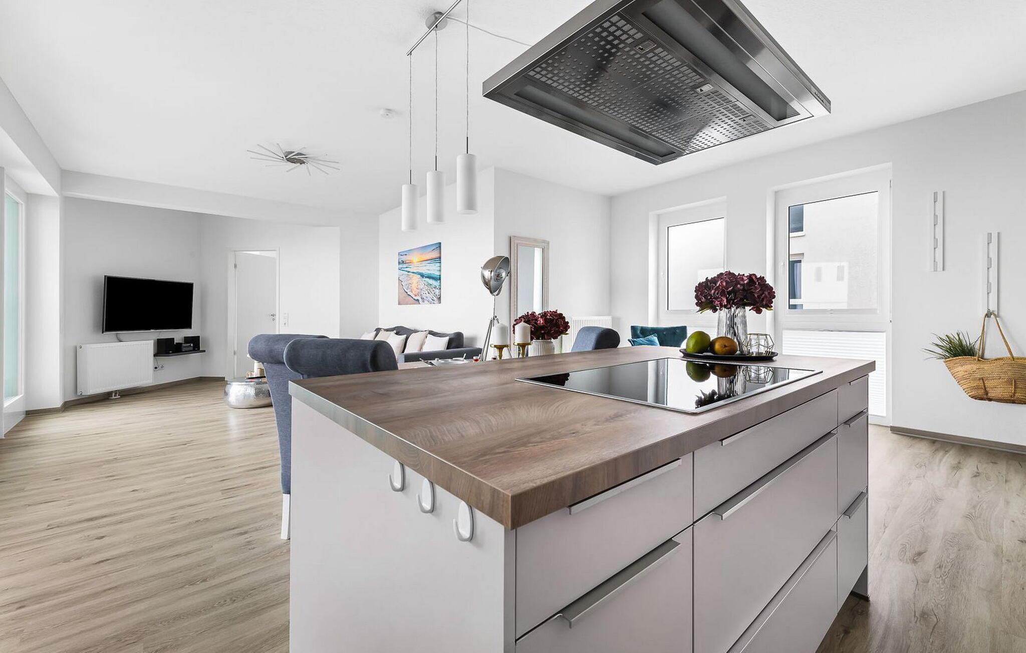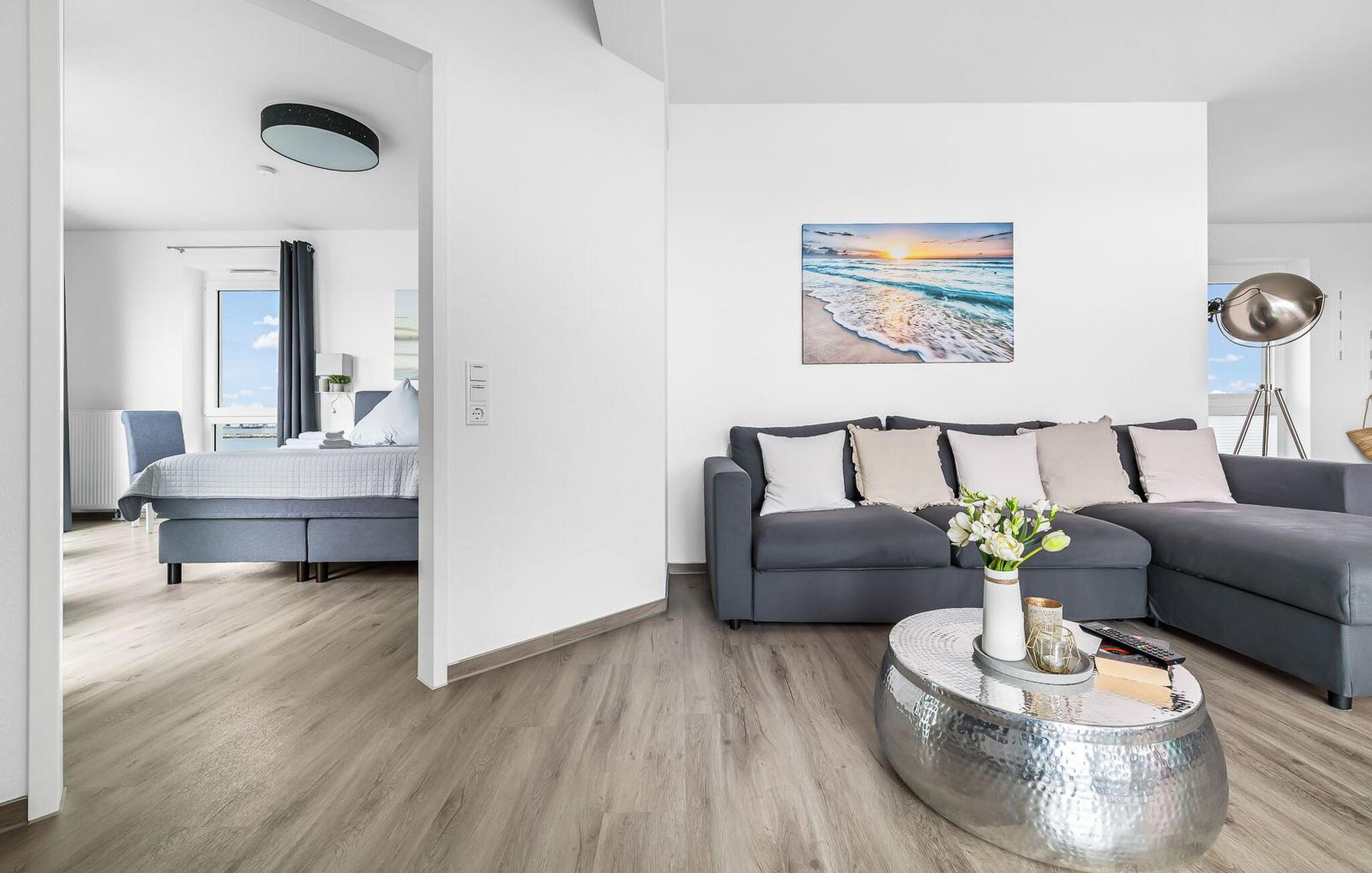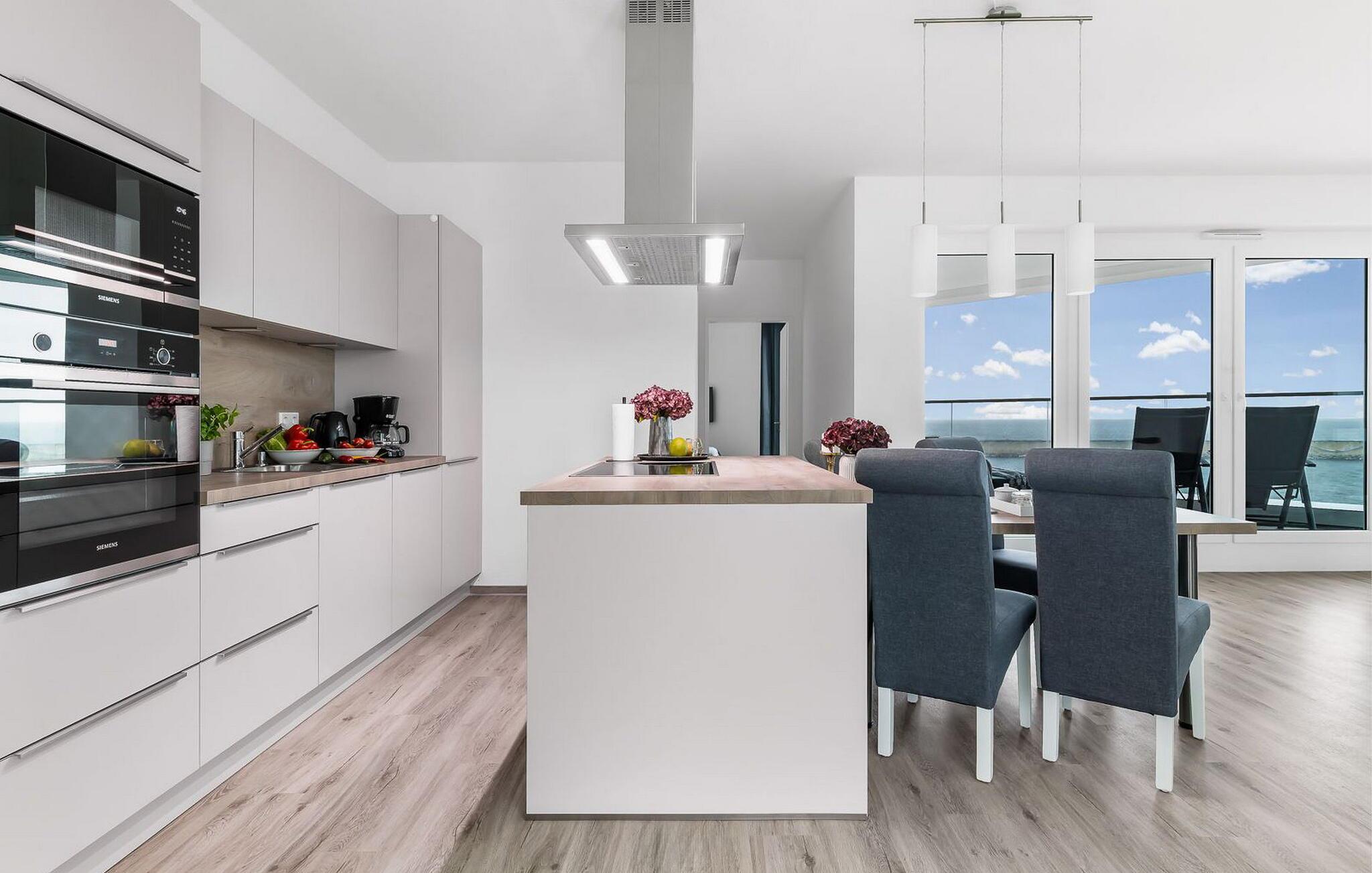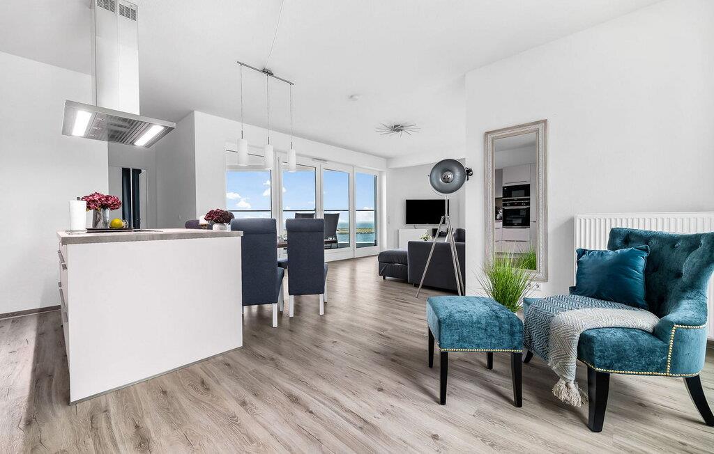 Herzlich Willkommen in eurem Urlaubstraum auf der Ostsee. Mehr Nähe zum Wasser ist kaum möglich. In dieser Wohnung erwartet euch ein unverwechselbarer Blick auf die Ostsee - und das aus jedem Zimmer. Der offene Wohn-Essbereich bietet ausreichend Platz zum Erholen und Entspannen. Für den Urlaub mit der ganzen Familie lässt sich das Sofa bequem zu einem Doppelbett (160x200cm) ausziehen. Die angrenzende Küche ist hochwertig ausgestattet und lässt keine Wünsche offen.?