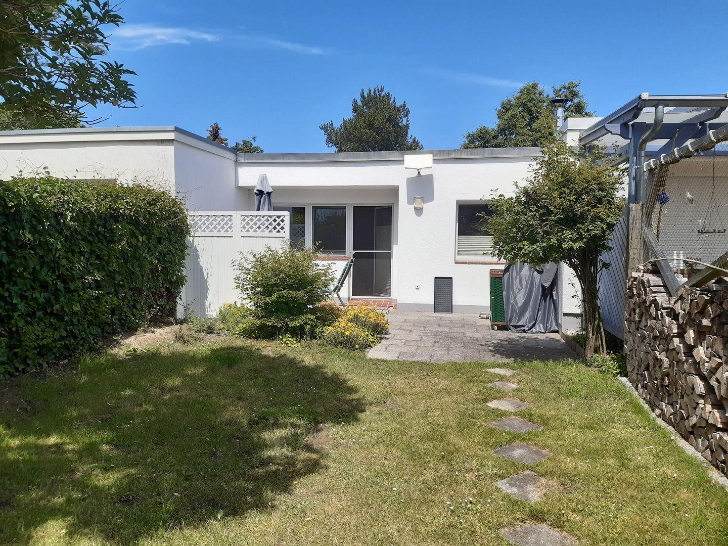 Charmantes 50m² Ferienhäuschen nahe dem Strand mit eigenem Garten, Terrasse und Strandkorb für einen erholsamen Urlaub.