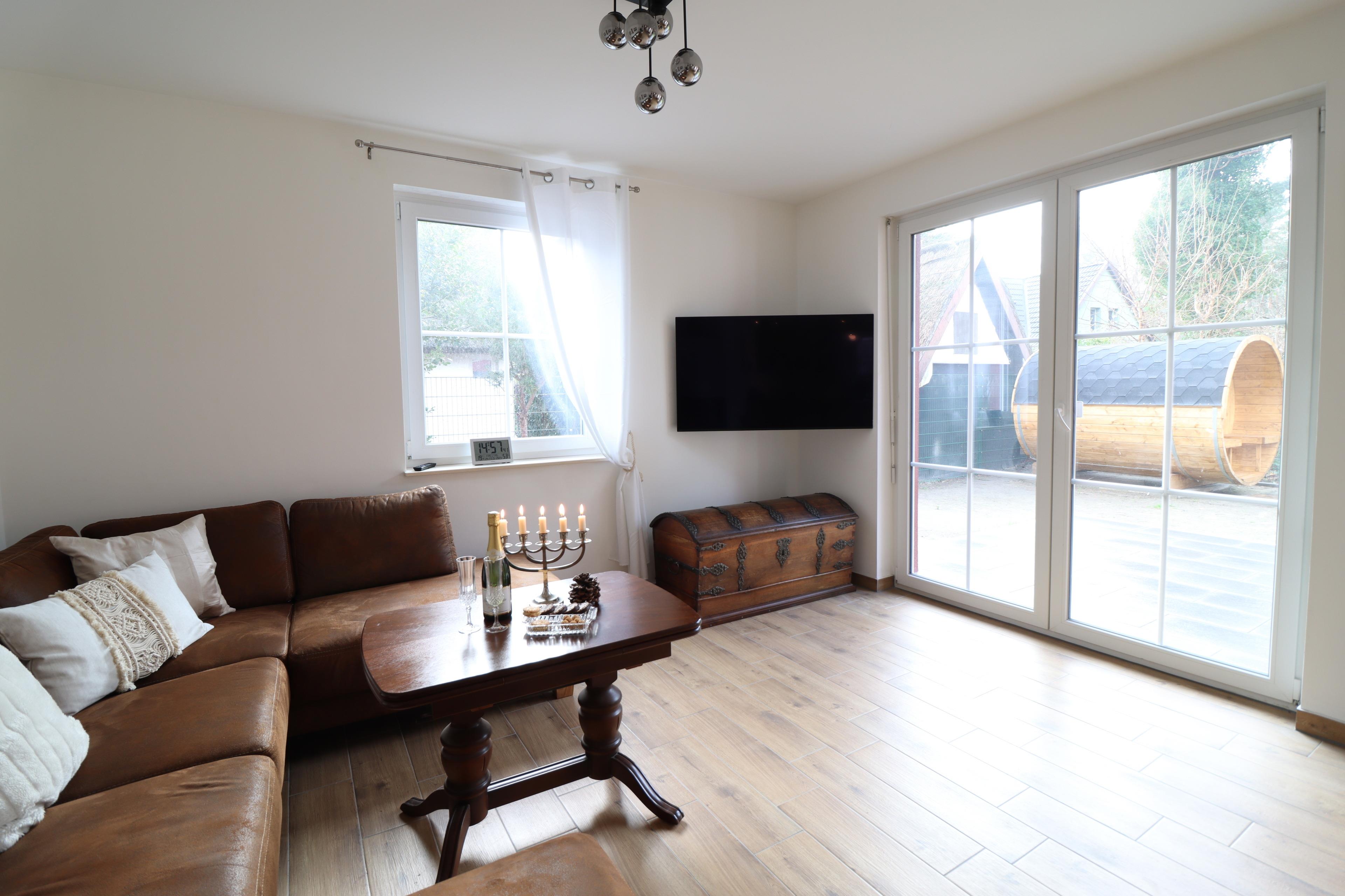 Das 2023 fertig gestellte schwedenrote Ferienhaus liegt direkt hinter den Dünen (4 Minuten zu Fuß zum Strand) des schönsten Strandes der Ostsee und bietet auf einer Wohnfläche von 135 m² ausreichend Platz für 6 Personen und ein Kleinkind. Das hochwertig und liebevoll eingerichtete Haus verfügt über eine Fußbodenheizung im Ober- und Untergeschoss mit Wärmepumpe, eine offene Küche mit Kochtresen und Arbeitsplatz, diversen Elektrogeräten (Kaffeemaschine, Wasserkocher, Toaster, Espressomaschine, Kühlschrank, Tiefkühlschrank, Geschirrspüler, Induktionsplatten, Backofen) und allem anderen, was man zum Kochen braucht. Im Wohnzimmer befindet sich ein Kamin, ein Essplatz im lichtdurchfluteten Erker, eine Sitzecke mit Fernseher (SONY OLED 55“), Bücher und diverse Gesellschaftsspiele für Groß und Klein. Im Erdgeschoss ist ein Bad mit Dusche vorhanden. Über eine Eichentreppe gelangt man in die Galerie mit Sitzgruppe und Fernseher (Philips LCD 65“). Alle Fenster (mit Außenrollos) haben einen wunderbaren Blick ins Grüne. Im OG befinden sich auch die drei gemütlichen Schlafzimmer (bei Buchung von mindestens 5Erwachsenen), zwei Schlafzimmer (bei Buchung von 1-4 Erwachsenen) mit Doppelbetten und Einzelbetten sowie ein großes Bad mit Badewanne und ebenerdiger Dusche. Für die Kleinsten gibt es ein Kinderreisebett, Hochstuhl, Gartenstuhl, diverse Spielsachen und Kinderbücher. Im Garten des 500 m² großen Grundstücks mit Strandkorb und der 30 m² großen Terrasse mit Terrassenmöbeln sowie Gasgrill können Sie genießen, entspannen und den schönen Strandtag ausklingen lassen. Parkplätze für 3 PKW sind vorhanden. Die Sauna ist nicht im Mietpreis inbegriffen. Das Grundstück ist umzäunt, die Eingangspforte und die Tore der Autoauffahrt sind abschließbar.