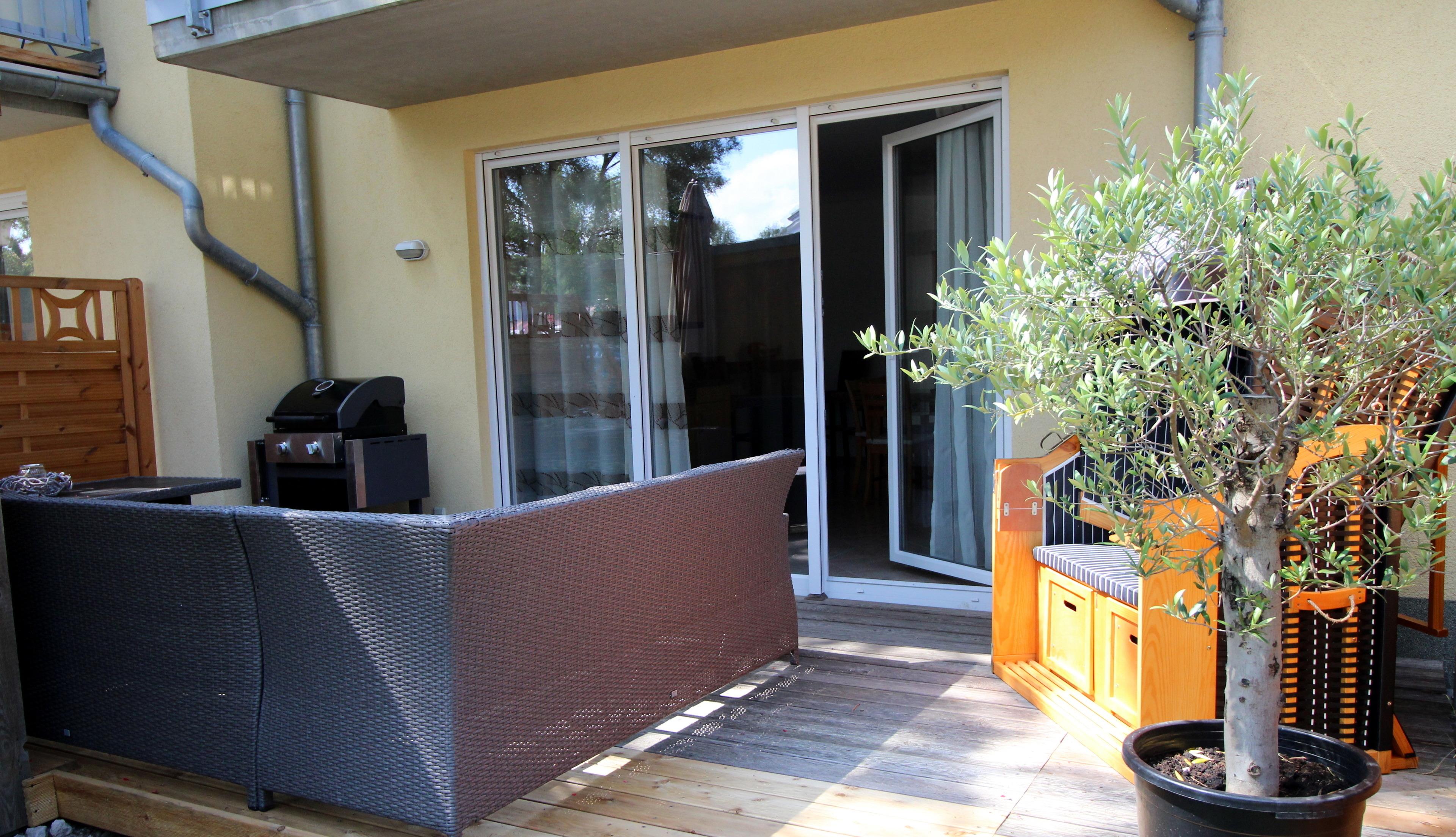 Gemütliche Ferienwohnung in Dierhagen Strand mit Terrasse, direktem Strandzugang und moderner Ausstattung für entspannte Urlaubstage.