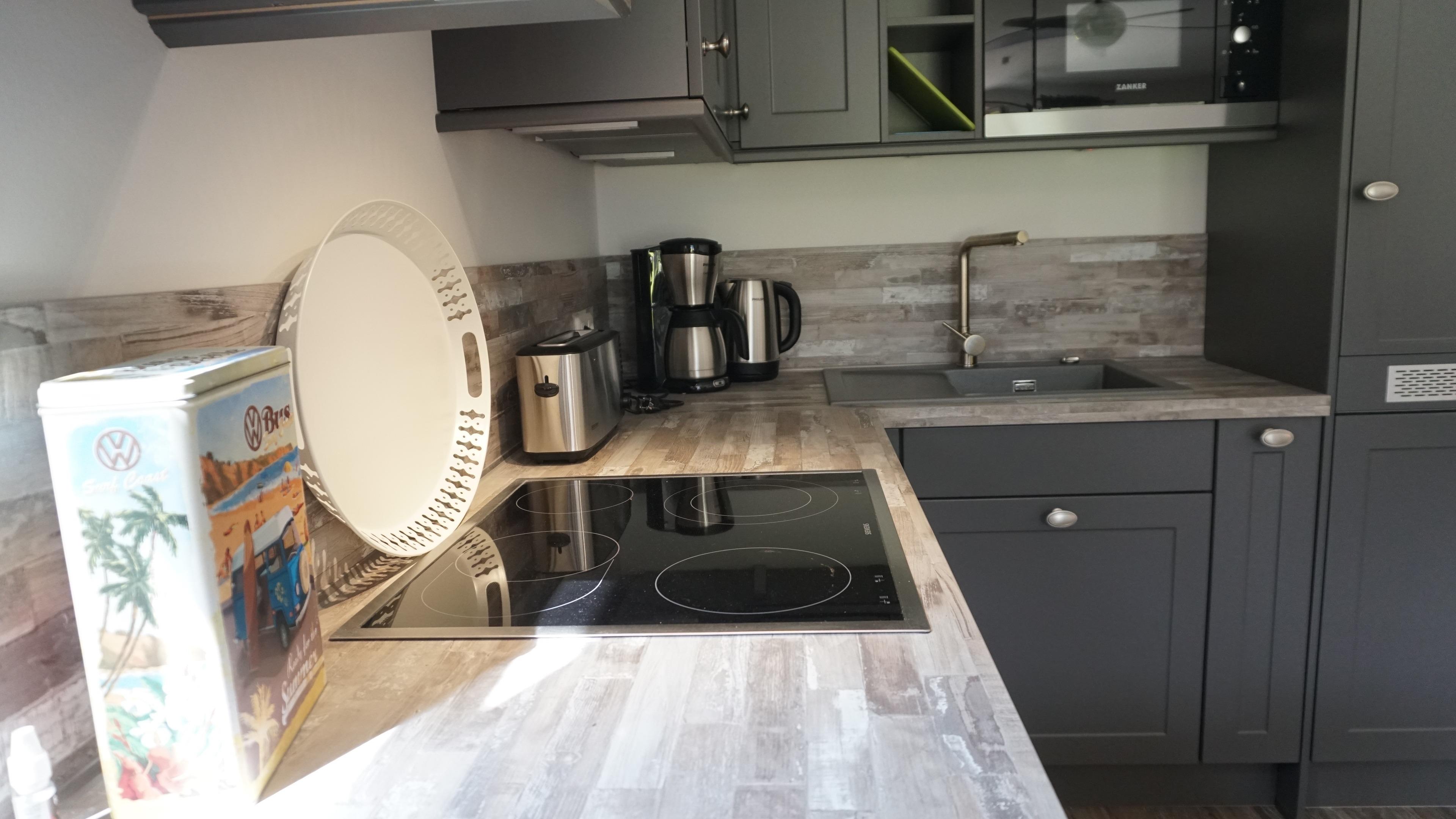 - eine offene, komplett ausgestattete Küche