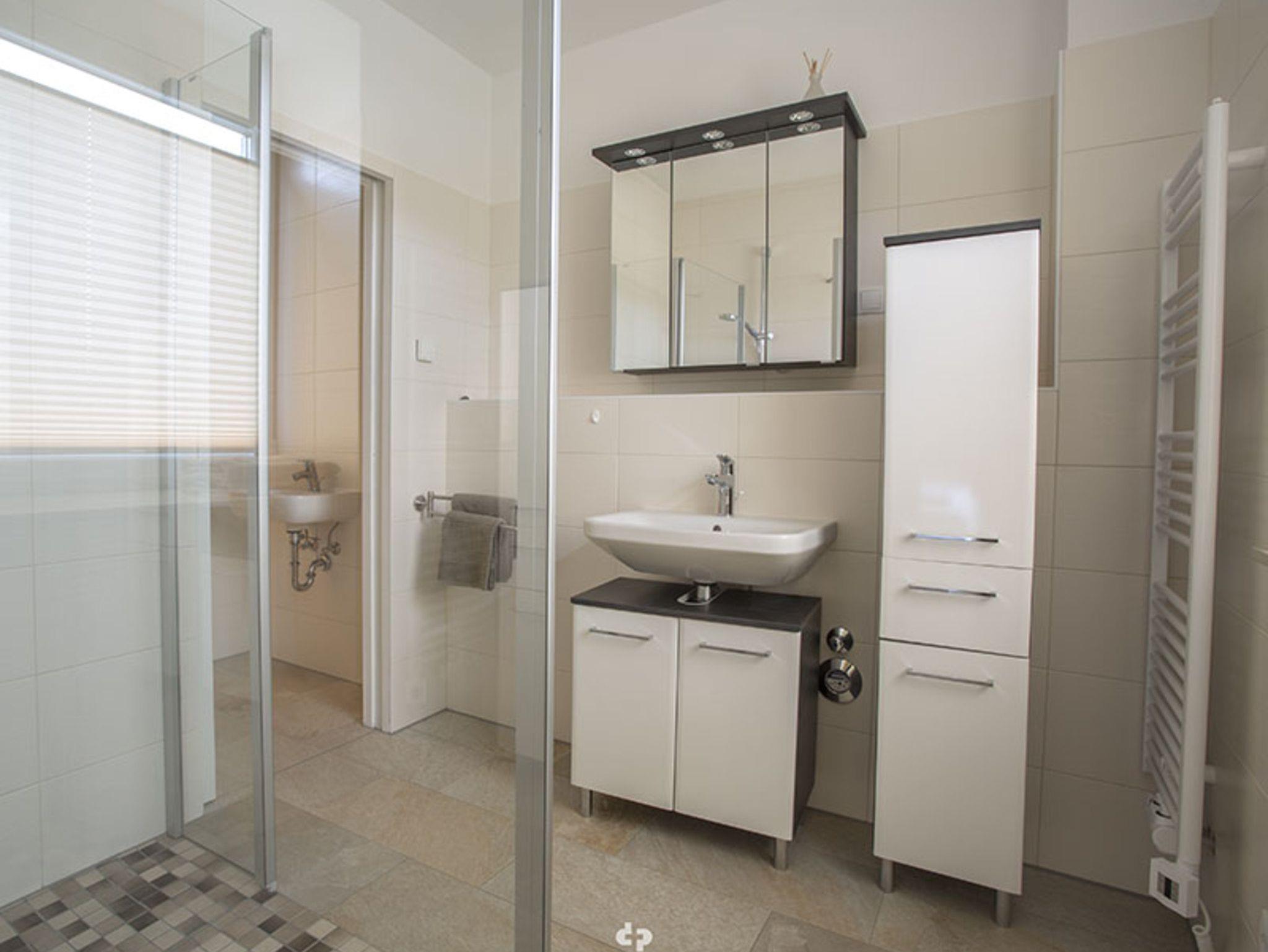 Das separate WC mit Waschbecken ist vom Eingangsbereich sowie vom Duschbad aus, begehbar.