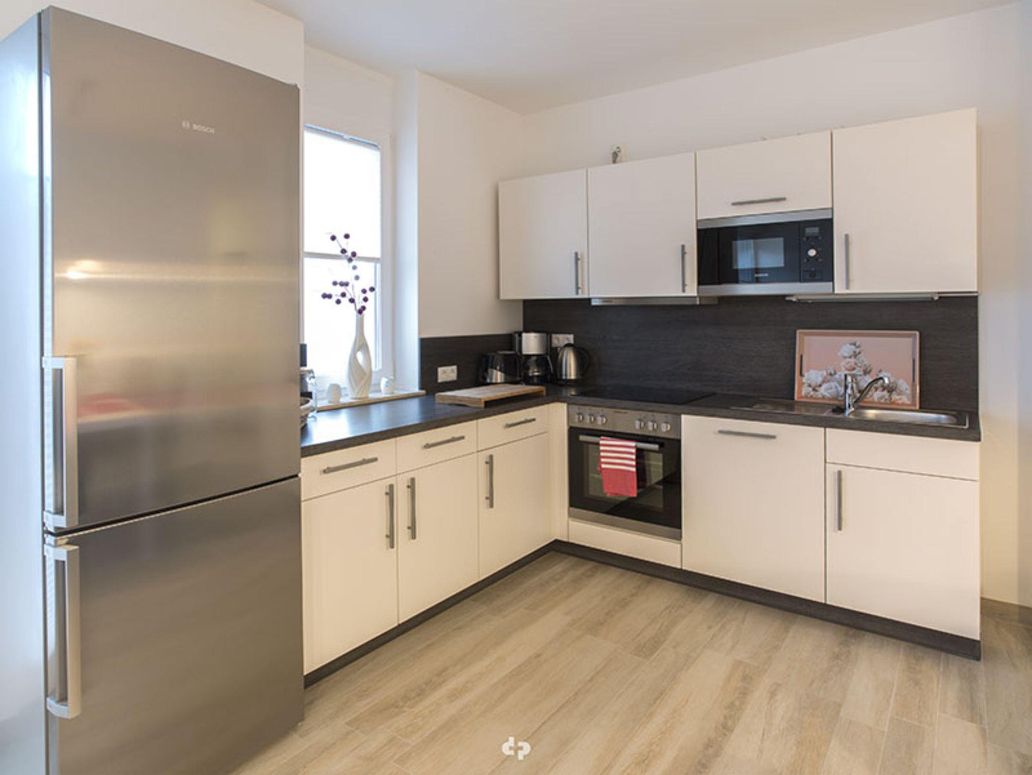 Die liebevoll eingerichtete Nichtraucherwohnung, die durchgehend mit hochwertigen italienischen Bodenfliesen ausgelegt ist, verfügt über ein großes helles Wohnzimmer mit offenem Ess- und Küchenbereich, sowie einem Schlafzimmer.