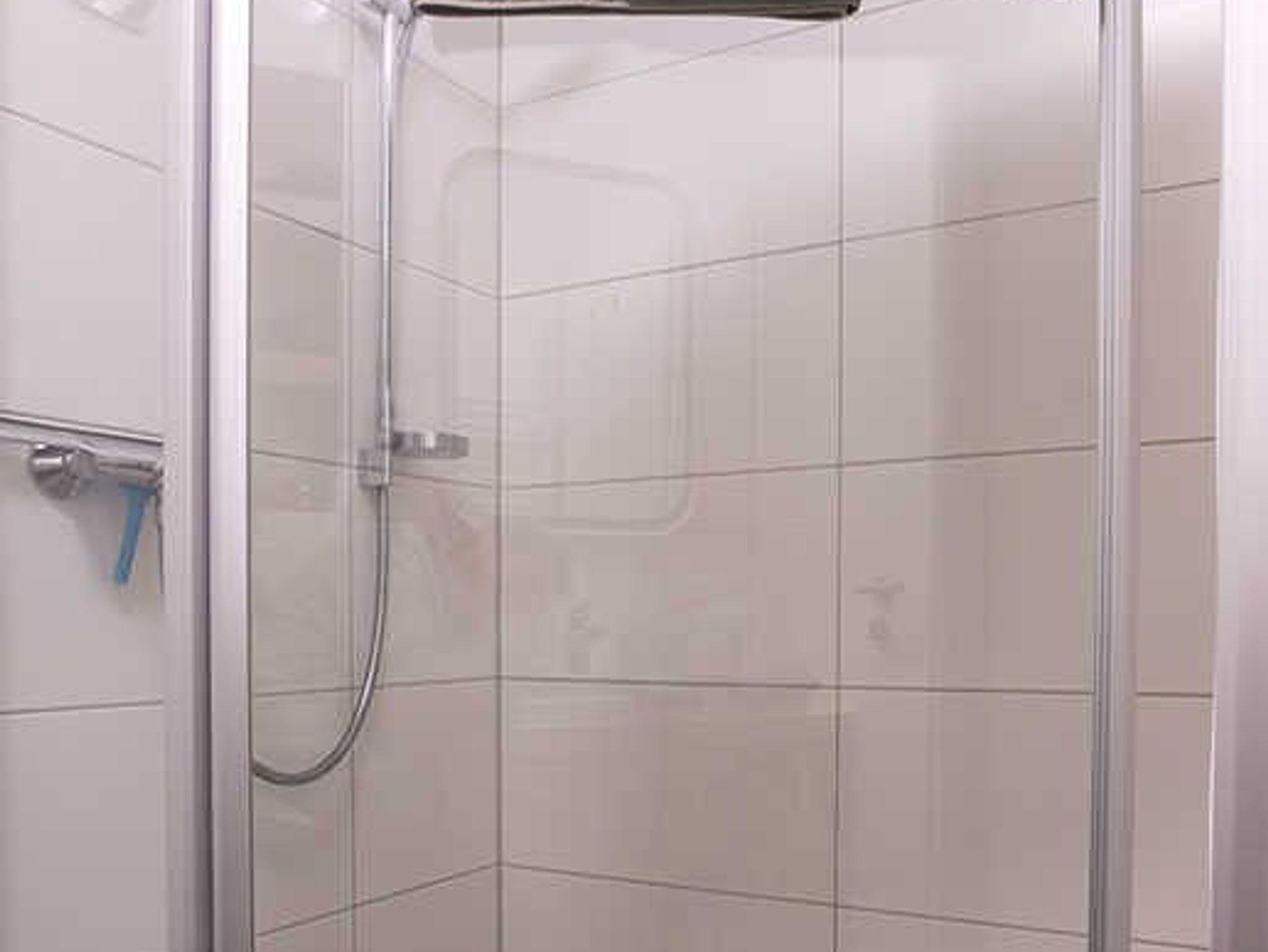 • Das Bad verfügt über eine großzügige Dusche, einen Waschplatz, ein WC sowie einen Handtuchheizkörper.
