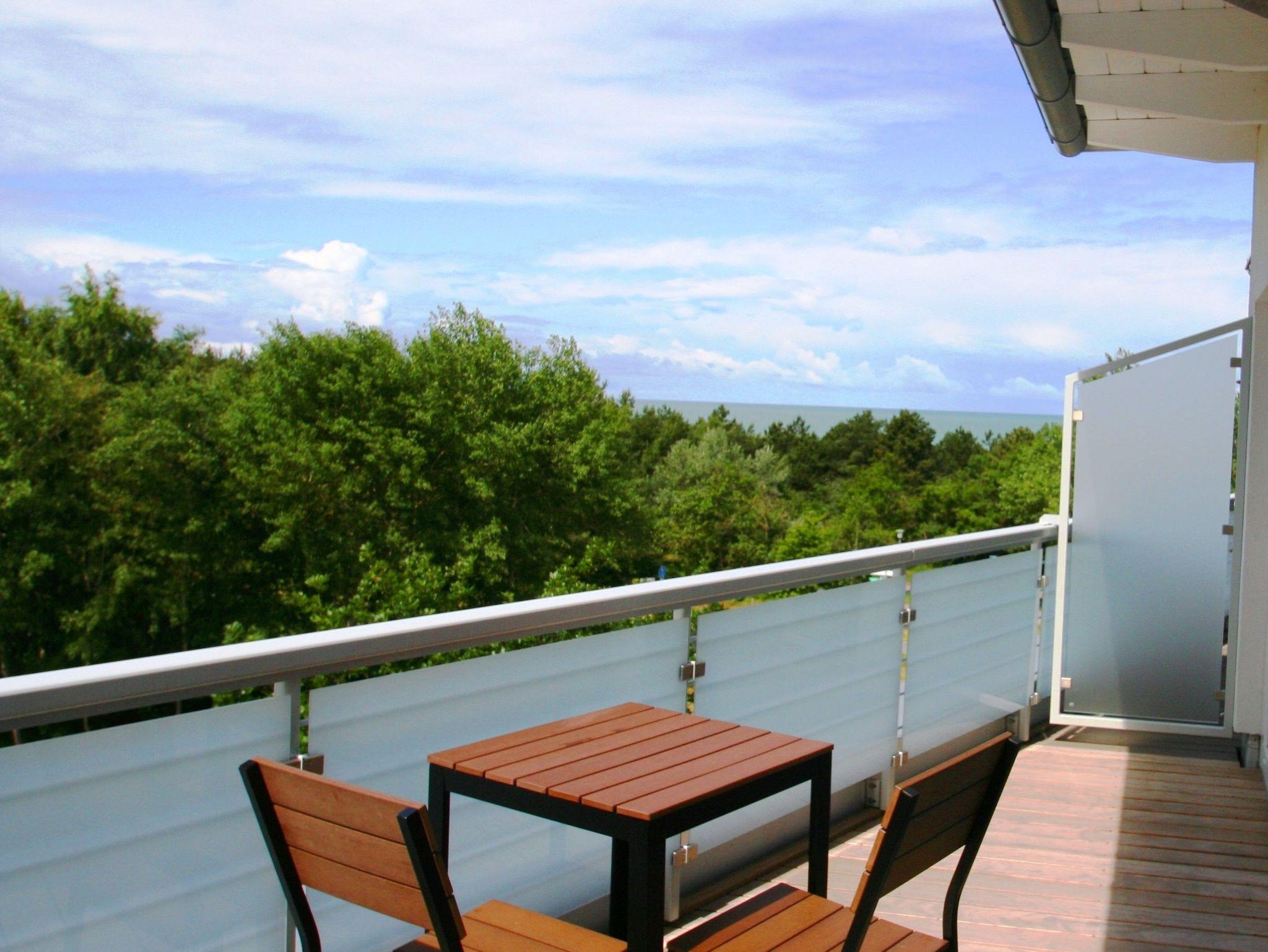 Moderne Panoramasuite mit eingeschränktem Meerblick und Dachterrasse nahe dem feinen Sandstrand in Dierhagen.
