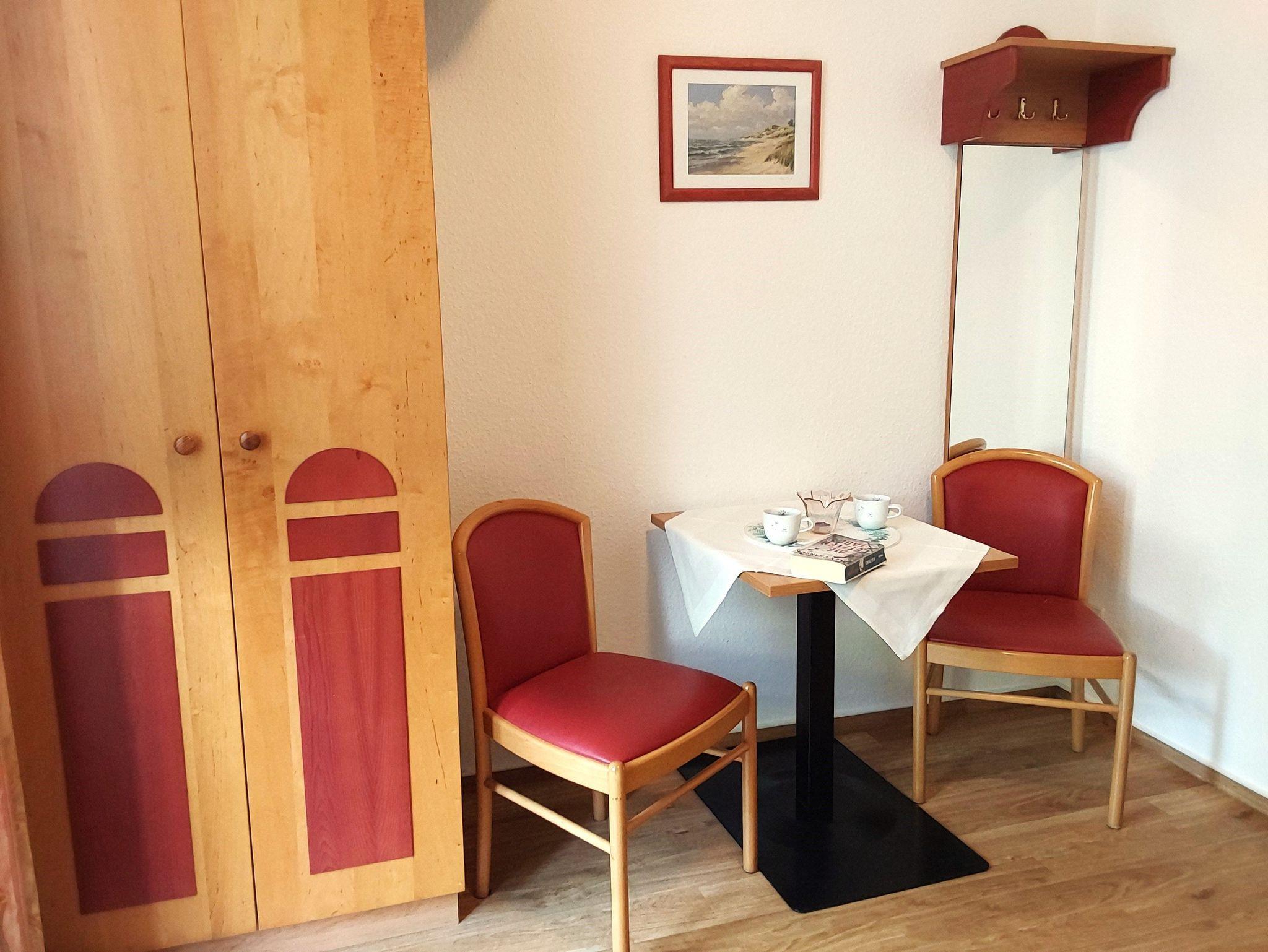 Die FEWO ist für zwei Personen üppig groß und insgesamt gut ausgestattet. Die fehlende Spülmaschine fällt bei zwei Personen kaum ins Gewicht, das fehlende W-Lan ist nicht mehr zeitgemäß. Auch die weißen Plastikstühle auf den Balkonen sollten einmal erneuert werden.