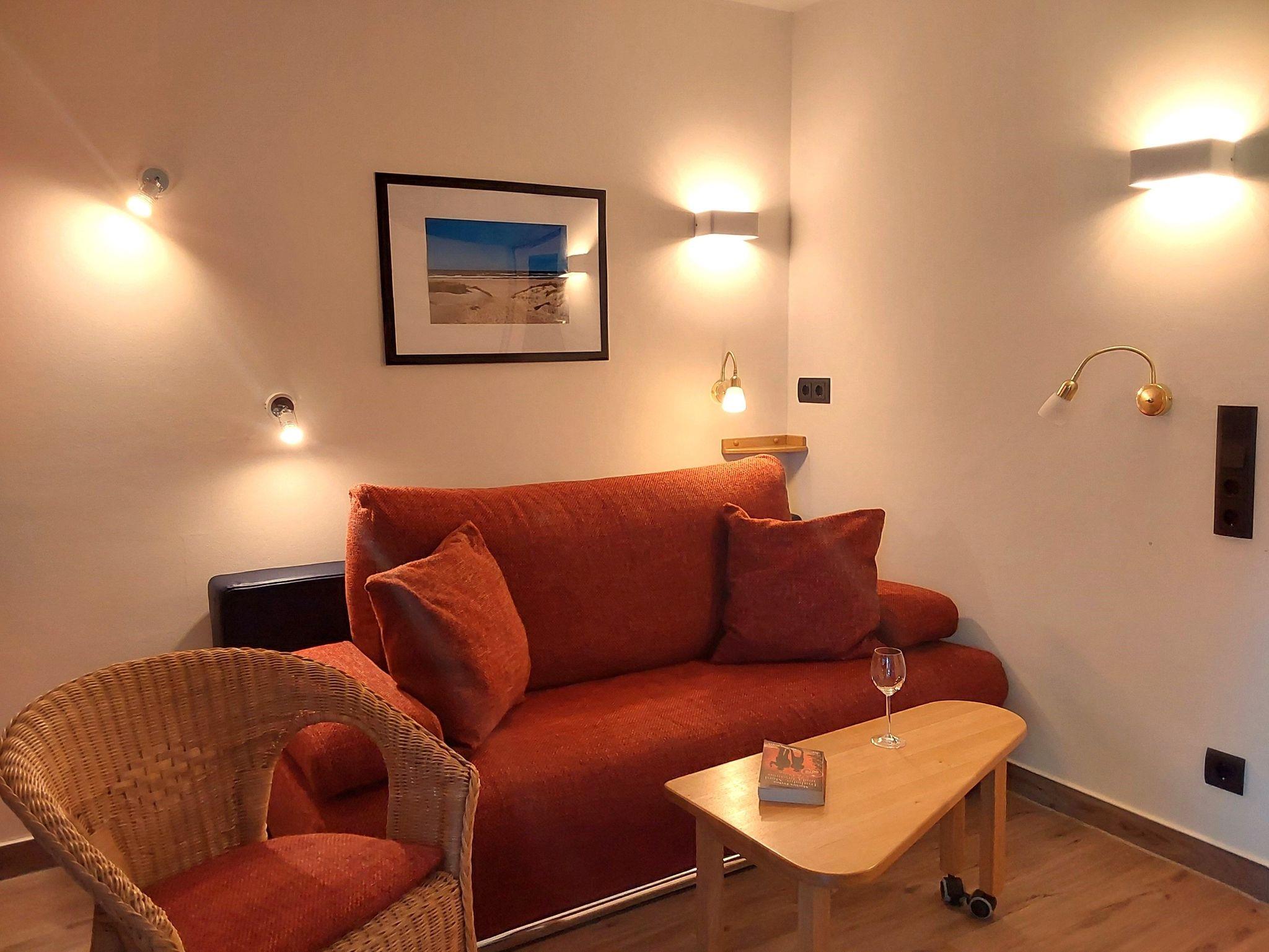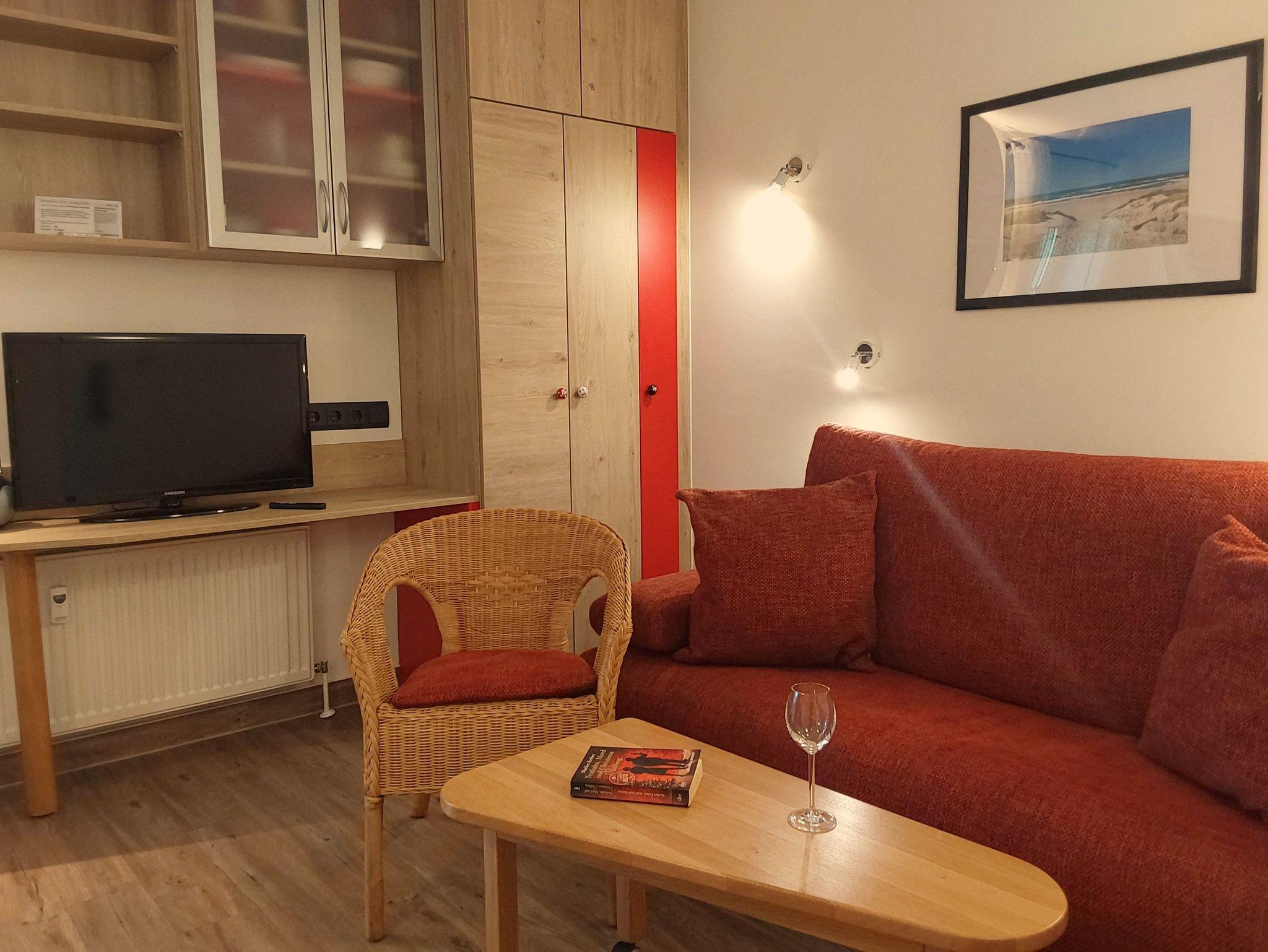 Die modern eingerichteten 2-Raum-Appartements dieser Kategorie sind für maximal 4 Personen geeignet und ca. 38 qm groß. Sie verfügen über einen Wohn-/Schlafraum mit Schlafcouch für 2 Personen und ein separates Schlafzimmer (Doppelbett oder 2 Einzelbetten). Alle unsere Wohnungen sind Nichtraucher-Wohnungen. Bei einigen Appartements können Sie Ihr Haustier mitbringen (s. Zimmerdaten). Ausstattung: Sat-TV, Radio, Küchenzeile, Dusche/WC, möblierte Terrasse oder Balkon. Bettwäsche und Handtücher als Erstausstattung.