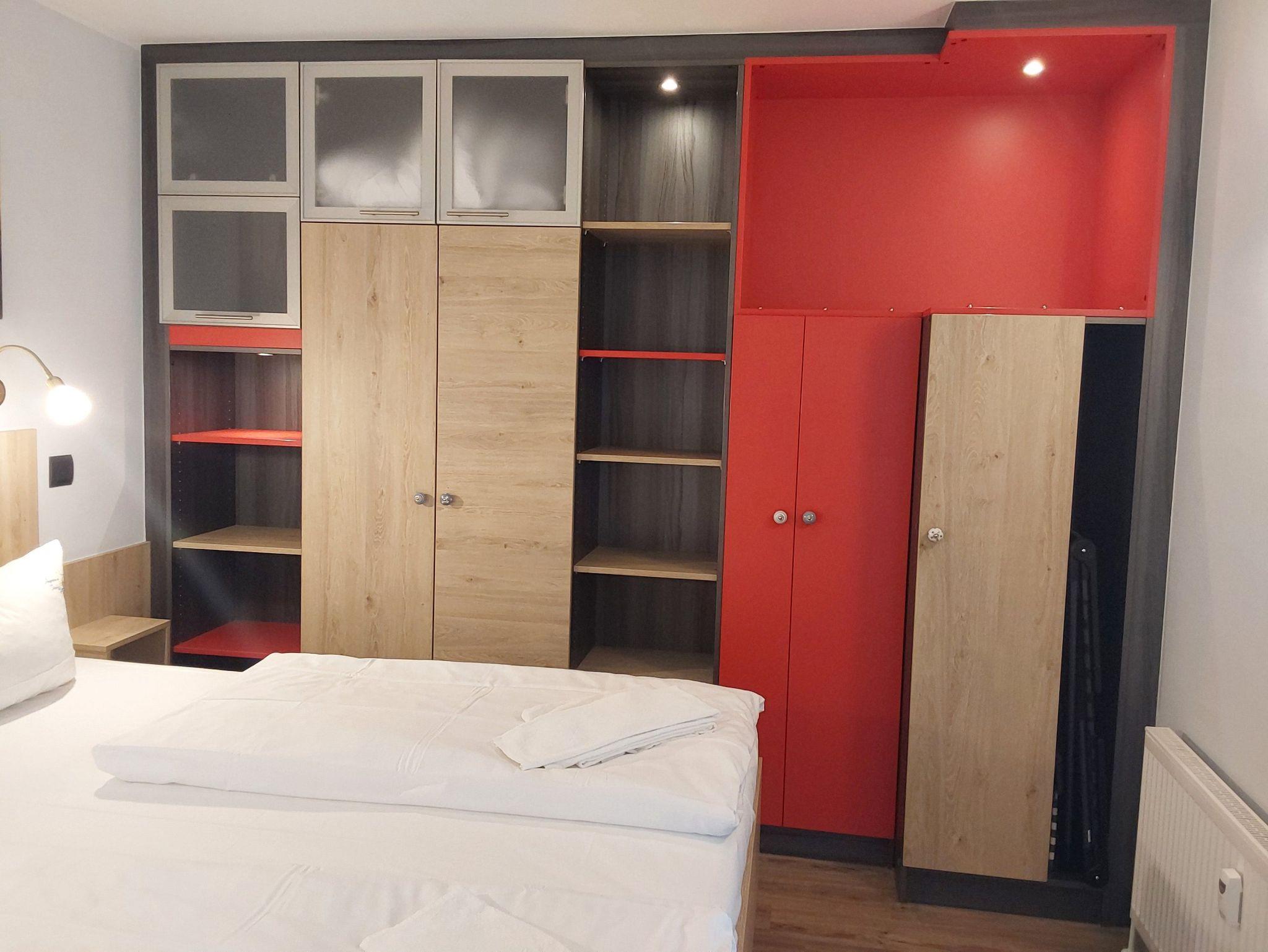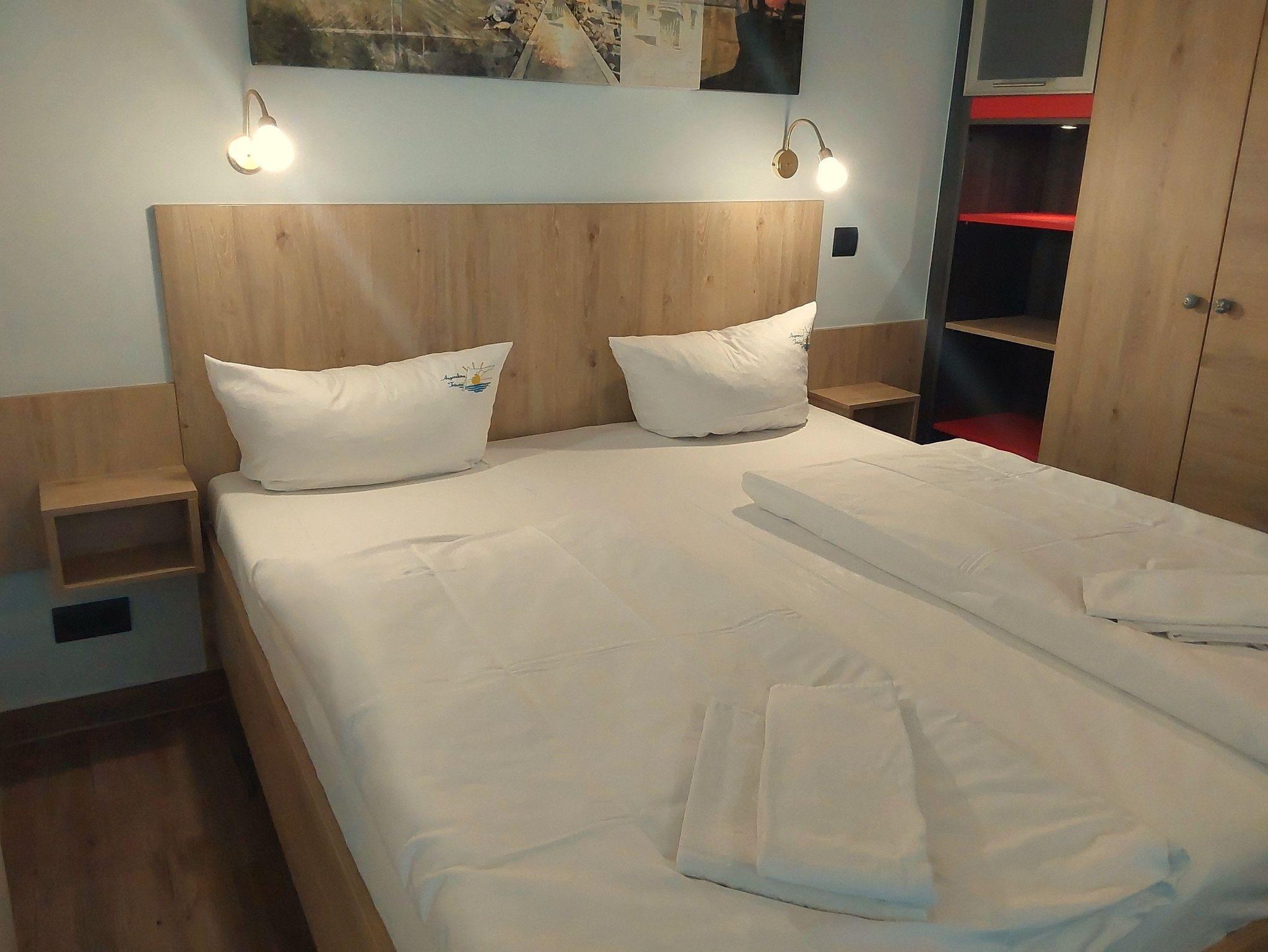 Alle Zimmer mit einem Doppelbett ausstatten. Preis/Leistung anpassen.