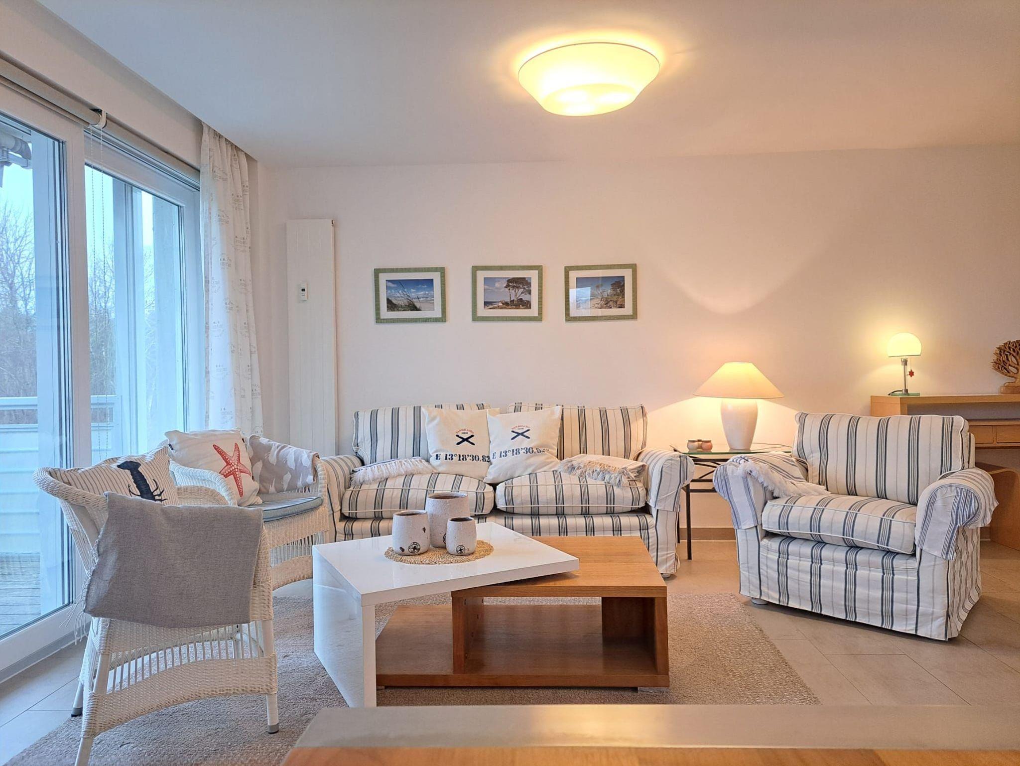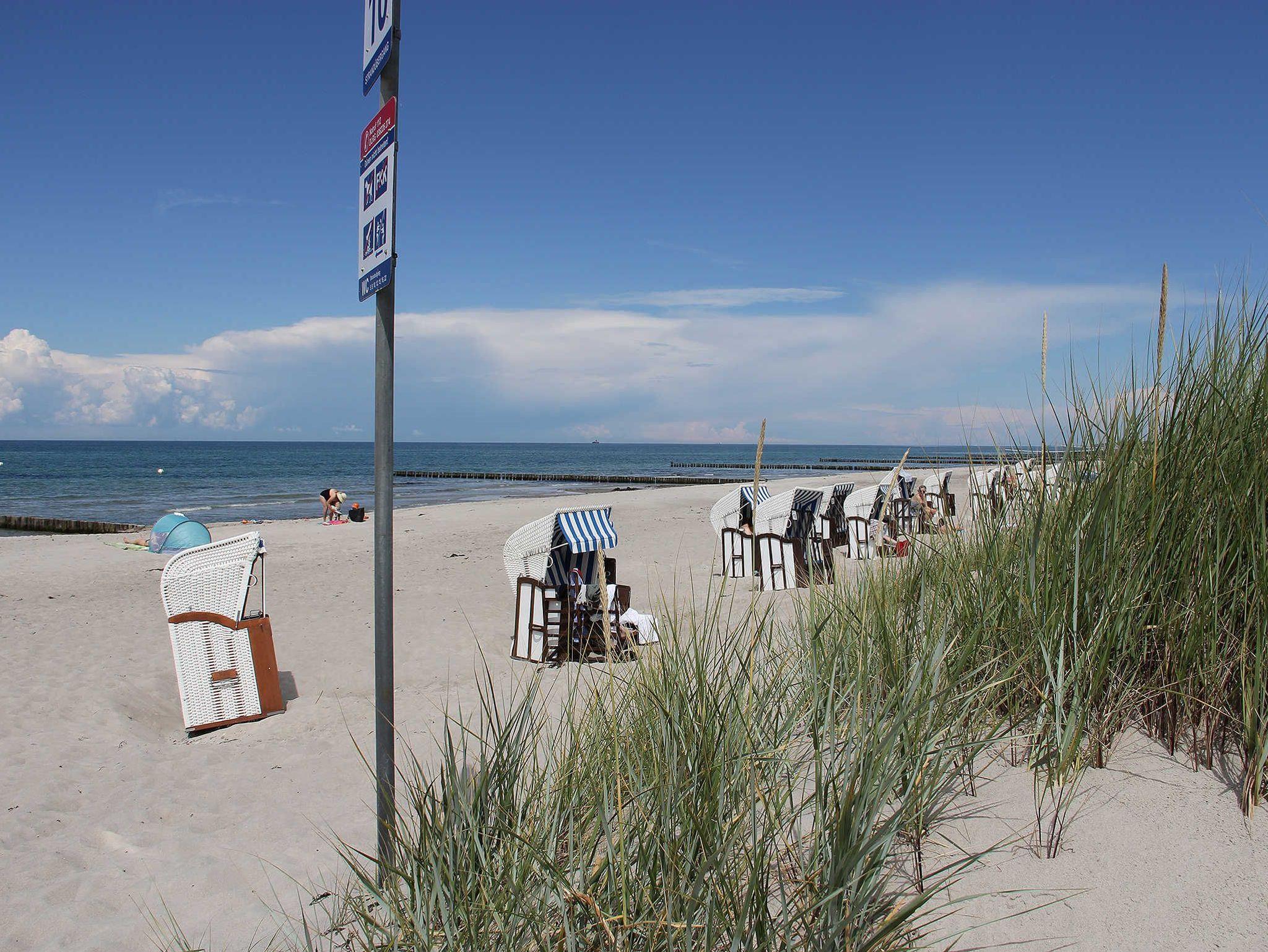 Moderne Ferienwohnung in Dierhagen mit Balkon und Strandkorb, nur 200 m vom feinsandigen Strand entfernt.