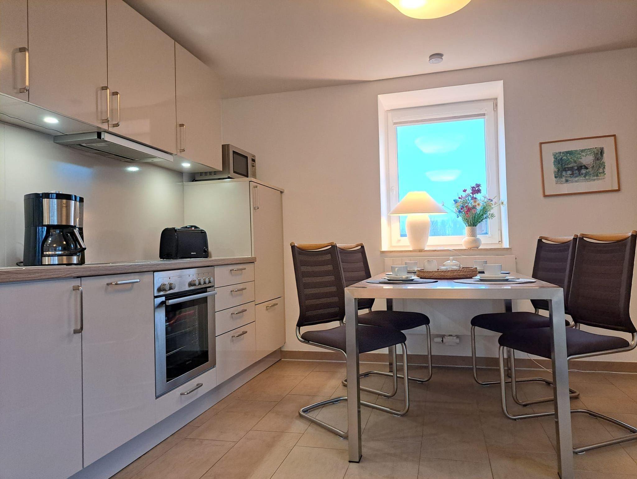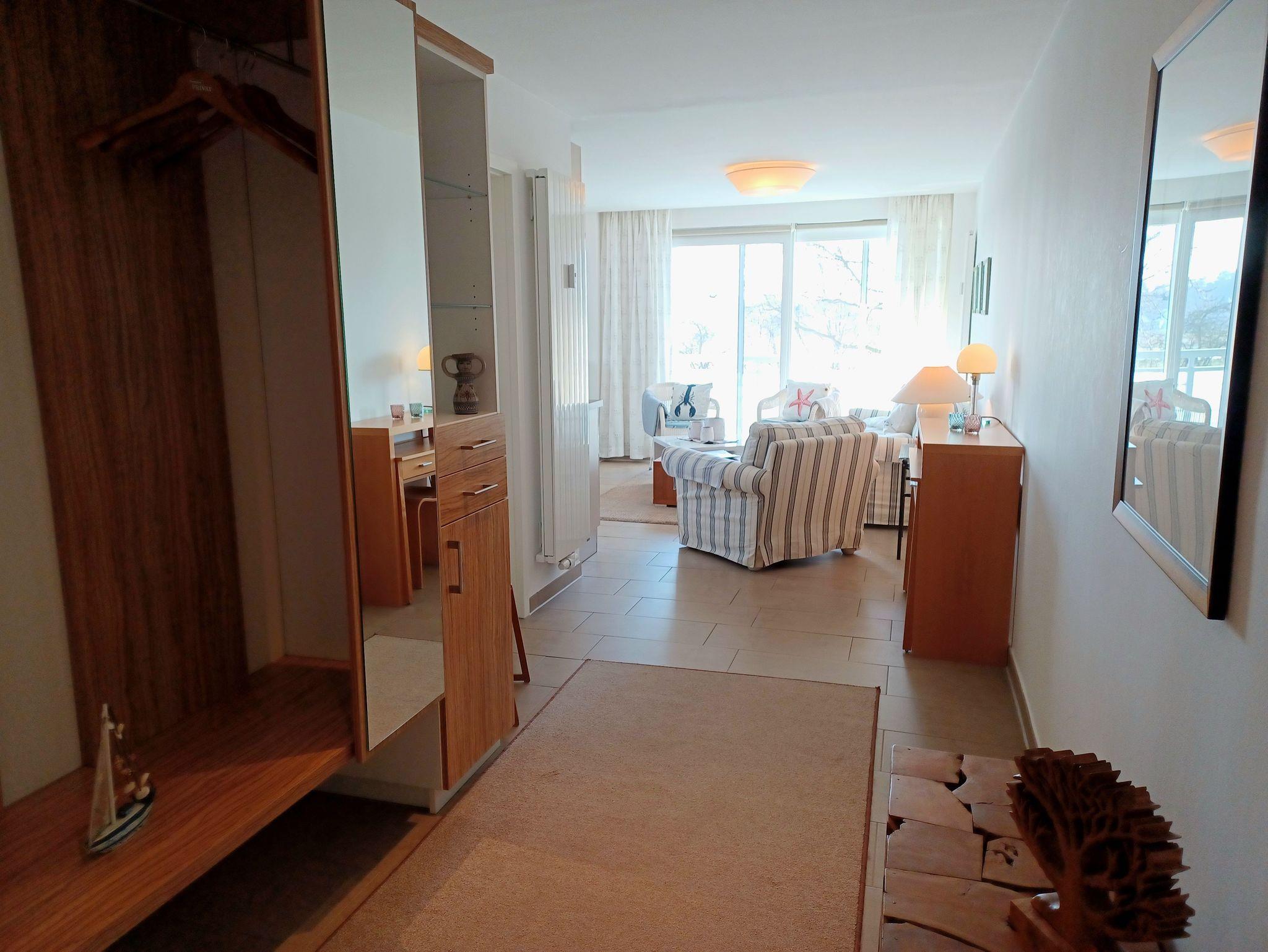 die geschmackvoll, modern eingerichtete Ferienwohnung mit viel Liebe zum Detail liegt im 1. Obergeschoss der Ferienanlage Käpt` Brass mit dem Südseitigem Balkon, lädt Sie zum gemeinsamen frühstücken ein. Genießen Sie den ganzen Tag die Sonne und den weiläufigen Blick auf die Wiesen. Der feinsandige Strand befindet sich in etwa 200 m. Unsere Gäste aus dem Appartement 8 können den kostenlosen Strandkorb nutzen und dabei den Sonnenuntergang am Abend mit einem guten Glas Wein ausklingen lassen. Ein Fahrstuhl steht Ihnen im Eingangsbereich zur Verfügung. Die offenen gestaltete Ferienwohnung mit der Küchenzeile und dem Essplatz lädt zum gemeinsamen kochen und genießen ein. In der Küchenzeile finden Sie alle notwendigen Küchenutensilien. Das offene Wohnzimmer verfügt über eine Couch, kostenlosem WLAN- Zugang und SAT- TV. Für Ihre Nachtruhe steht ein Schlafzimmer mit Doppelbett 1,80 x 2,00 m und getrennten Matratzen und einem großen Schrank mit viel Stauraum bereit. Das Bad mit einer ebenerdigen Dusche und ein separates WC schließen sich an.Der Parkplatz befindet sich direkt vor dem Haus, einen abschließbaren Fahrradabstellraum befindet sich vor dem Hauptgebäude rechts. Alle unsere Wohnungen sind Nichtraucherwohnungen. Der Strandkorb ist von Mai- September verfügbar (wetterbedingt) Die Wohnung wird inclusive Bettwäsche übergeben, Handtücher können in der Zimmervermittlung für 7,00 € pro Person (1 Badetuch, 1 Handtuch) dazugebucht werden.