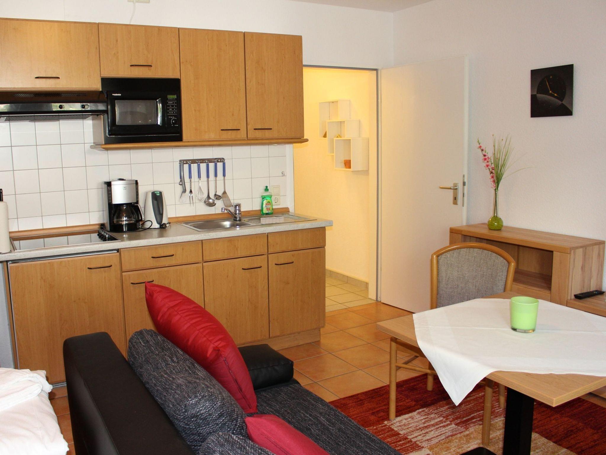 Die modern eingerichteten 1-Raum-Appartements dieser Kategorie sind für 2 Personen geeignet und ca. 30 qm groß. Sie verfügen über einen Wohn-/Schlafraum mit Doppelbett für 2 Personen. Alle unsere Wohnungen sind Nichtraucher-Wohnungen. Bei einigen Appartements können Sie Ihr Haustier mitbringen (s. Zimmerdaten). Ausstattung: Sat-TV, Radio, Küchenzeile, Dusche/WC, möblierte Terrasse oder Balkon. Bettwäsche und Handtücher als Erstausstattung.