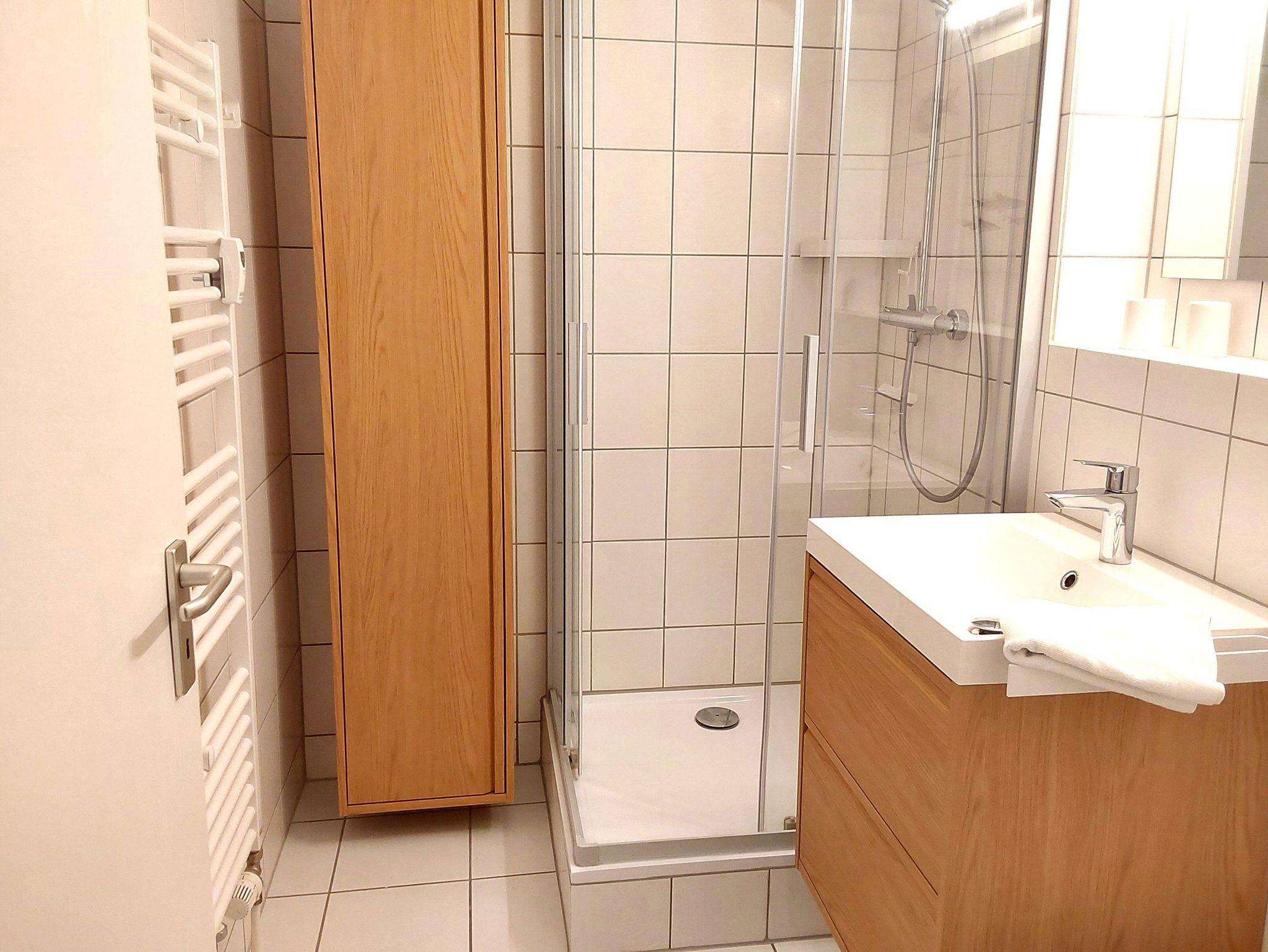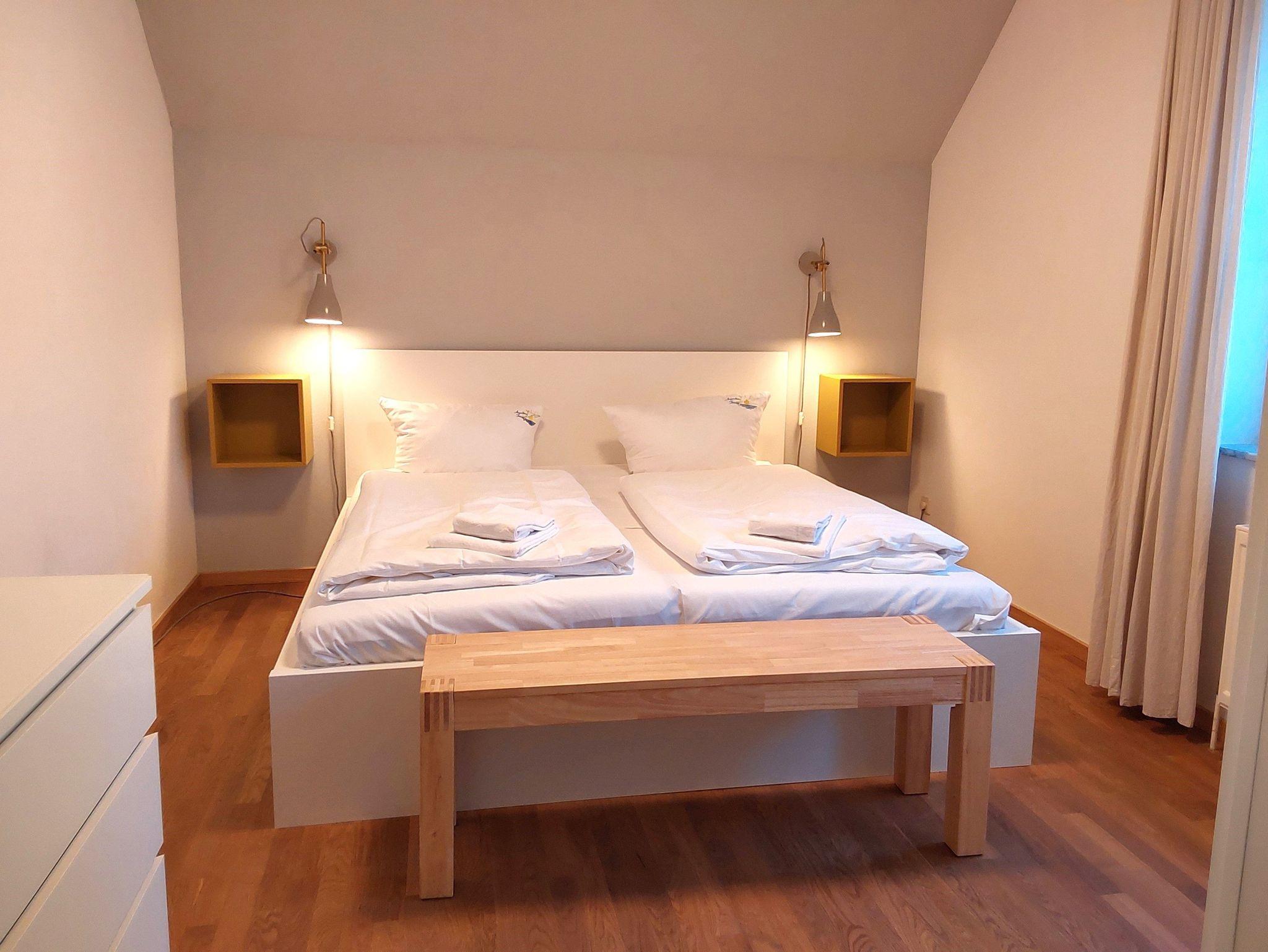 Die modern eingerichteten 2-Raum-Appartements dieser Kategorie sind für maximal 4 Personen geeignet und ca. 38 qm groß. Sie verfügen über einen Wohn-/Schlafraum mit Schlafcouch für 2 Personen und ein separates Schlafzimmer (Doppelbett oder 2 Einzelbetten). Alle unsere Wohnungen sind Nichtraucher-Wohnungen. Bei einigen Appartements können Sie Ihr Haustier mitbringen (s. Zimmerdaten). Ausstattung: Sat-TV, Radio, Küchenzeile, Dusche/WC, möblierte Terrasse oder Balkon. Bettwäsche und Handtücher als Erstausstattung.