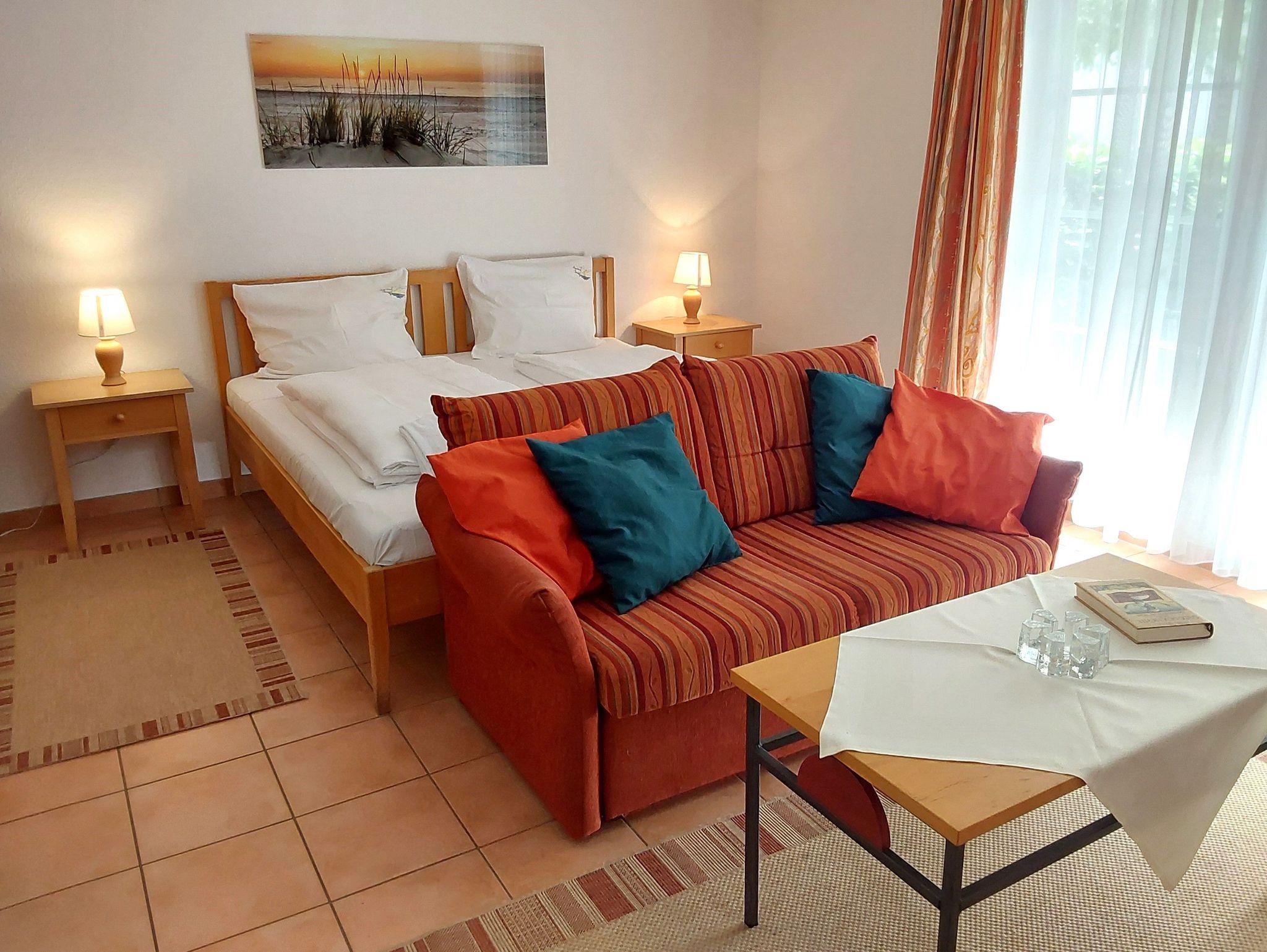 Die modern eingerichteten 1-Raum-Appartements dieser Kategorie sind für 2 Personen geeignet und ca. 30 qm groß. Sie verfügen über einen Wohn-/Schlafraum mit Doppelbett für 2 Personen. Alle unsere Wohnungen sind Nichtraucher-Wohnungen. Bei einigen Appartements können Sie Ihr Haustier mitbringen (s. Zimmerdaten). Ausstattung: Sat-TV, Radio, Küchenzeile, Dusche/WC, möblierte Terrasse oder Balkon. Bettwäsche und Handtücher als Erstausstattung.