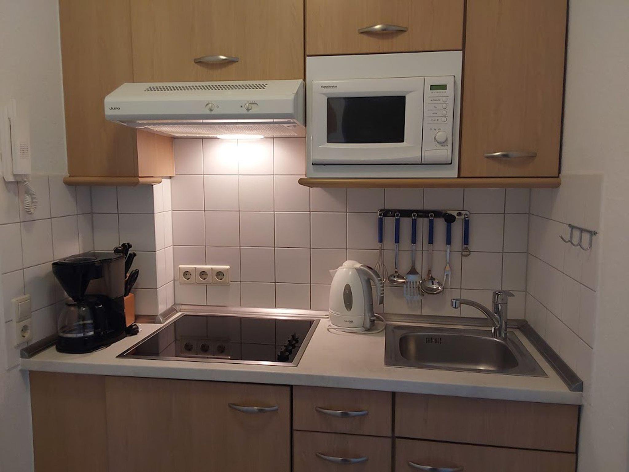 Die modern eingerichteten 2-Raum-Appartements dieser Kategorie sind für maximal 3 Personen geeignet und ca. 32 qm groß. Sie verfügen über einen Wohn-/Schlafraum mit Schlafcouch für 1 Person und ein separates Schlafzimmer (Doppelbett oder 2 Einzelbetten). Alle unsere Wohnungen sind Nichtraucher-Wohnungen. Bei einigen Appartements können Sie Ihr Haustier mitbringen (s. Zimmerdaten). Ausstattung: Sat-TV, Radio und teilweise Telefon, Küchenzeile, Dusche/WC, möblierte Terrasse oder Balkon. Bettwäsche und Handtücher als Erstausstattung.