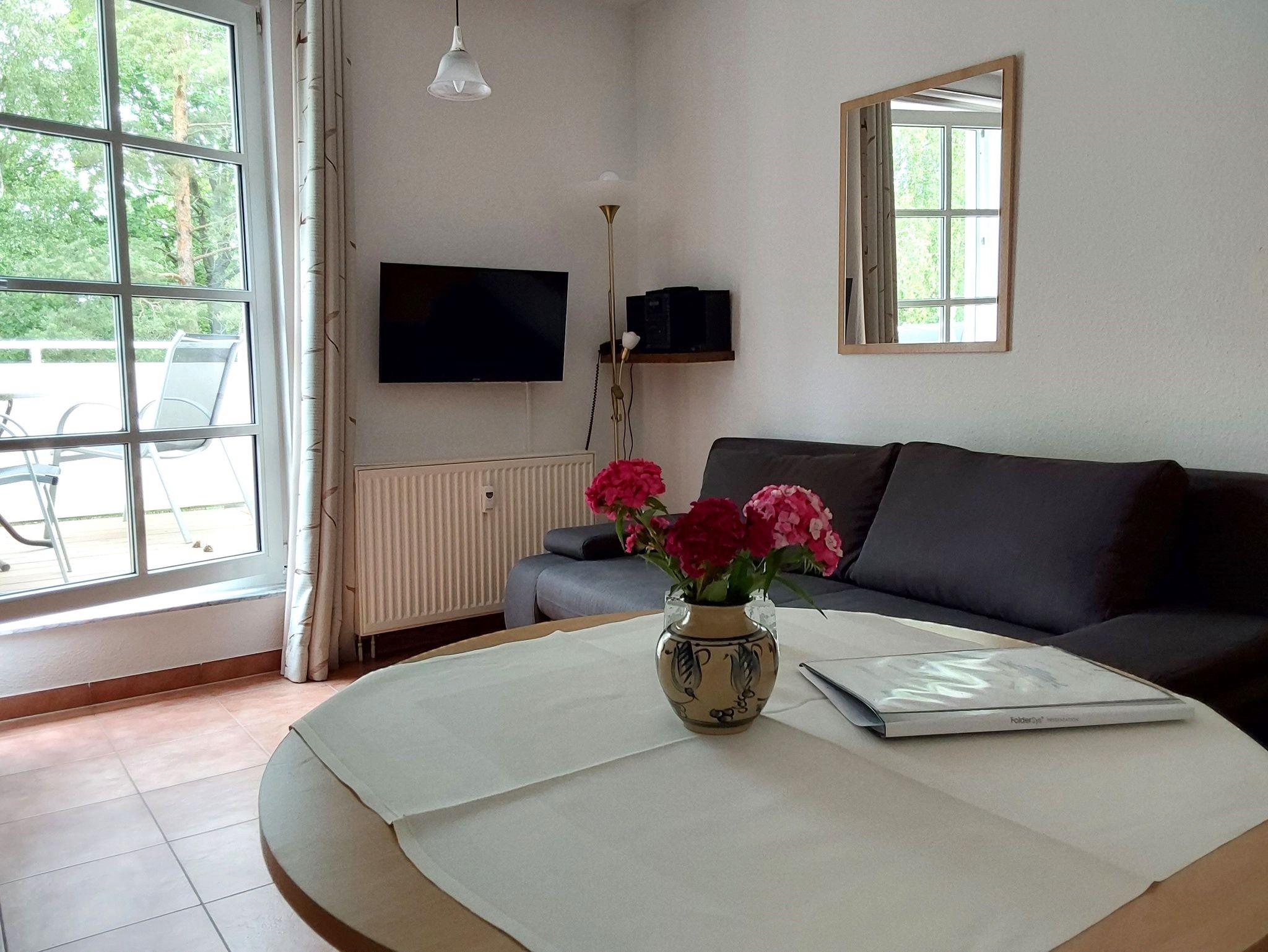 Gemütliches 1-Raum-Apartment in Dierhagen, nur 250 m vom Ostseestrand entfernt, mit moderner Ausstattung und Balkon.