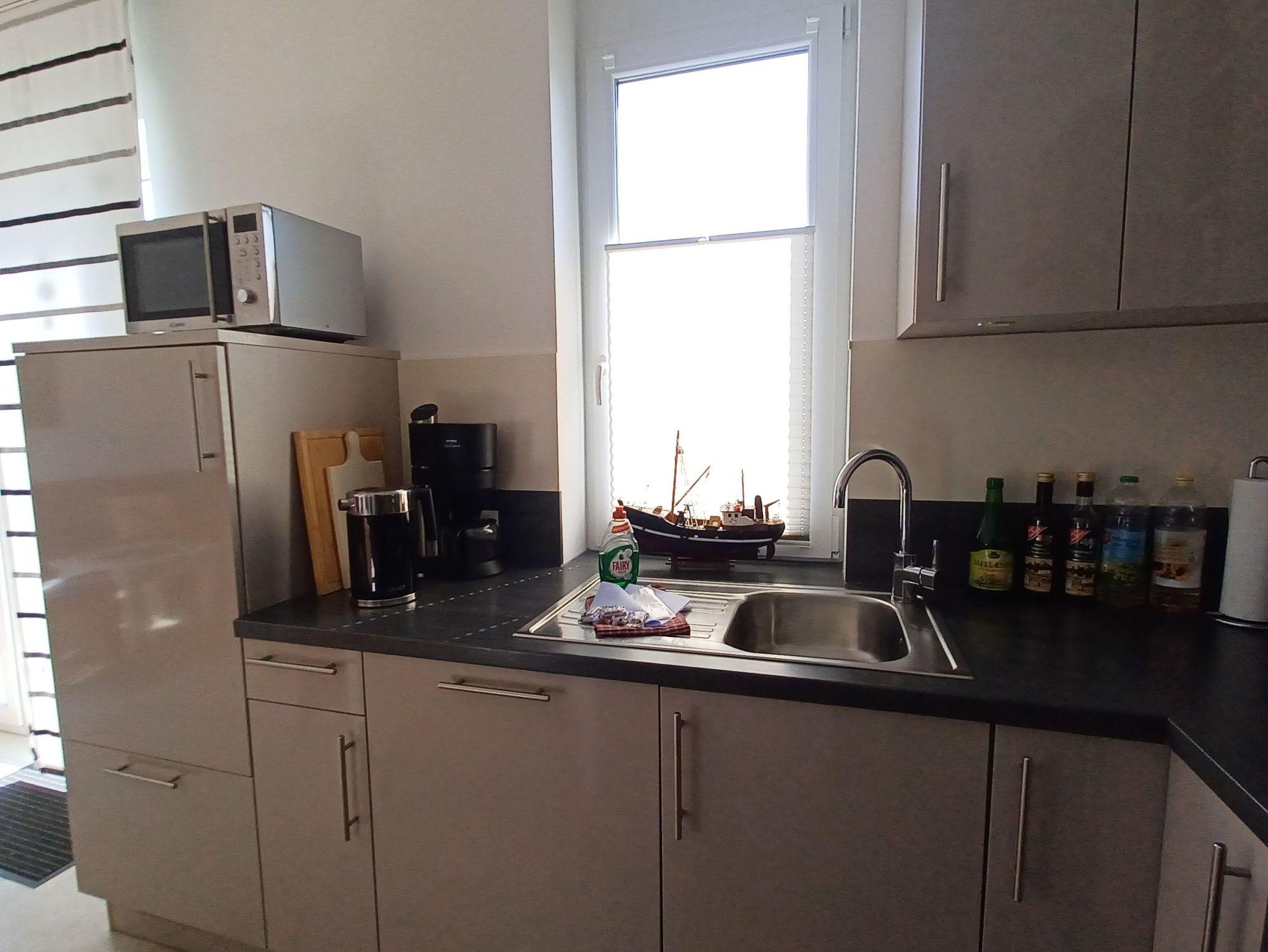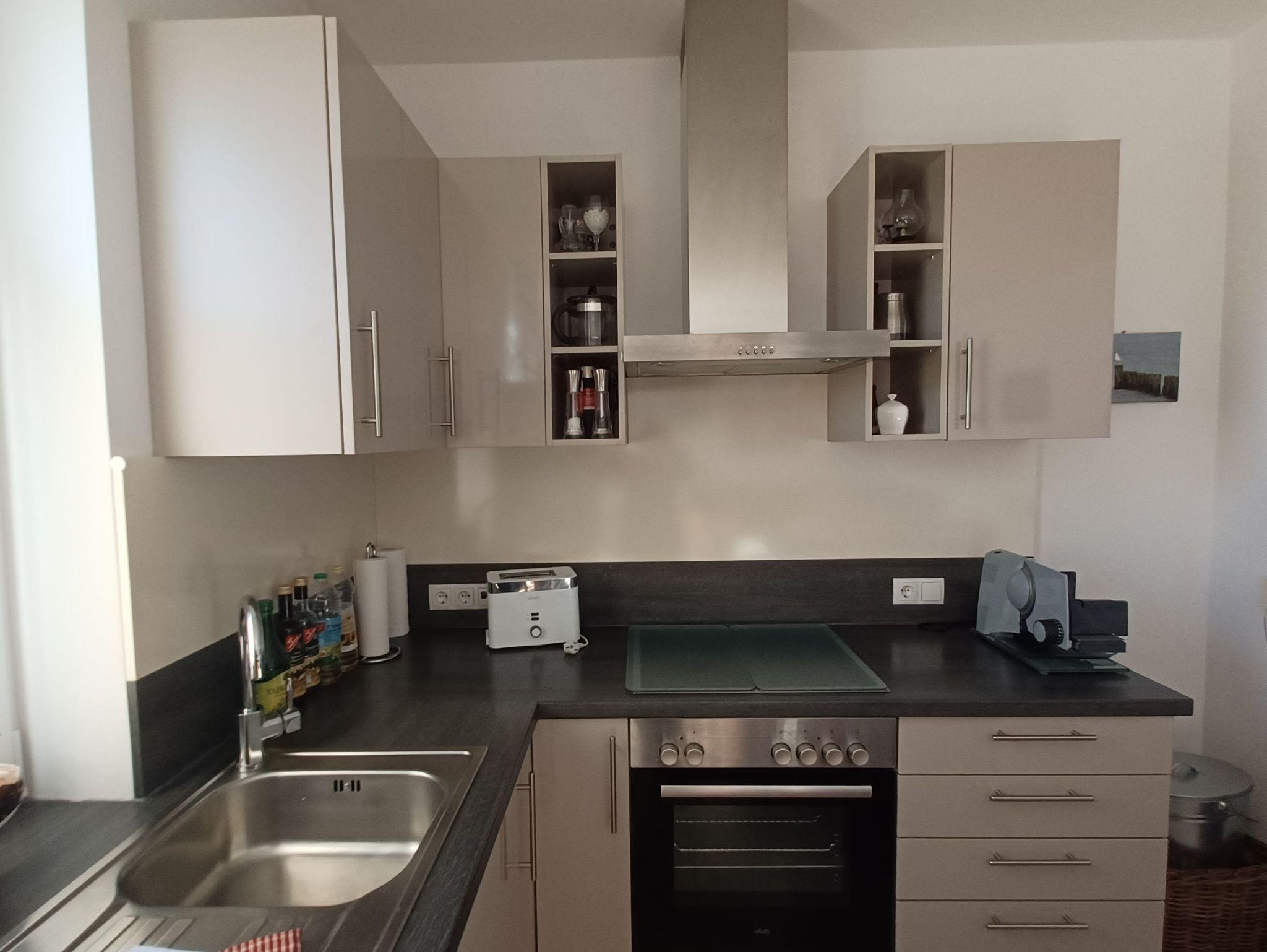 Vom großzügigen Eingangsbereich mit Garderobenwand und Schuhschrank versehen, gelangen Sie auf der linken Seite in den top ausgestatteten Wohnbereich mit hochwertiger Einbauküche. Diese ist ausgestattet mit Ceranfeld, Backofen, Geschirrspüler, Microwelle/-Grillgerät, Kühlschrank mit Gefrierfach, Kaffeemaschine, Wasserkocher, Toaster, Eierkocher und Brotmaschine ? in Top Qualität. Selbstverständlich sind Gläser, Geschirr und Besteck, sowie sämtlich notwendige Kochutensilien sind ausreichend vorhanden.