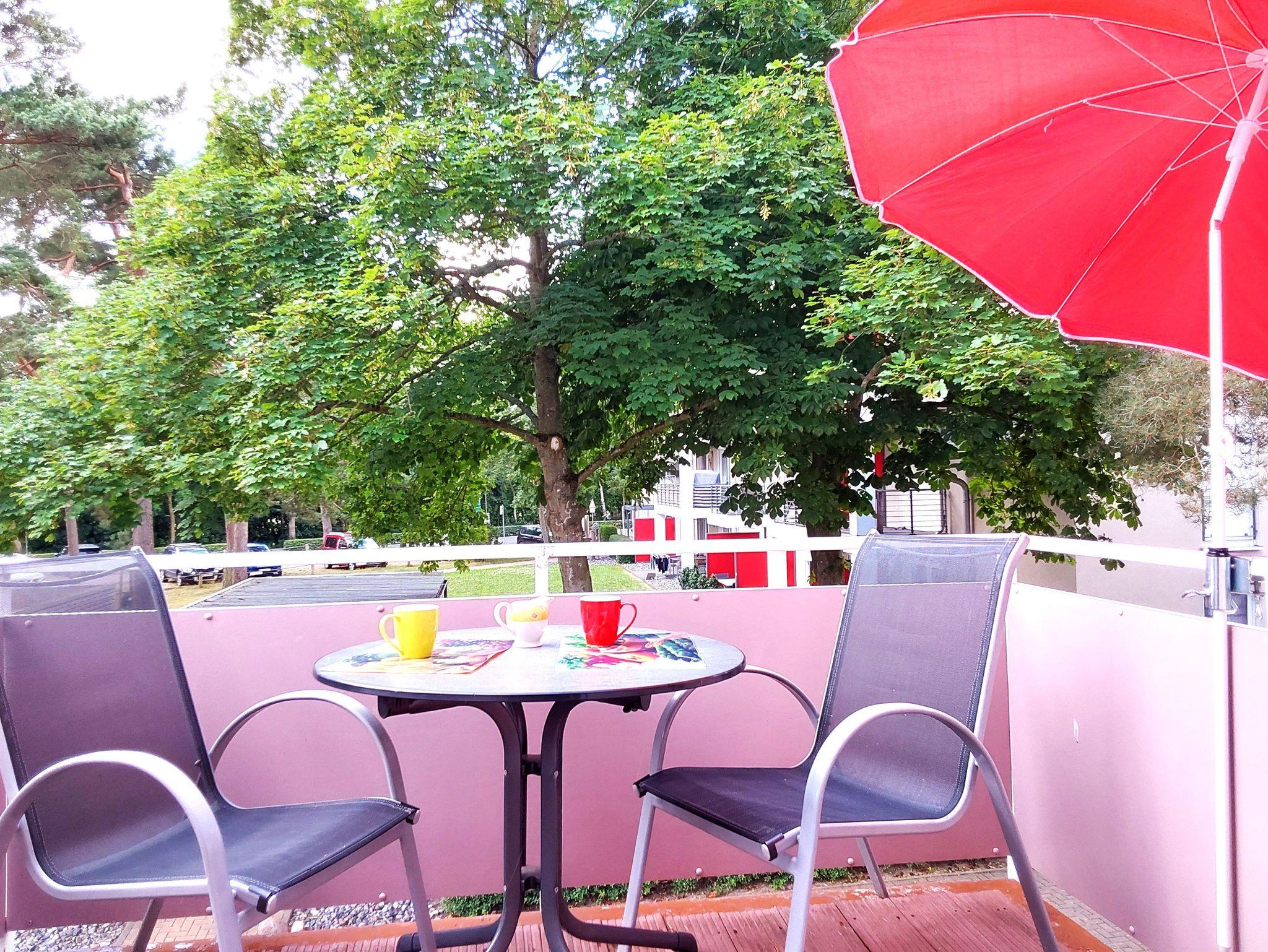 Gemütliches 1-Raum-Appartement in Dierhagen, nur 250 m vom Ostseestrand entfernt, mit Balkon und moderner Ausstattung.