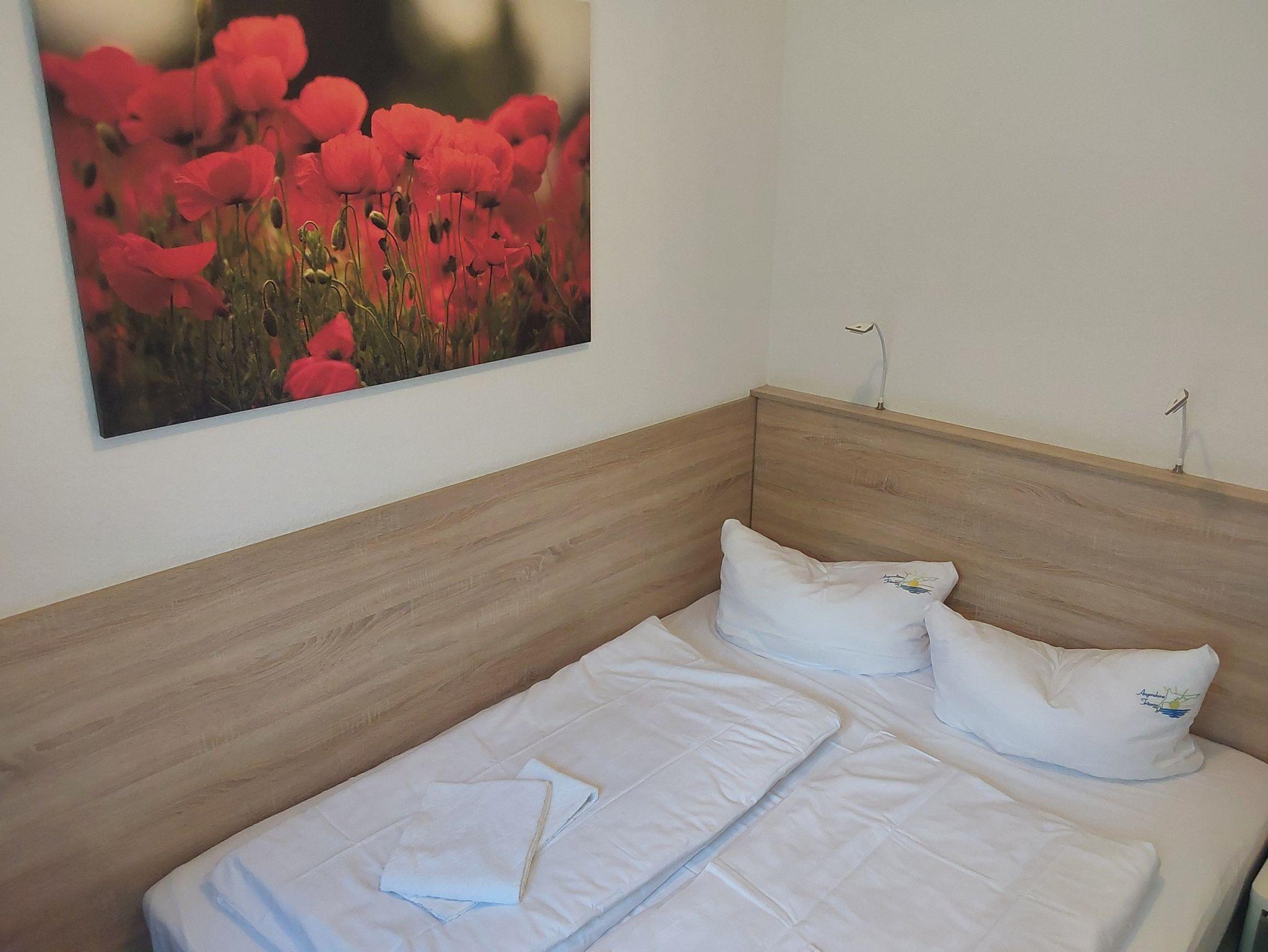 Alle Zimmer mit einem Doppelbett ausstatten. Preis/Leistung anpassen.