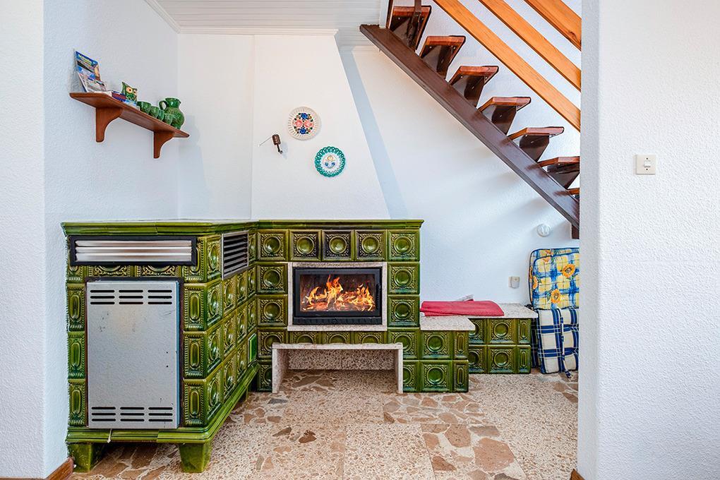 D 63.14 Wohnung 2-4 Pers.: 3-Zimmerwohnung mit 40 qm Wohnfläche über 2 Etagen, Parterre. Gemütlicher Wohn-/Essraum mit Kamin, Couchgarnitur, Flachbild-Sat-TV, Esstisch, Küchenzeile (Backofen, Spülmaschine). Bad/WC. Treppe in den Spitzboden: Doppelzimmer. 2-Bettzimmer.