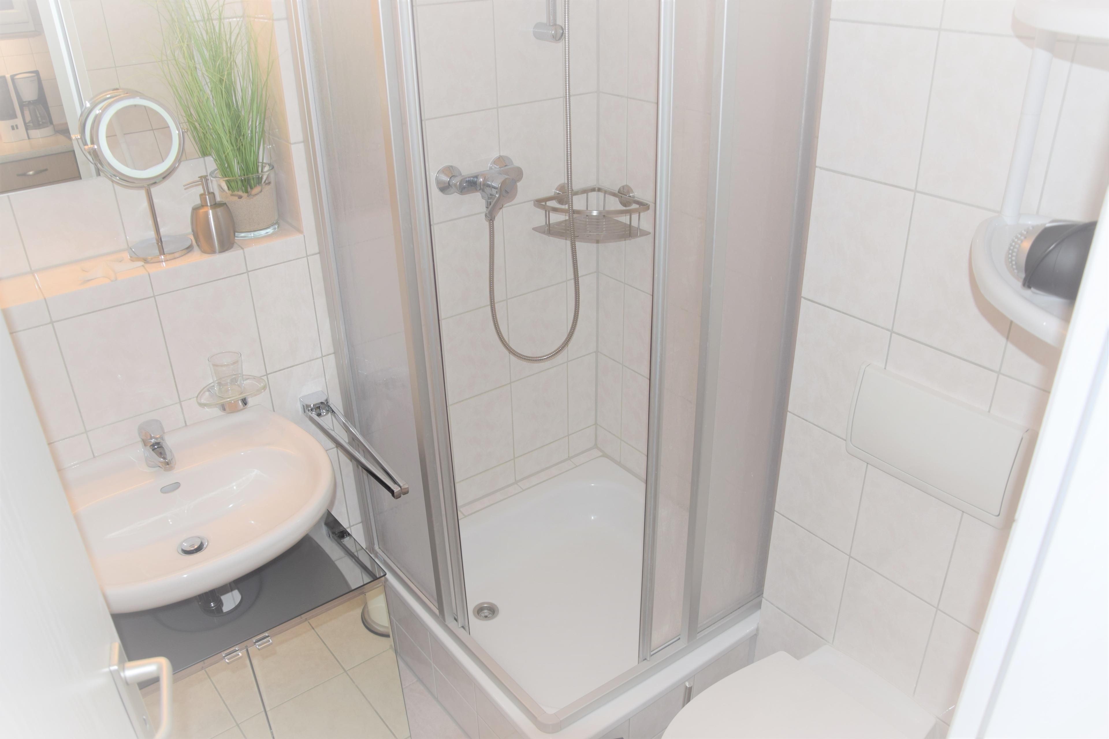 Dusche und Haartrockner stehen Ihnen im Bad zur Verfügung.