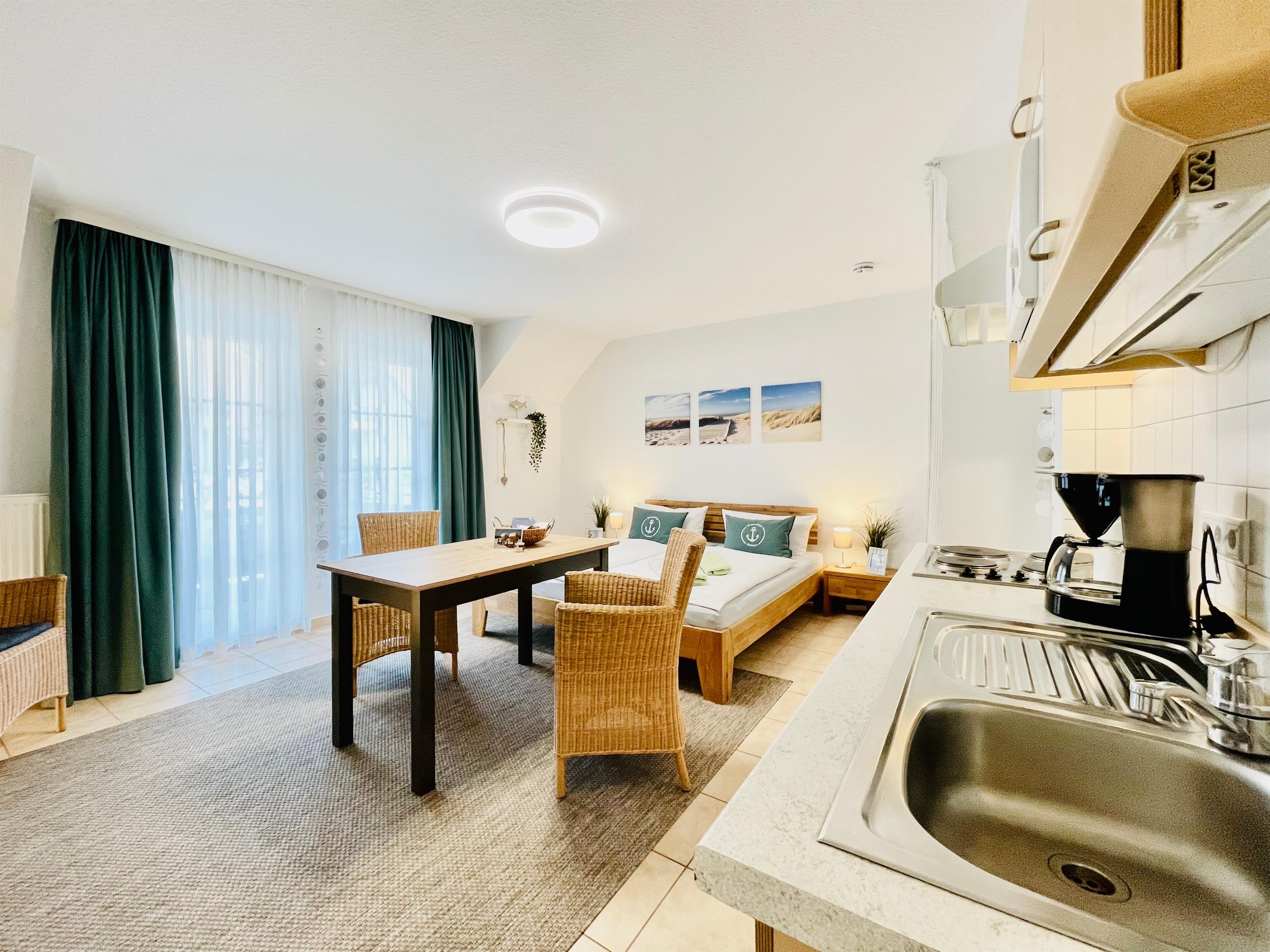 Komfortables 1-Raum-Apartment mit Balkon, nah am Strand und Kurpark in Dierhagen für erholsame Tage am Meer.