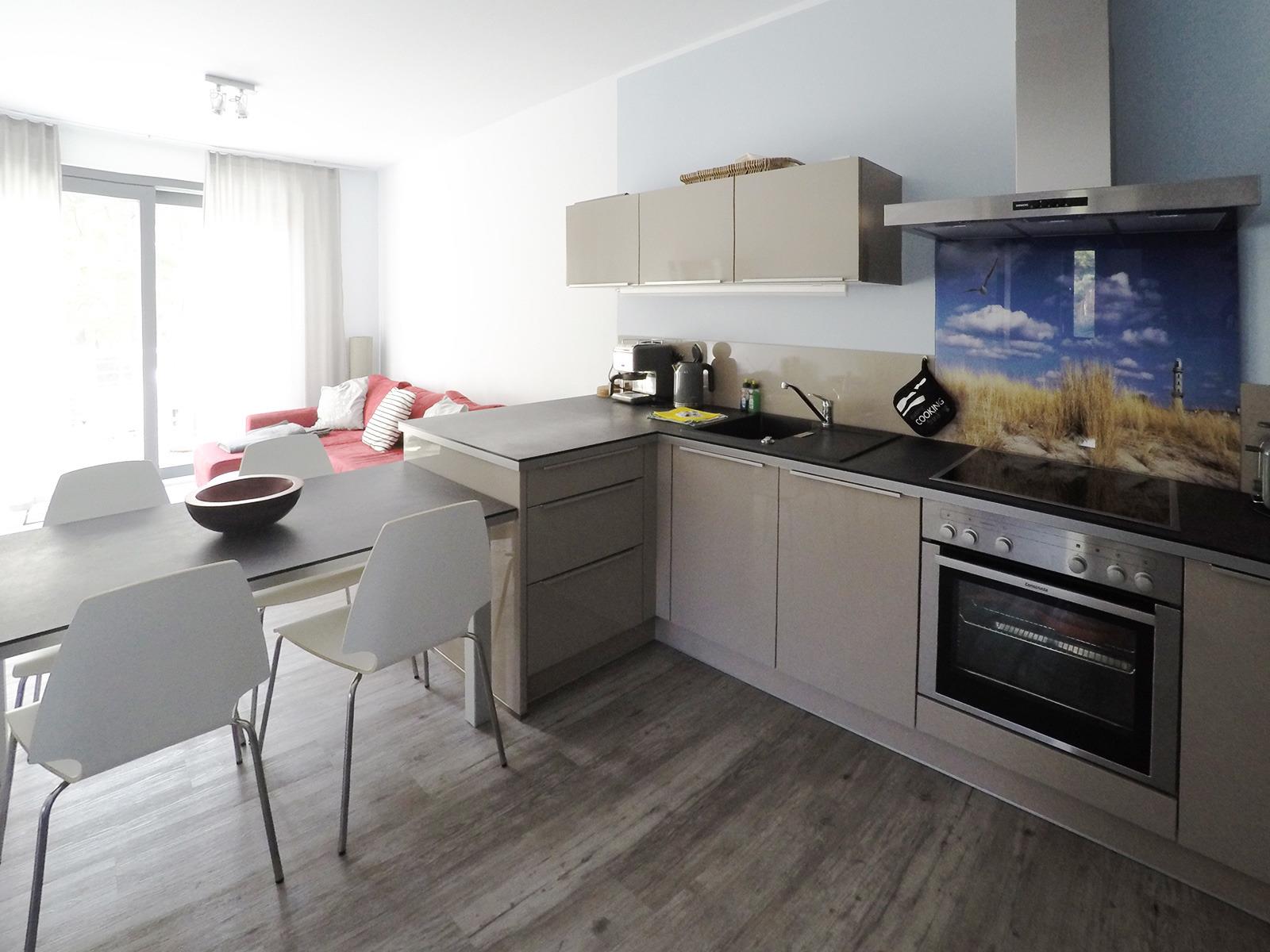 Das großzügige Wohnzimmer mit offener Wohnküche bietet viel Platz für die gesamte Familie und ist hochwertig und mit liebevollen Details ausgestattet. Bei der Ausstattung der Ferienwohnung wurde viel Wert darauf gelegt, dass sich unsere Gäste zu jeder Jahreszeit wohlfühlen und Ihre Auszeit am Meer voll und ganz genießen können.