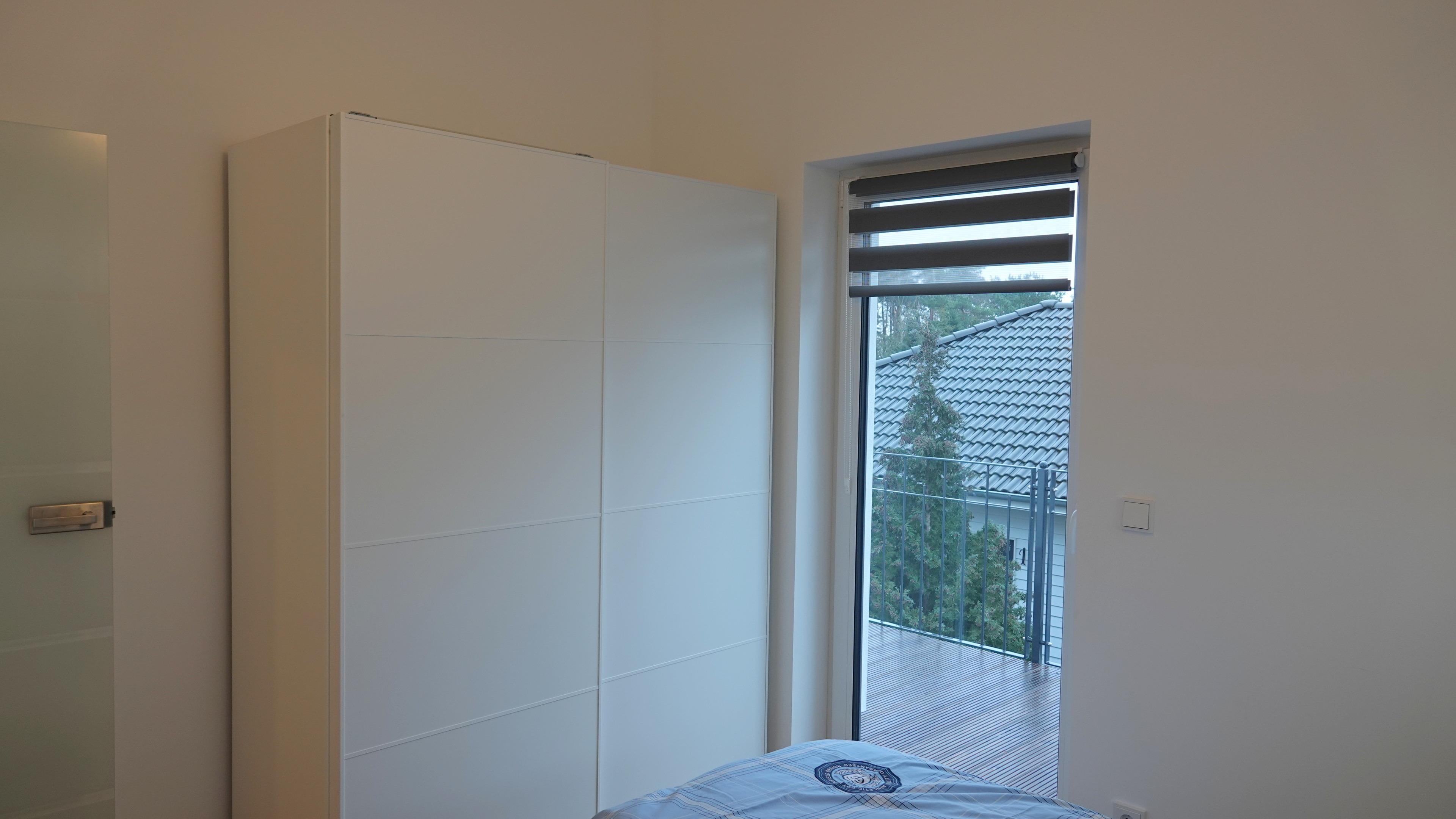 Im Schlafzimmer finden Sie ein schönes, komfortables Doppelbett, Leselampen, Nachttische und einen beleuchteten Kleiderschrank. Alle Fenster können bei Bedarf verdunkelt werden. Auch hier haben Sie einen Zugang zum Balkon.