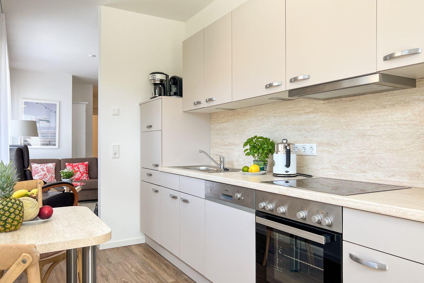 Starten Sie den Tag ganz entspannt in der modernen, voll ausgestatteten Küche. Mit der Kapsel-Kaffeemaschine bereiten Sie sich schnell eine aromatische Tasse Kaffee zu – perfekt für ein gemütliches Frühstück auf der Terrasse an der frischen Ostseeluft.