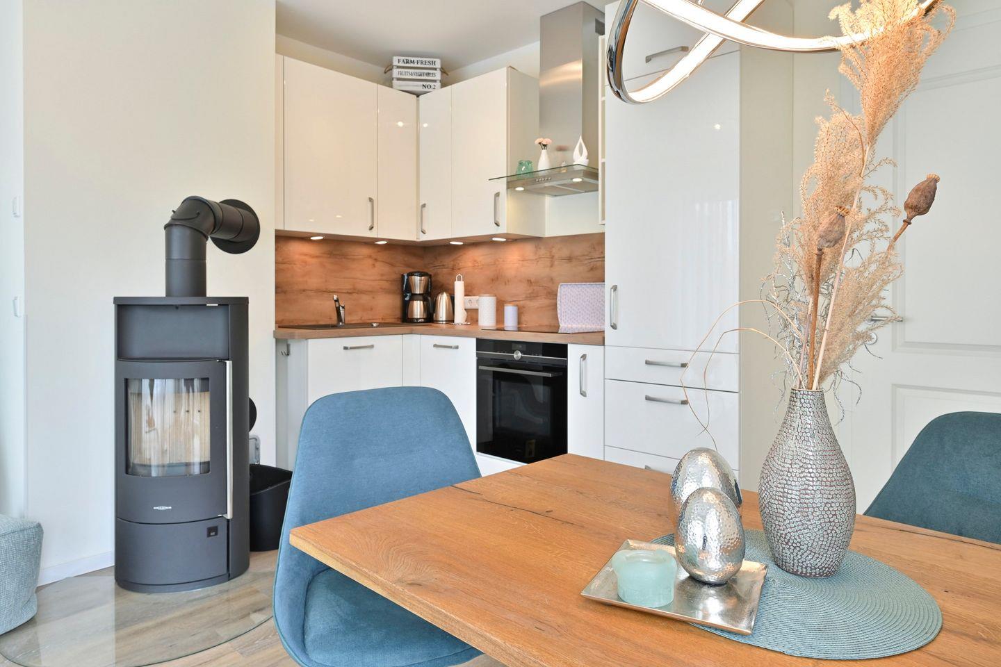 Die Meerquartier Wohnung No.?5 bietet auf 56?m² Komfort, Stil und eine ideale Lage für erholsame Urlaubstage. Die Wohnung im 1. Obergeschoss ist bequem per Aufzug erreichbar und verfügt über einen gemütlichen Wohn- und Essbereich mit Kamin – perfekt für entspannte Abende. Die moderne Küche ist vollständig ausgestattet, um kulinarische Wünsche zu erfüllen.