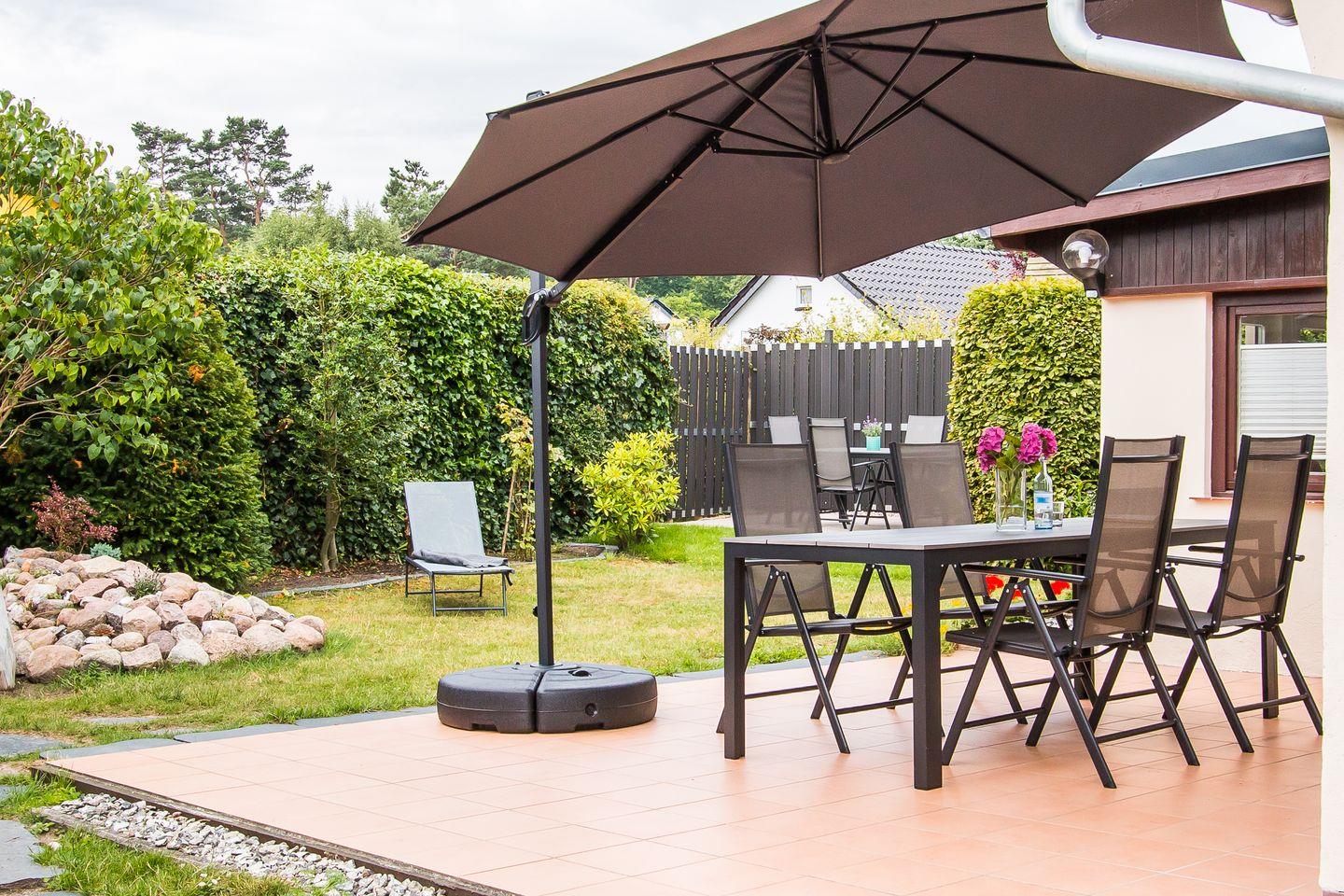 Frisch renoviertes Ferienhaus „Haus Windflüchter“ in Dierhagen, strandnah, mit 4 Schlafzimmern und großem Garten für Familien.