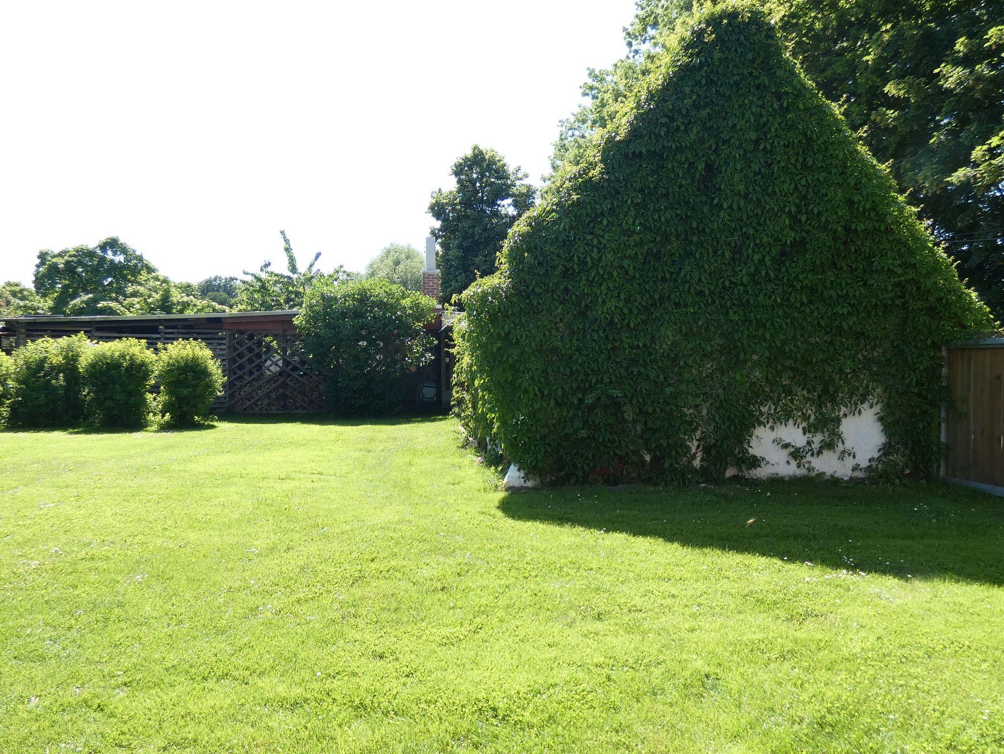 Zur Ferienwohnung gehören eine Terrasse mit Gartenmöbeln sowie ein großer Garten mit Liegewiese.
